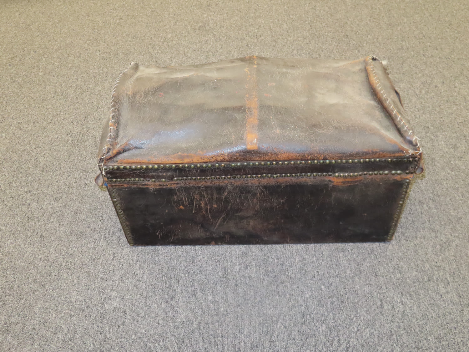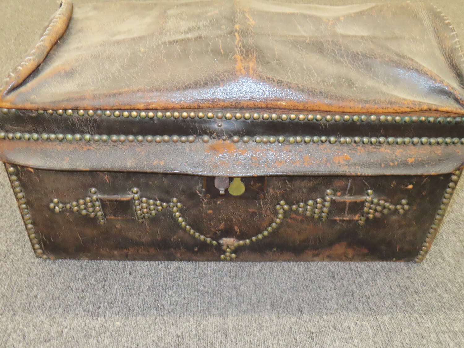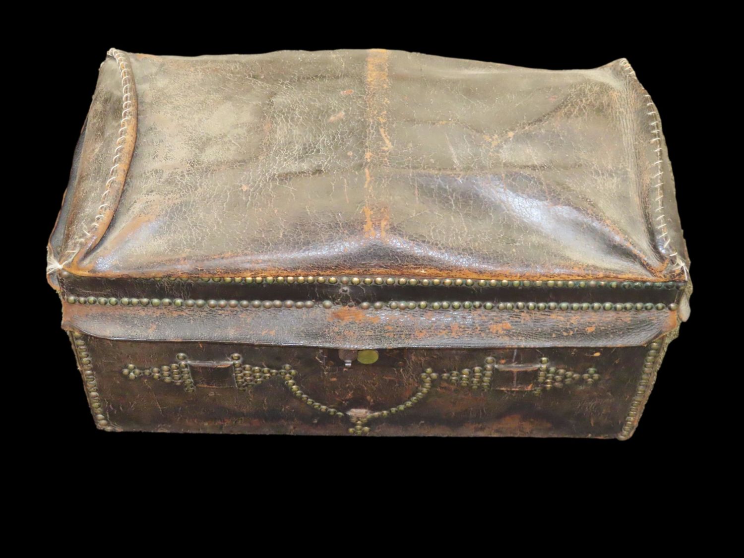 Antique Leather Trunk Studded and Domed, made for Stage Coach