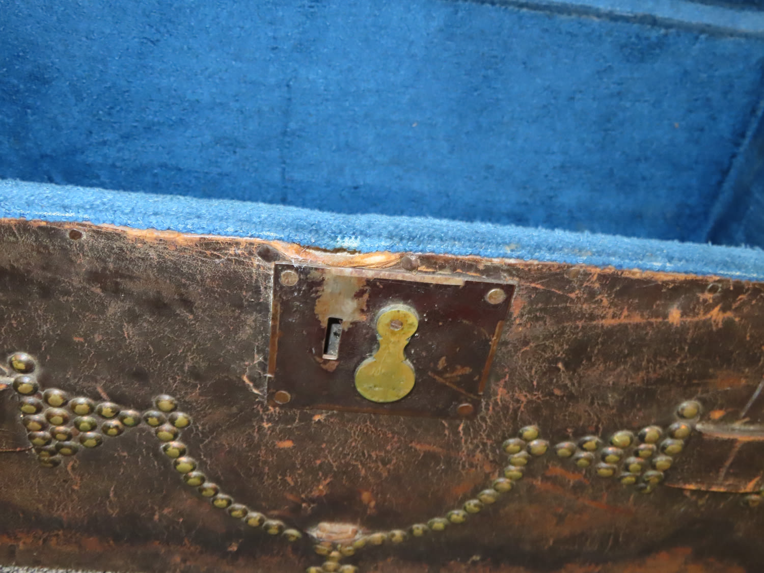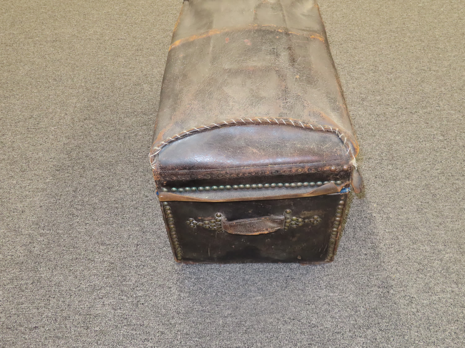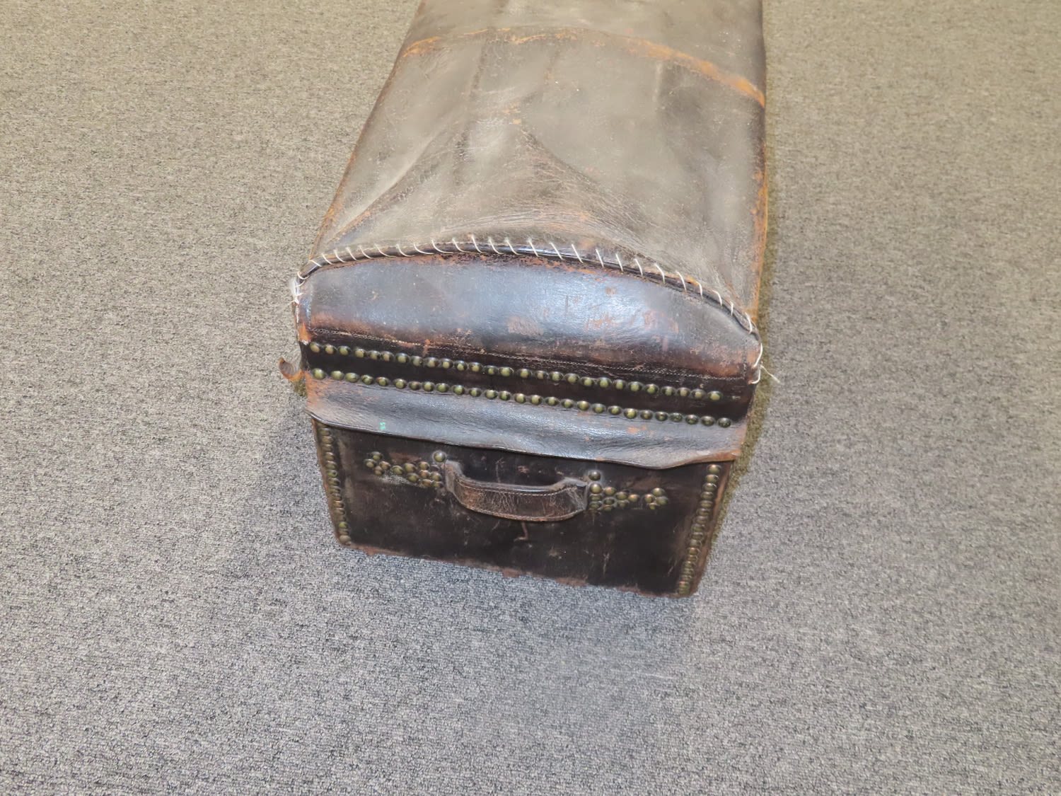 Antique Leather Trunk Studded and Domed, made for Stage Coach