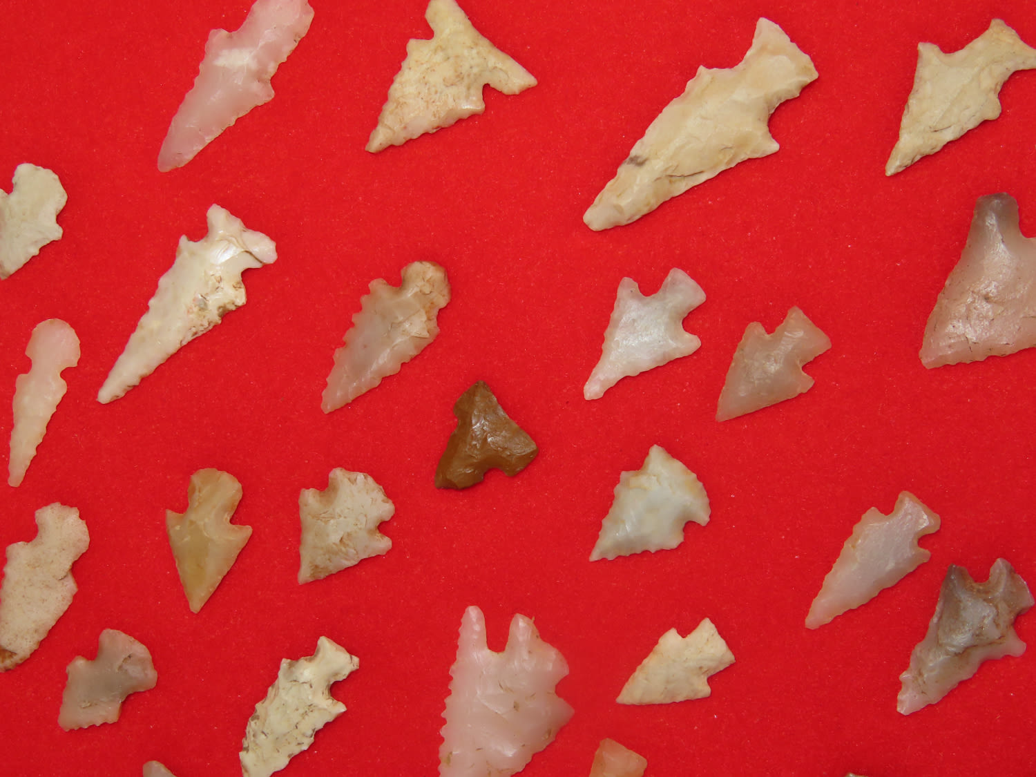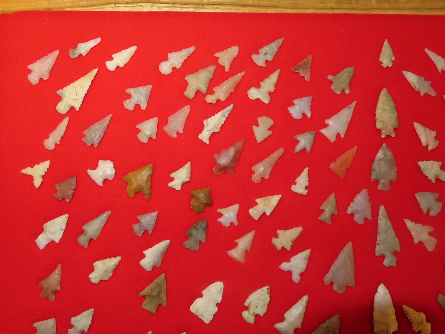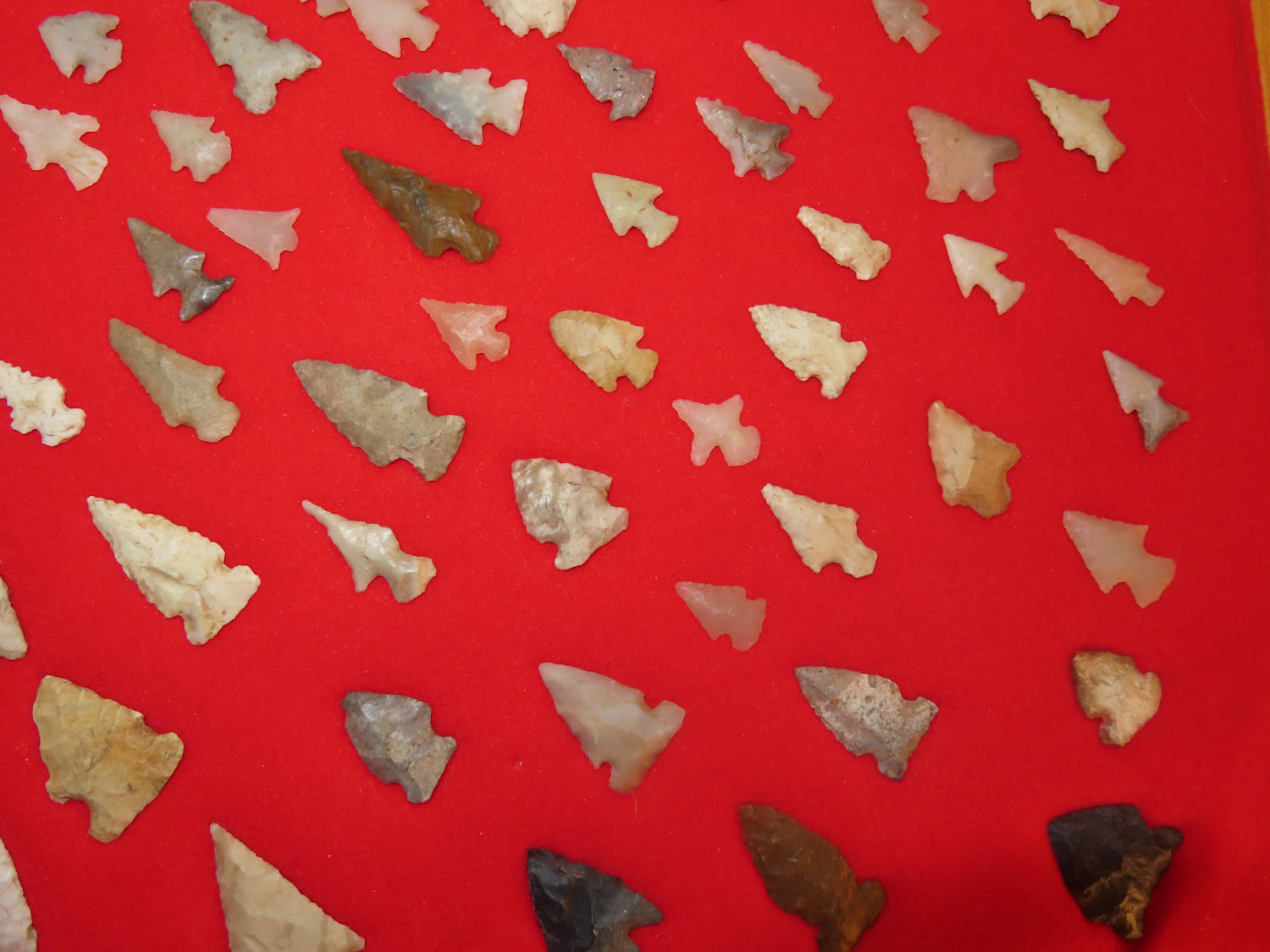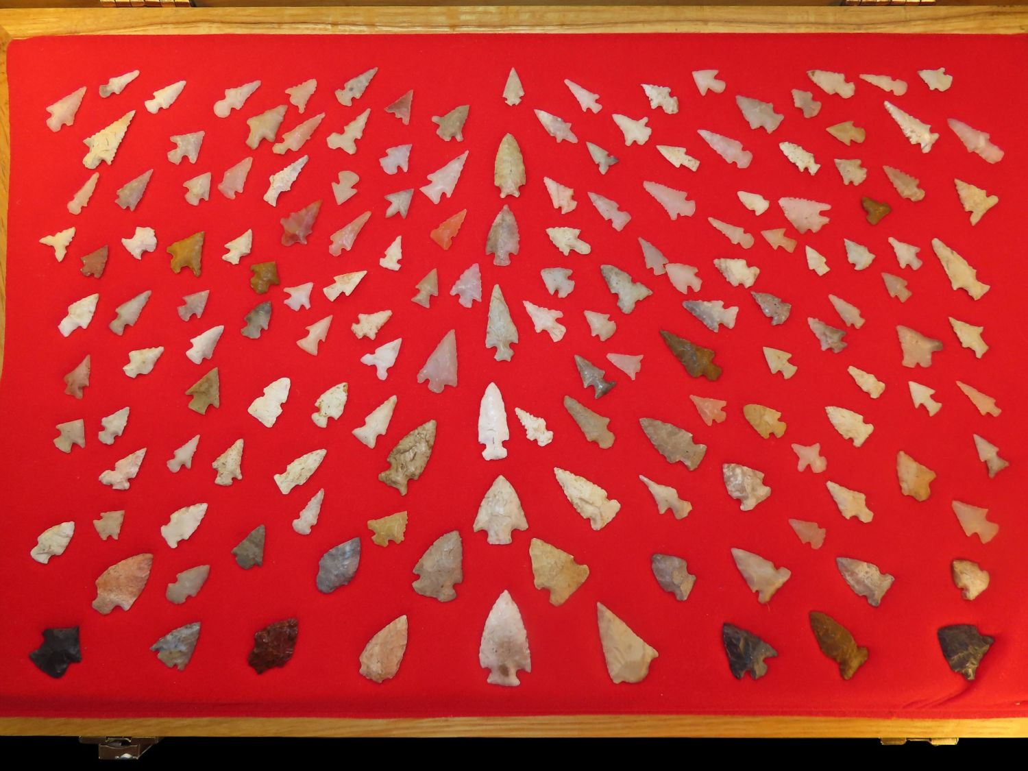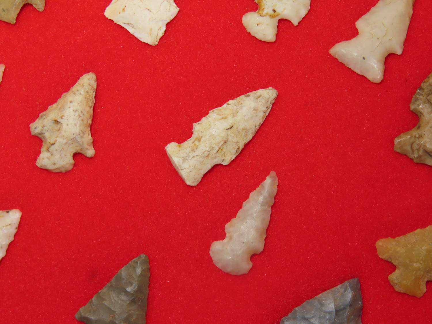 12″ x 18″ Frame of Arkansas Bird Points, several of Novaculite