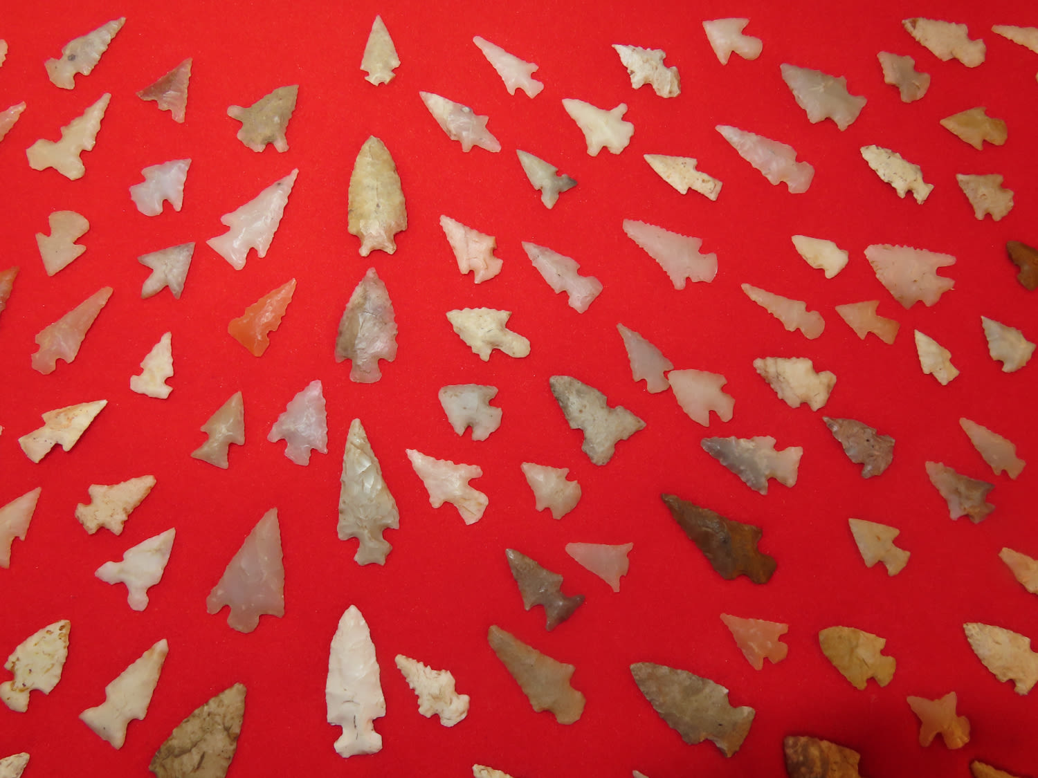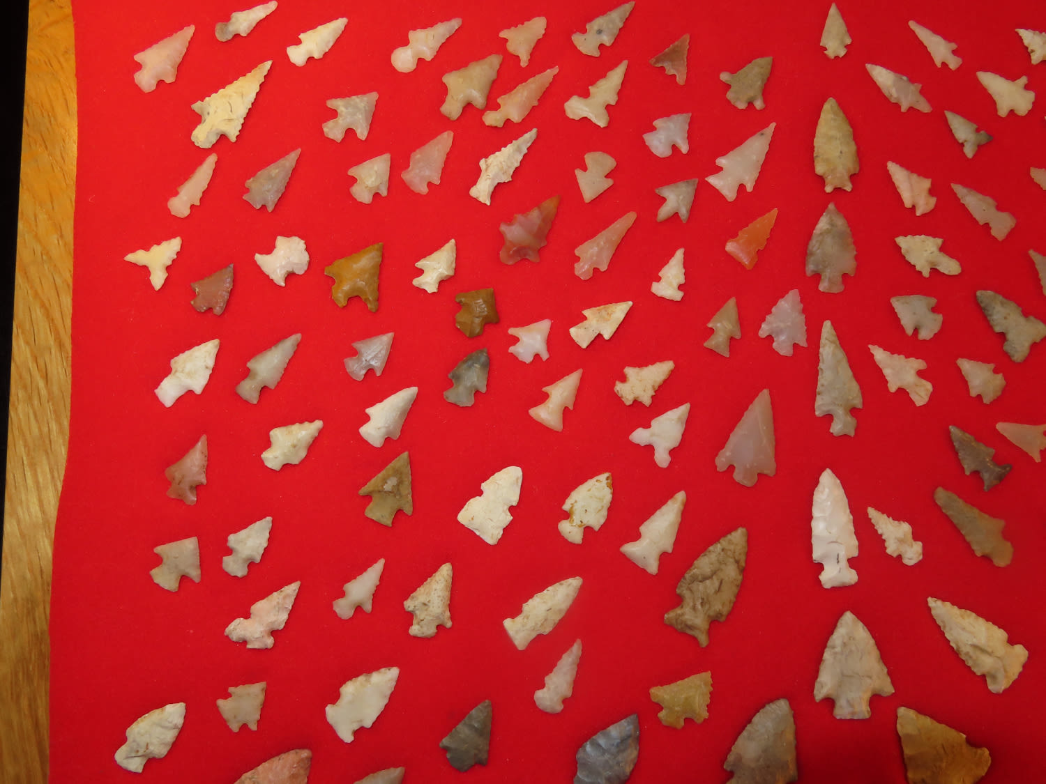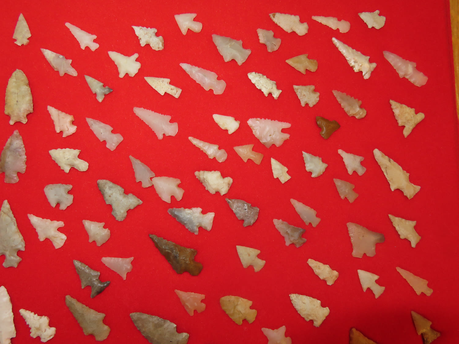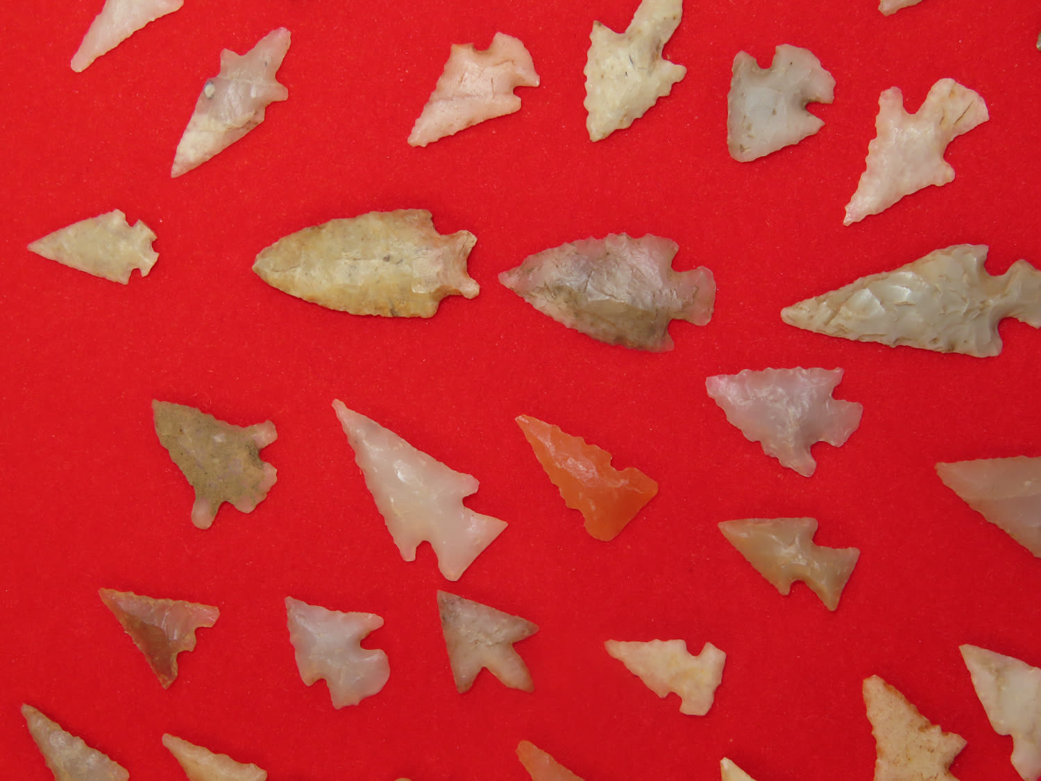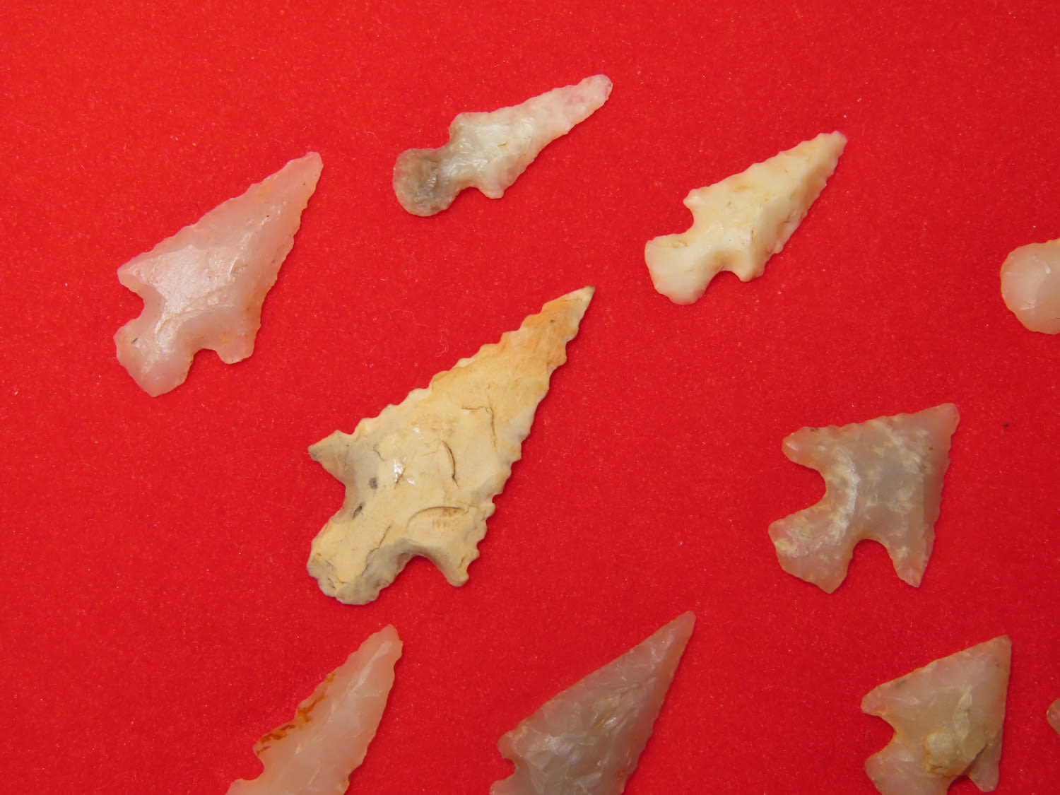 12″ x 18″ Frame of Arkansas Bird Points, several of Novaculite