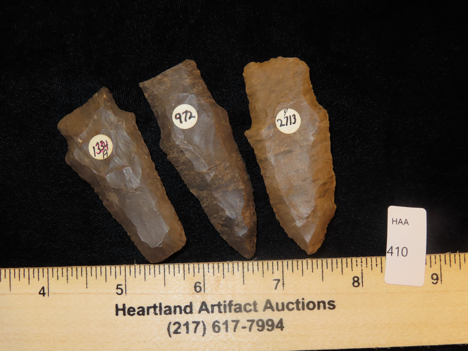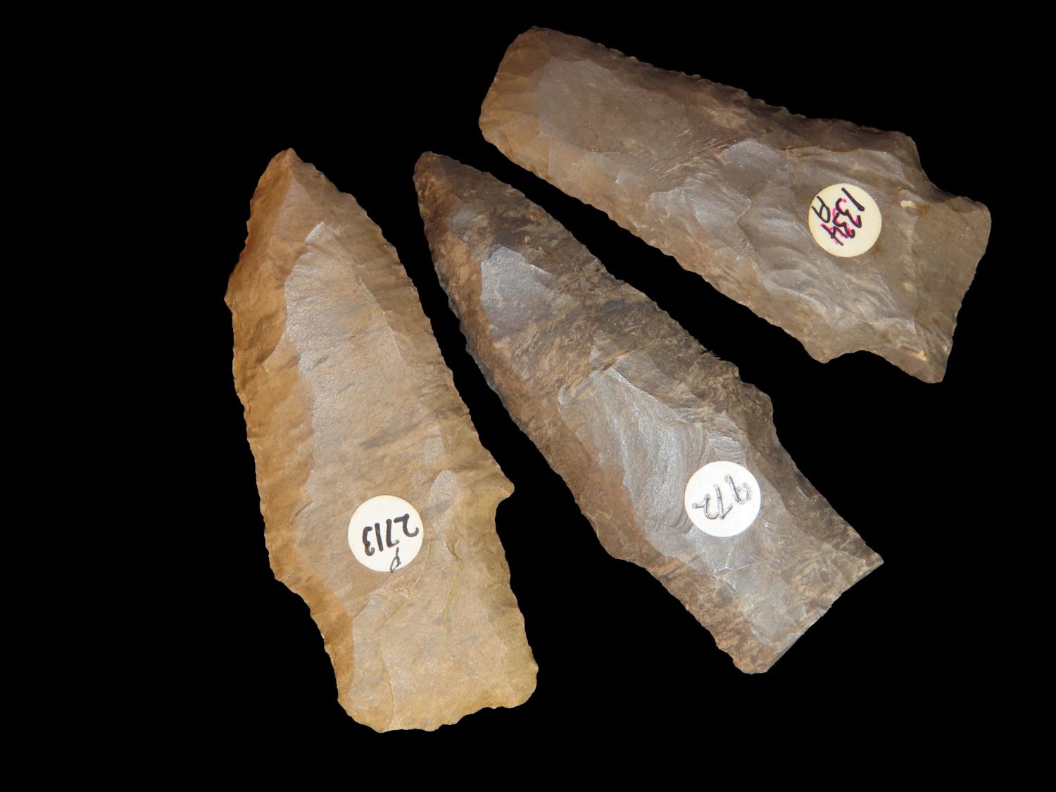 Grouping of 3 Arrowheads, Found by Tommy Adams in Lake Co Tennessee