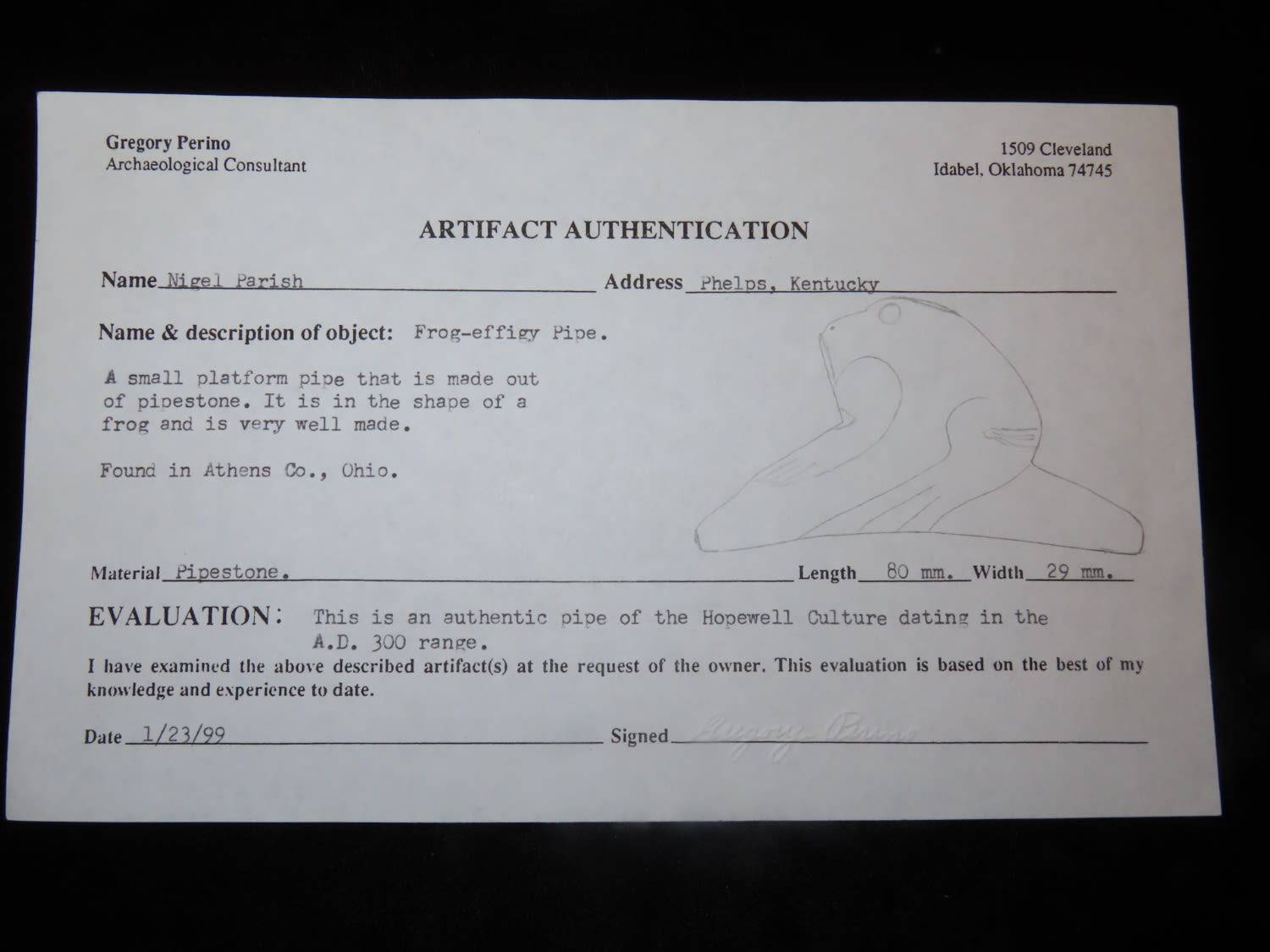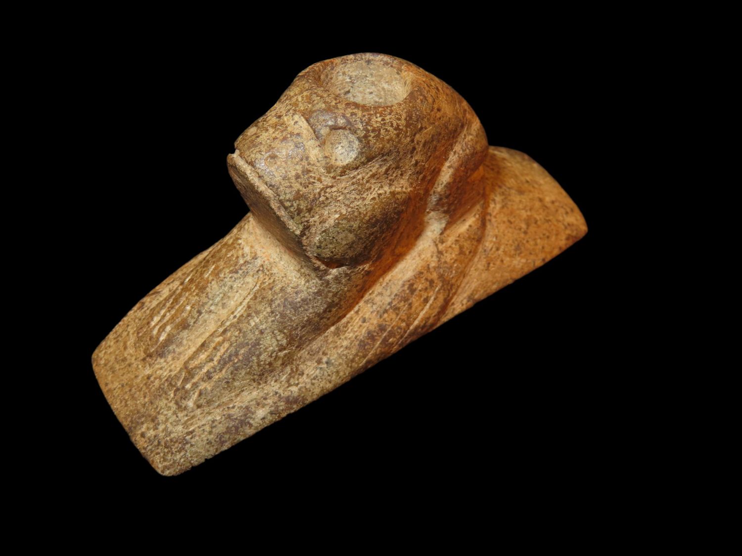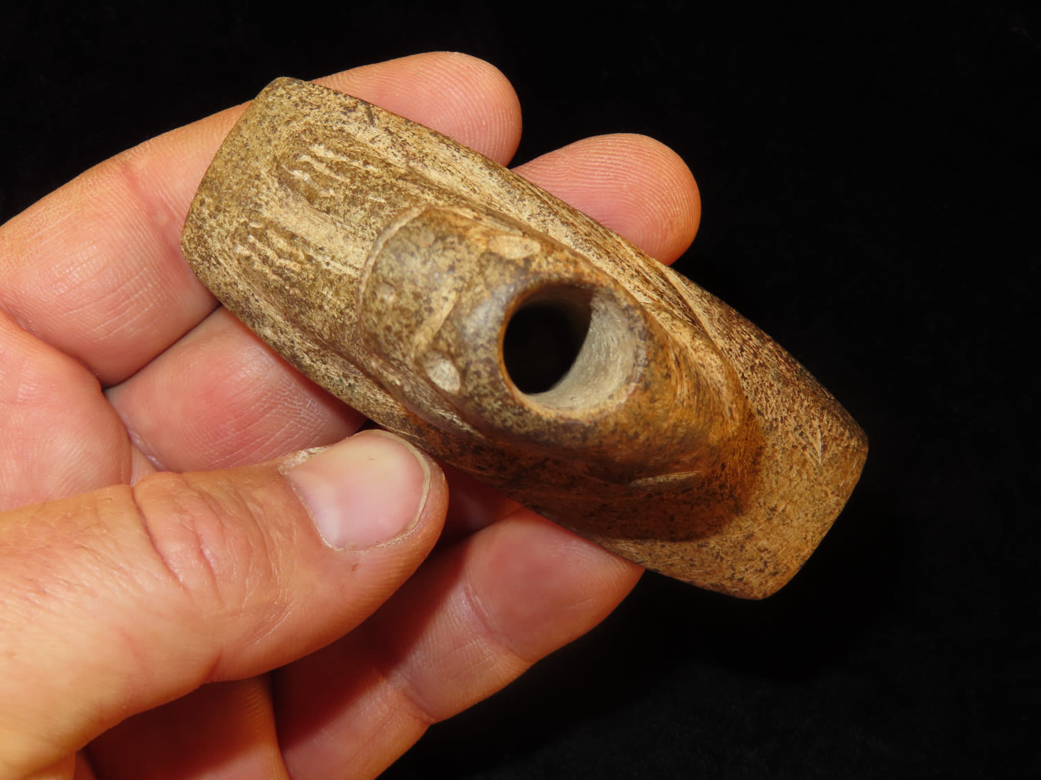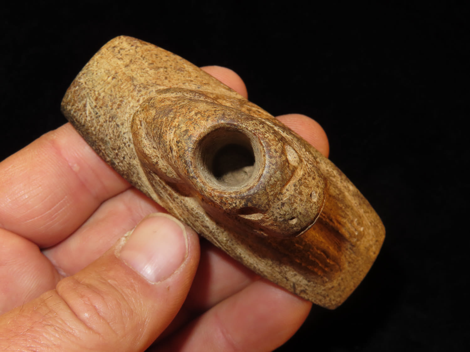 3 3/16″ Ohio Hopewell Pipe, 3x COA- Perrino, Howard, Jackson found in Athens Co Ohio Perrino notes-“Small platform pipe, that is made out of pipestone in the shape of a frog”