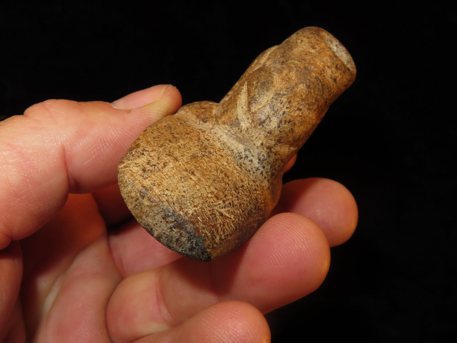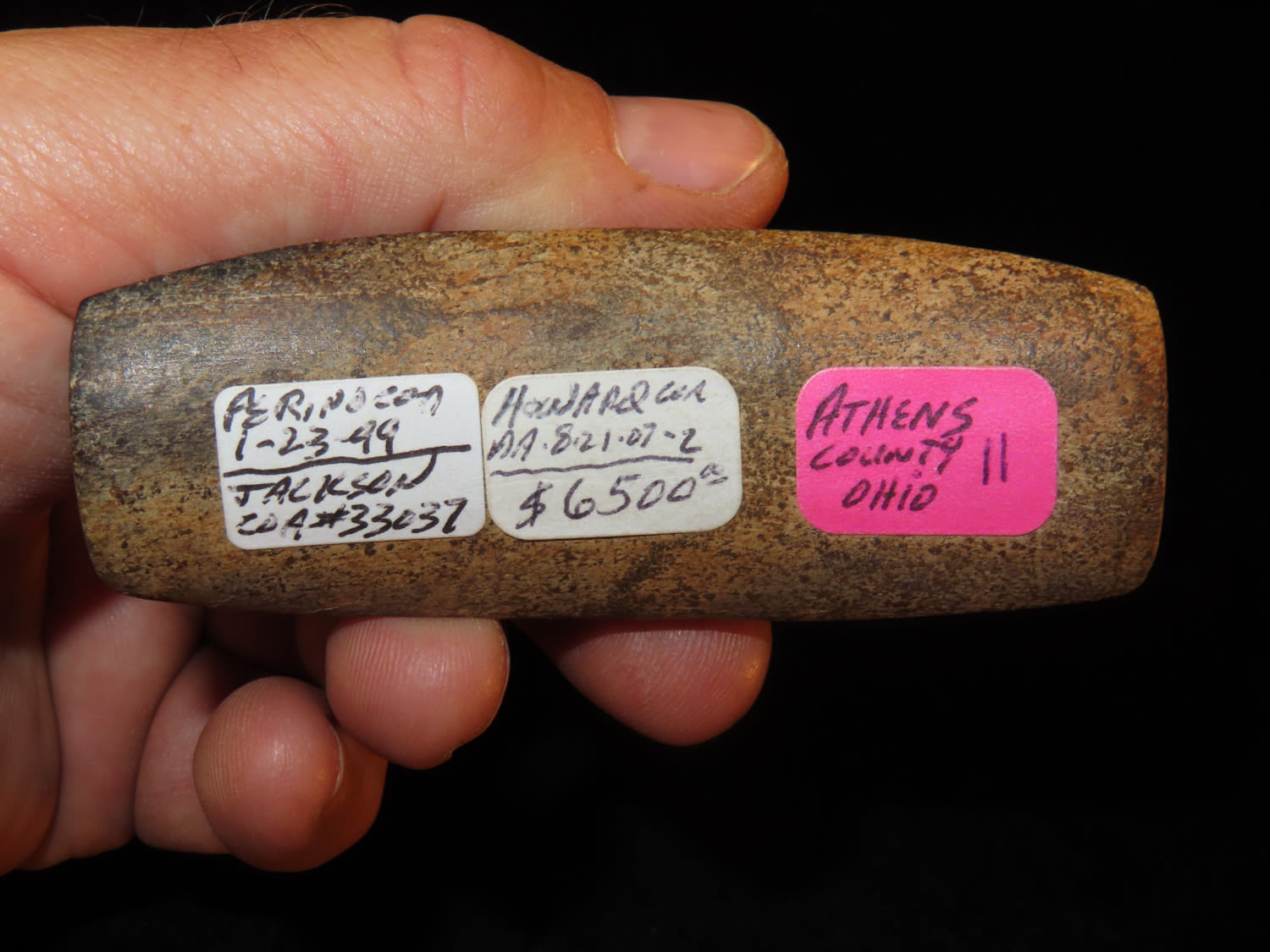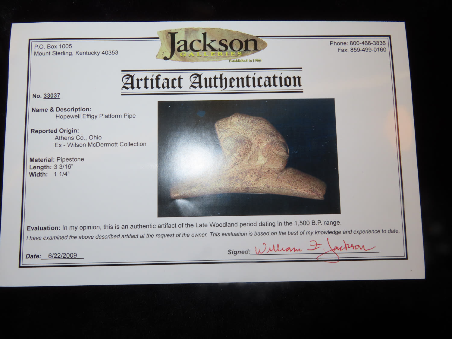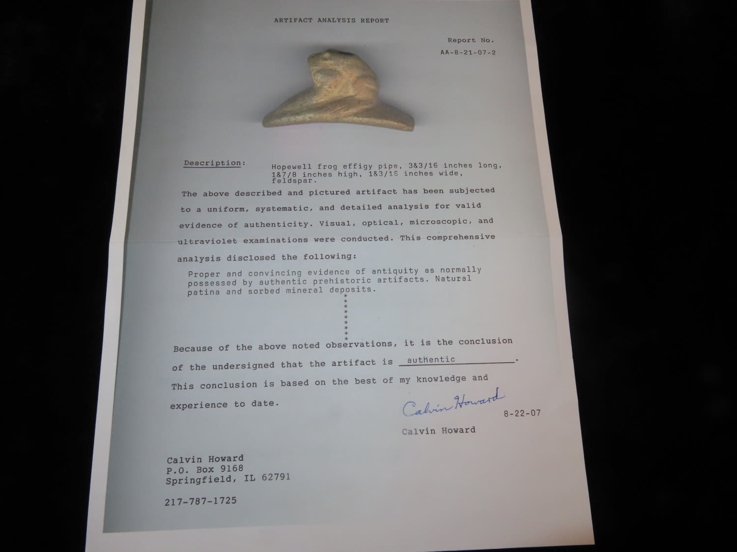 3 3/16″ Ohio Hopewell Pipe, 3x COA- Perrino, Howard, Jackson found in Athens Co Ohio Perrino notes-“Small platform pipe, that is made out of pipestone in the shape of a frog”