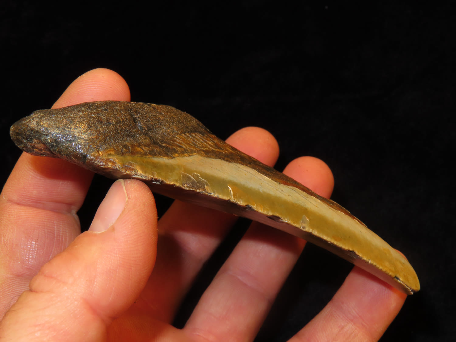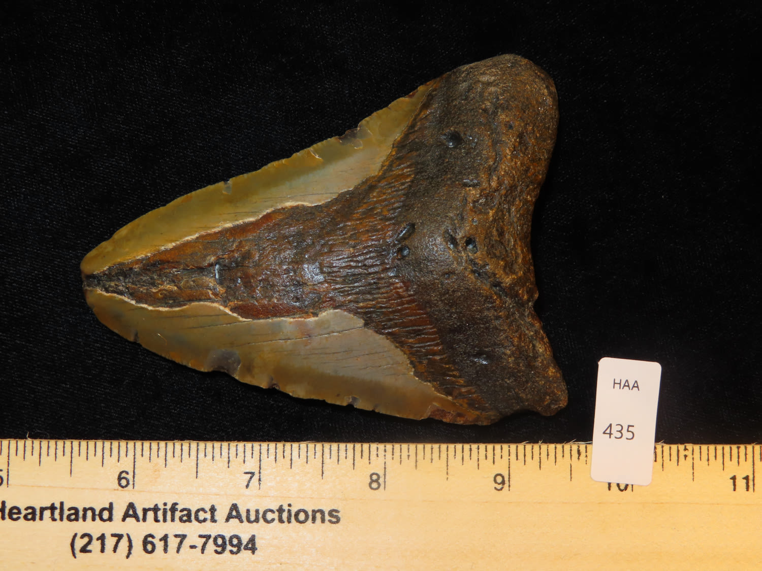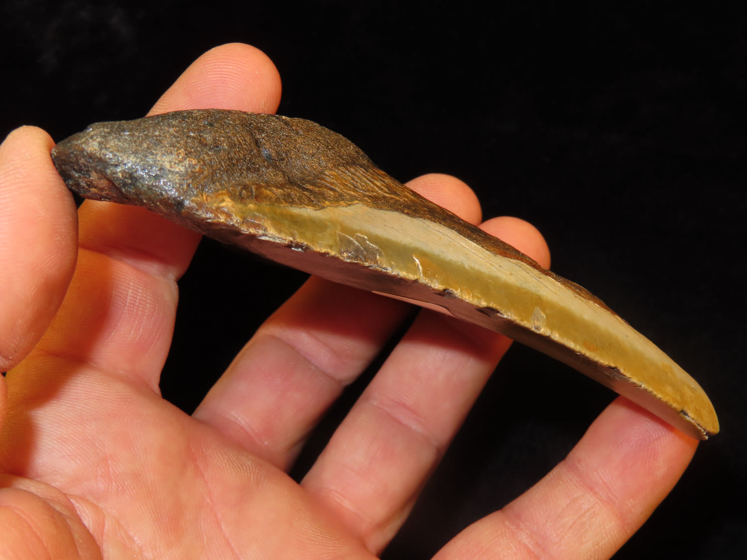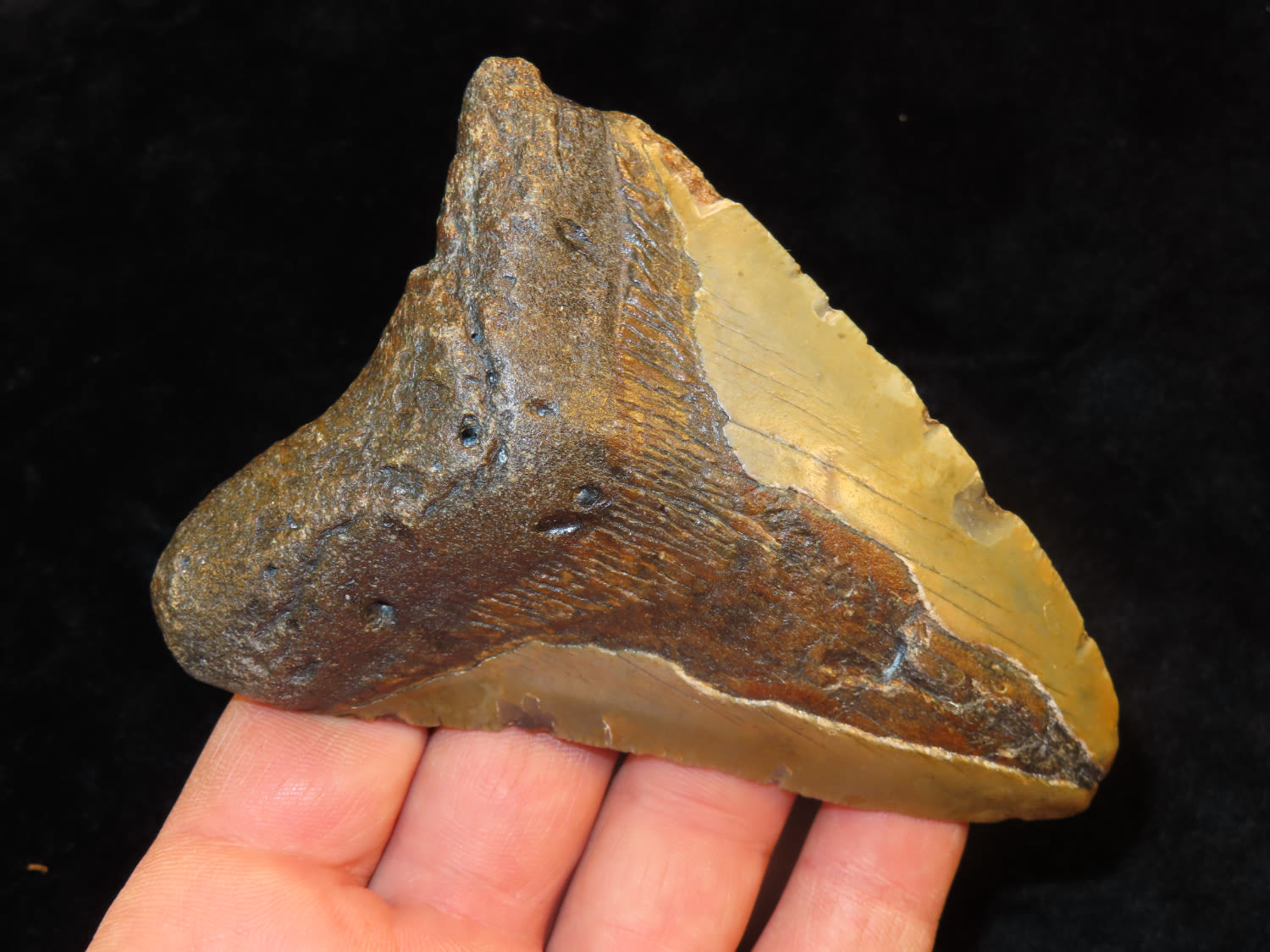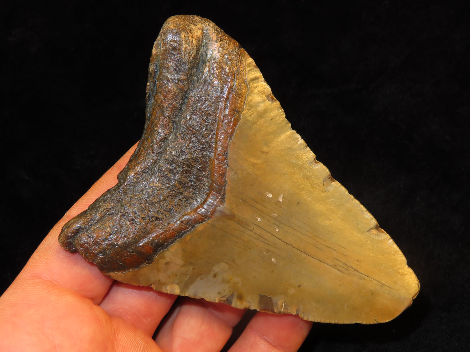 4 1/4″ Fossilized Megaladon Shark Tooth found in South Carolina