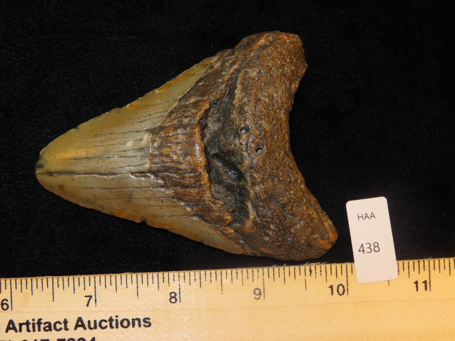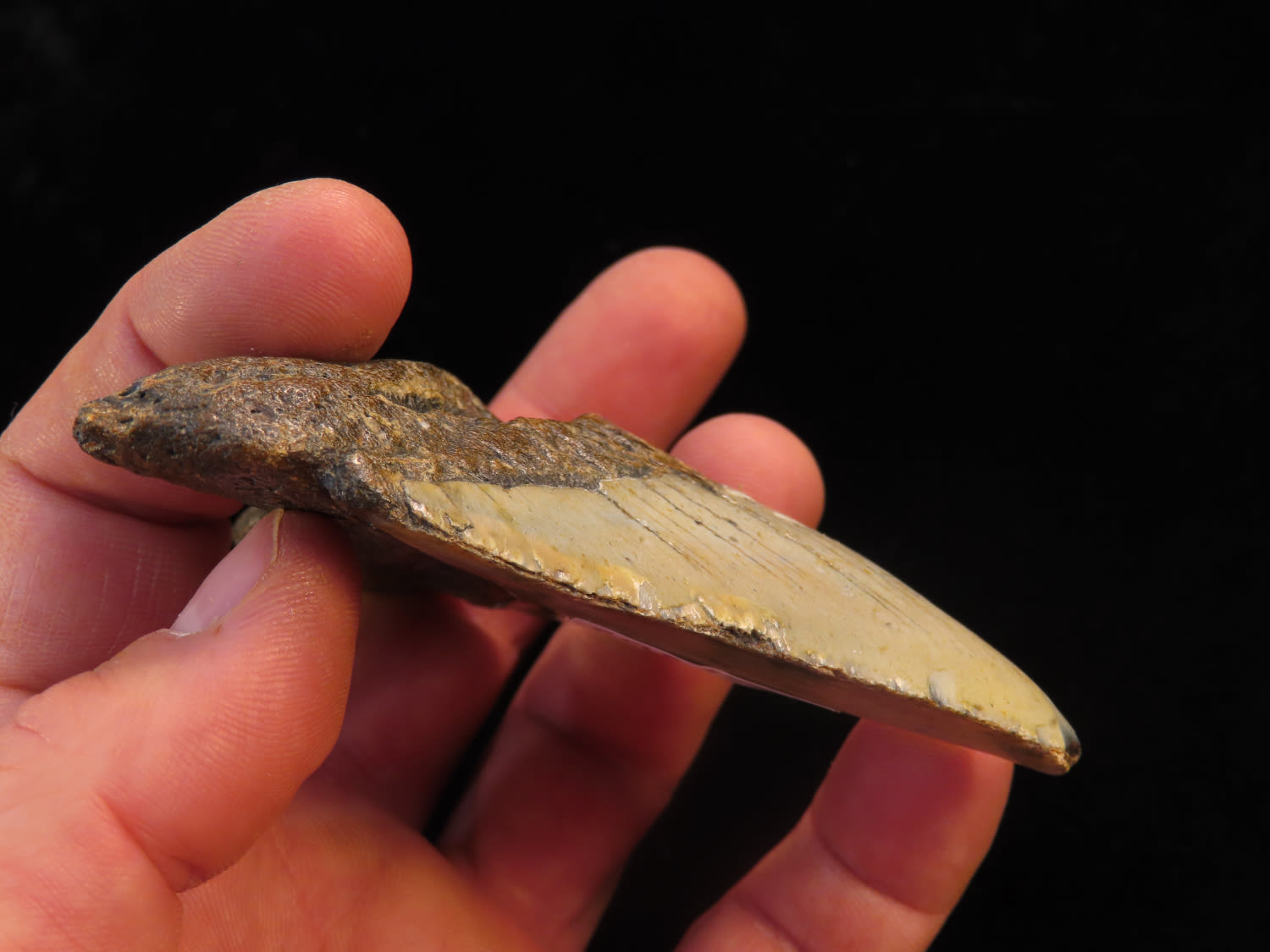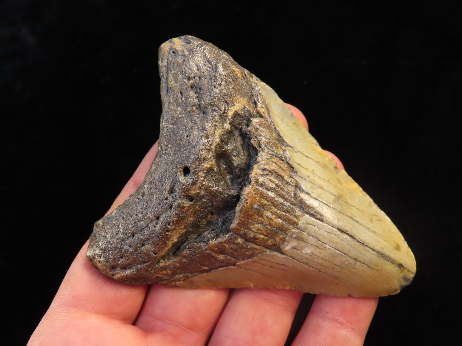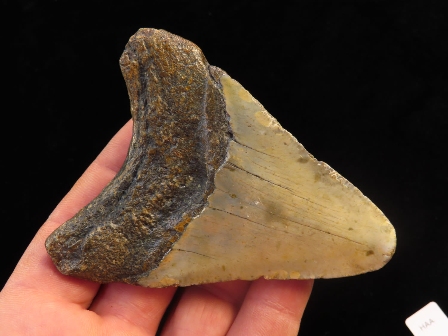 3 3/4″ Fossilized Megaladon Shark Tooth found in South Carolina