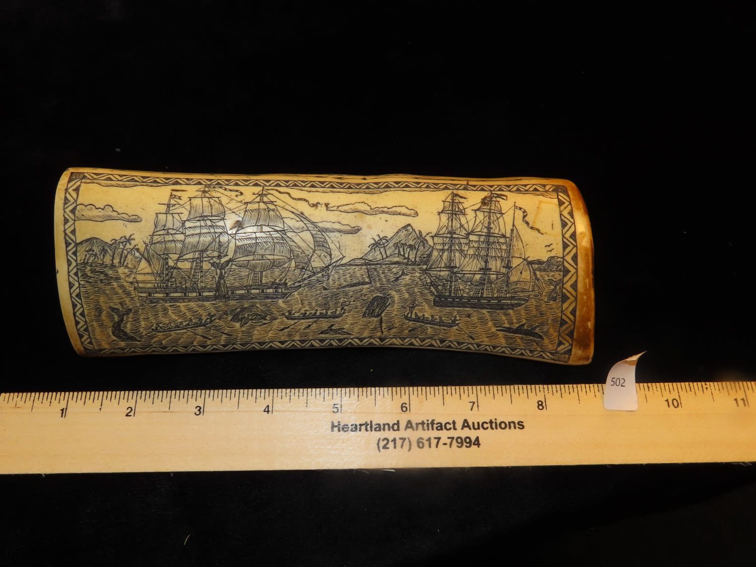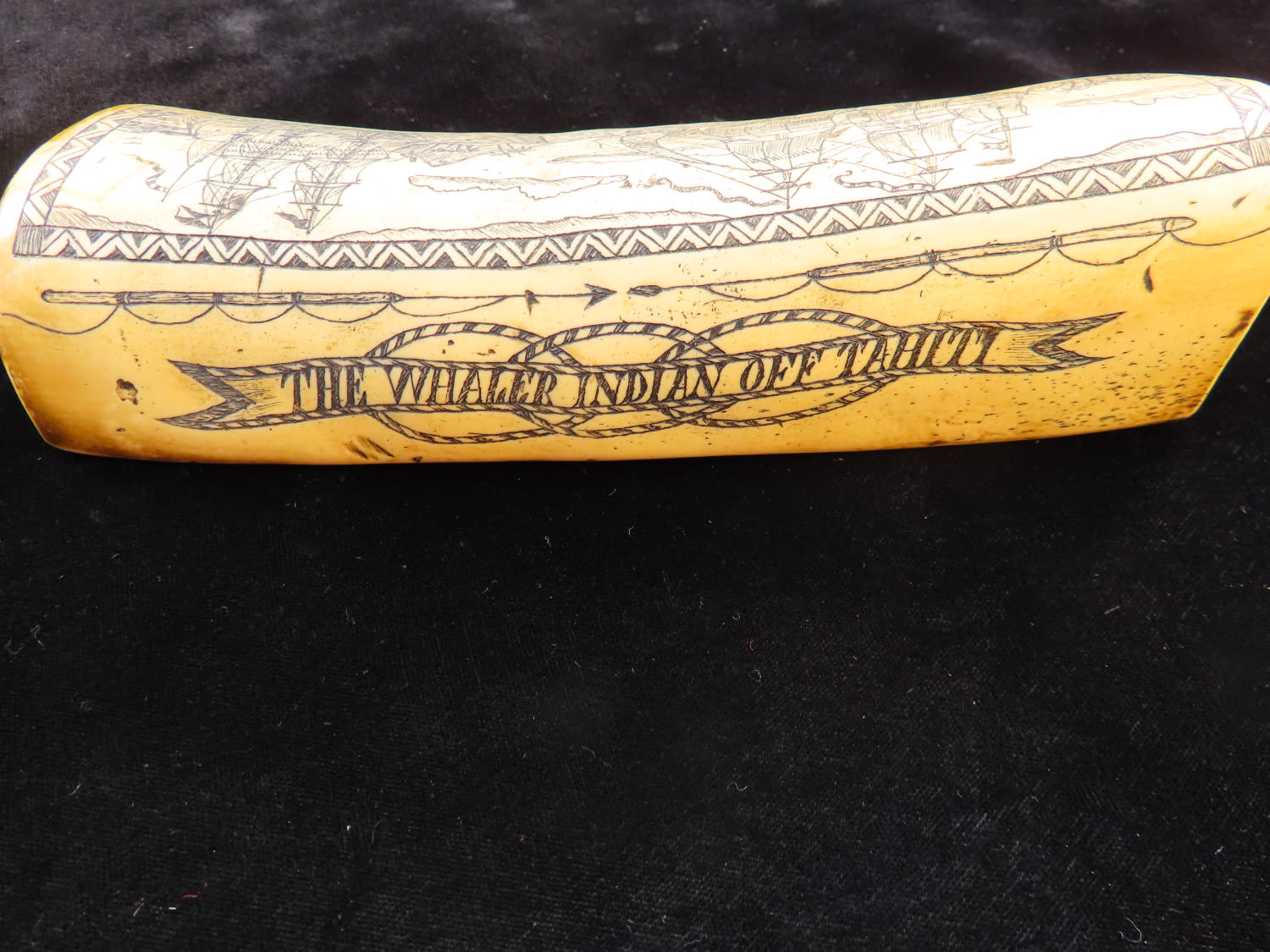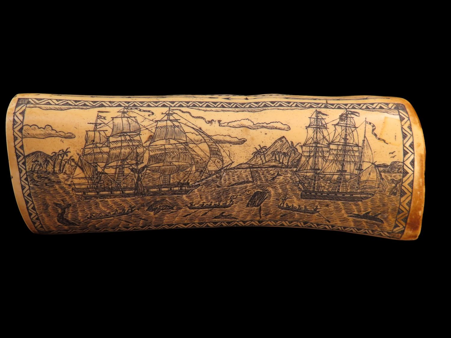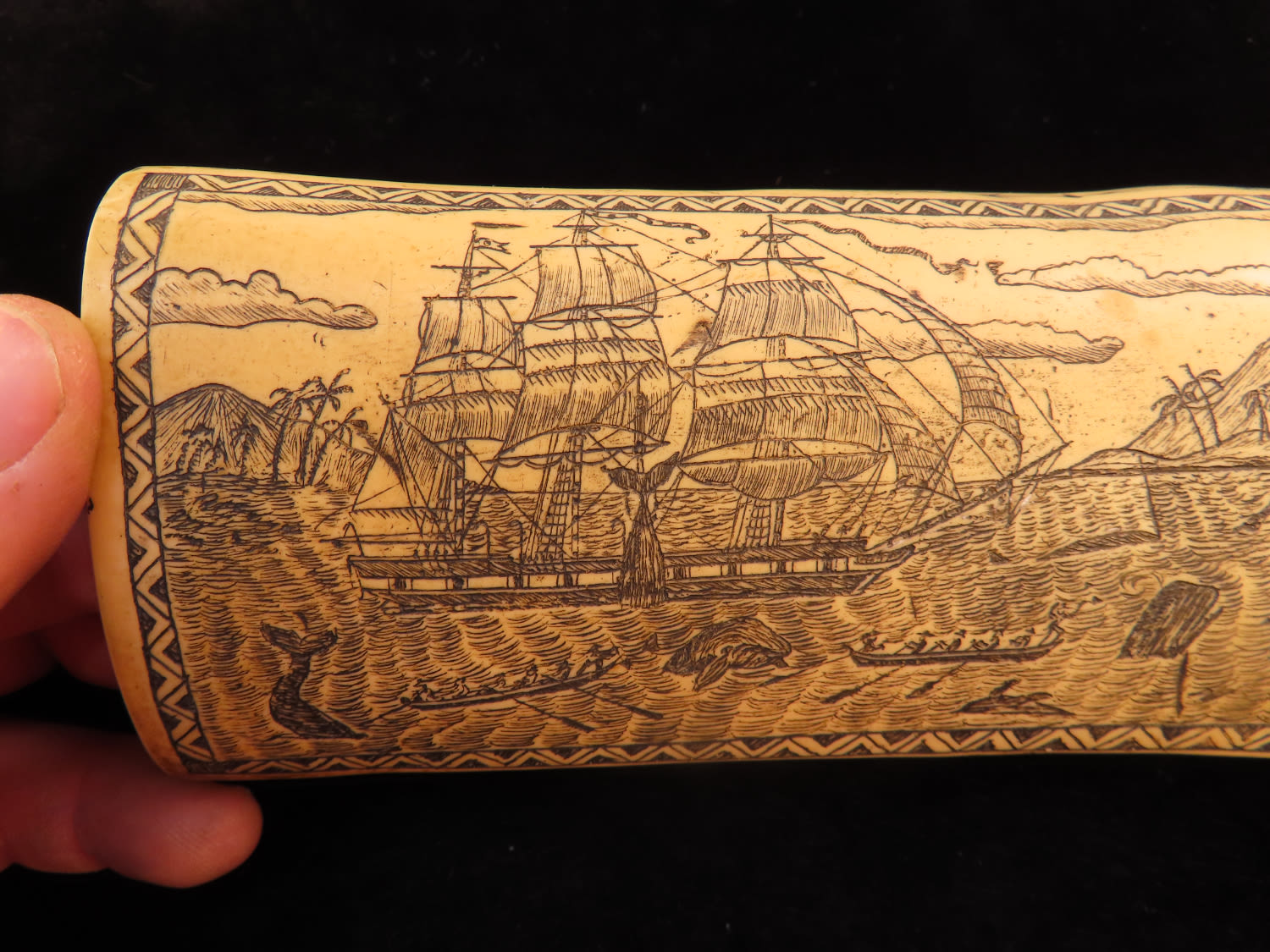 7 1/2″ Scrimshaw Section of Walrus Tusk Reproduction, -No Shipping Outside US, and to Limited States