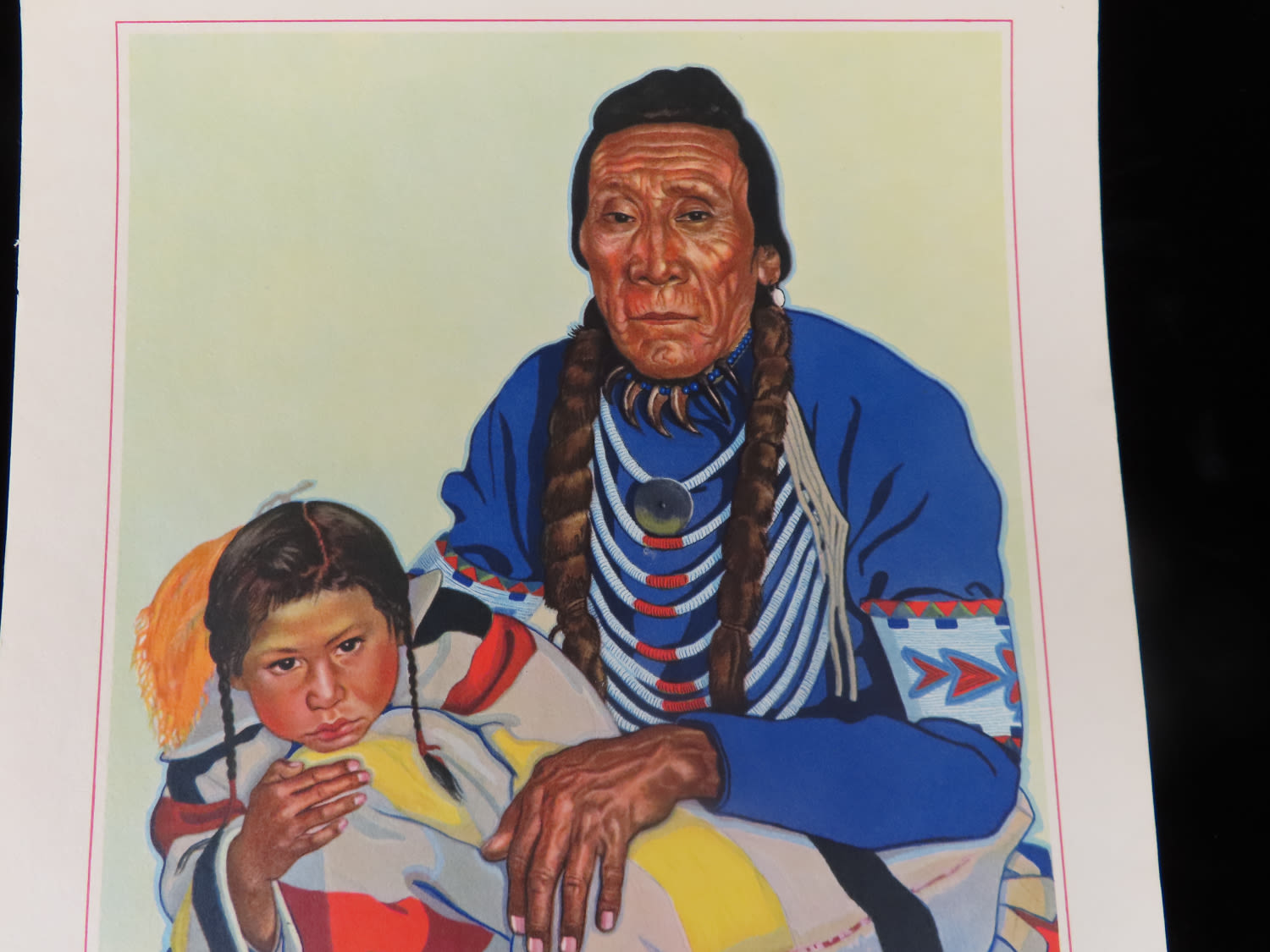“Turtle And His Young Son” – 9″ x 12″ by Winold Reiss – collection of Native American portraits (lithographs) Reiss immigrated to America in 1913 and was captivated by Native Americans. It was an interest and subject matter throughout his entire career. He was a success very early, lecturing before the Art Students League and even founding a publication, Modern Art Collector. He made over 250 paintings of Native Americans, especially the Blackfeet, publishing portfolios of his subjects.