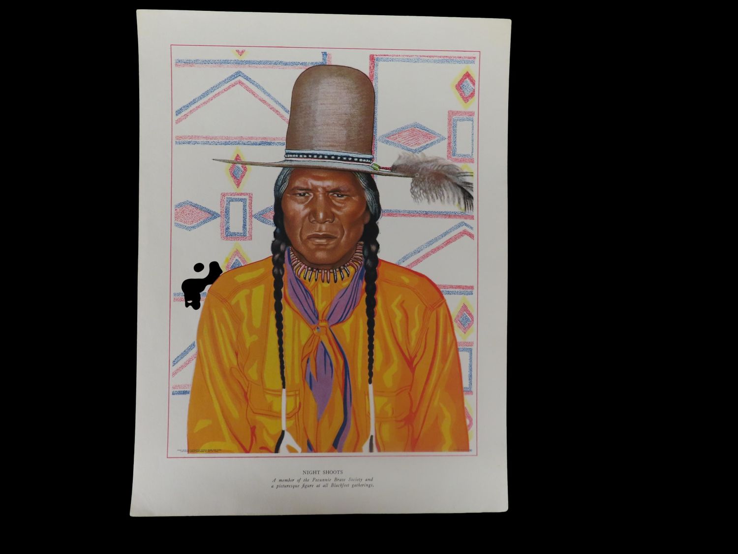 “Night Shoots” – 9″ x 12″ by Winold Reiss – collection of Native American portraits (lithographs) Reiss immigrated to America in 1913 and was captivated by Native Americans. It was an interest and subject matter throughout his entire career. He was a success very early, lecturing before the Art Students League and even founding a publication, Modern Art Collector. He made over 250 paintings of Native Americans, especially the Blackfeet, publishing portfolios of his subjects.