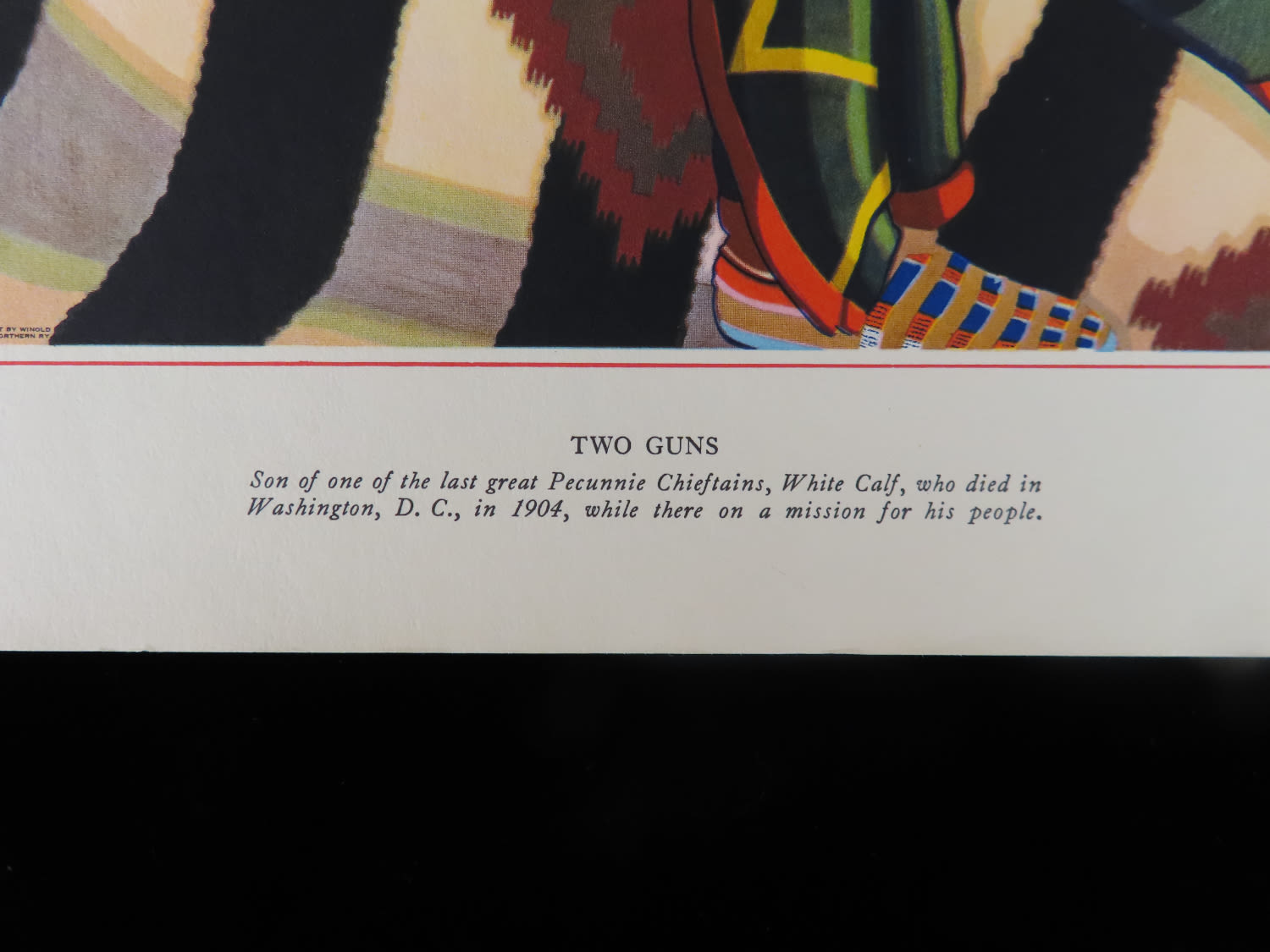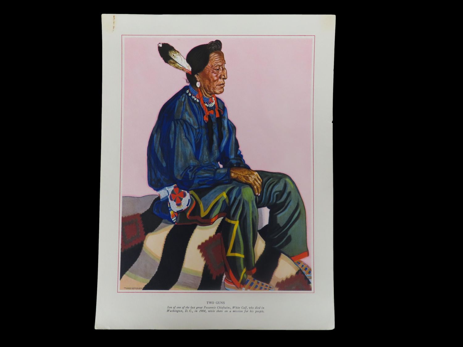 “Two Guns” – 9″ x 12″ by Winold Reiss – collection of Native American portraits (lithographs) Reiss immigrated to America in 1913 and was captivated by Native Americans. It was an interest and subject matter throughout his entire career. He was a success very early, lecturing before the Art Students League and even founding a publication, Modern Art Collector. He made over 250 paintings of Native Americans, especially the Blackfeet, publishing portfolios of his subjects.