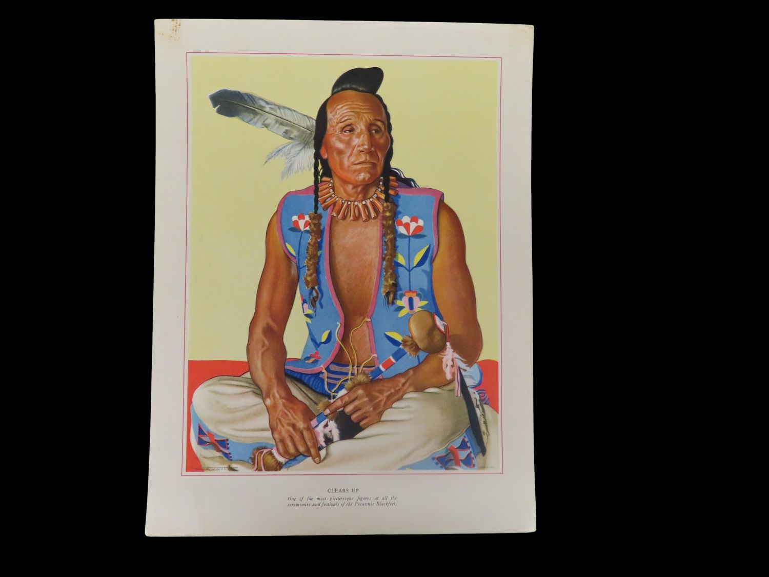 “Clears Up” – 9″ x 12″ by Winold Reiss – collection of Native American portraits (lithographs) Reiss immigrated to America in 1913 and was captivated by Native Americans. It was an interest and subject matter throughout his entire career. He was a success very early, lecturing before the Art Students League and even founding a publication, Modern Art Collector. He made over 250 paintings of Native Americans, especially the Blackfeet, publishing portfolios of his subjects.