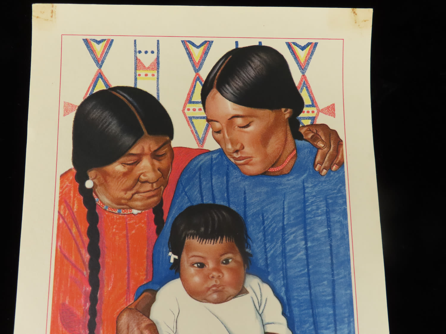 “Many Horses, Little Rosebush, and Baby” – 9″ x 12″ by Winold Reiss – collection of Native American portraits (lithographs) Reiss immigrated to America in 1913 and was captivated by Native Americans. It was an interest and subject matter throughout his entire career. He was a success very early, lecturing before the Art Students League and even founding a publication, Modern Art Collector. He made over 250 paintings of Native Americans, especially the Blackfeet, publishing portfolios of his subjects.