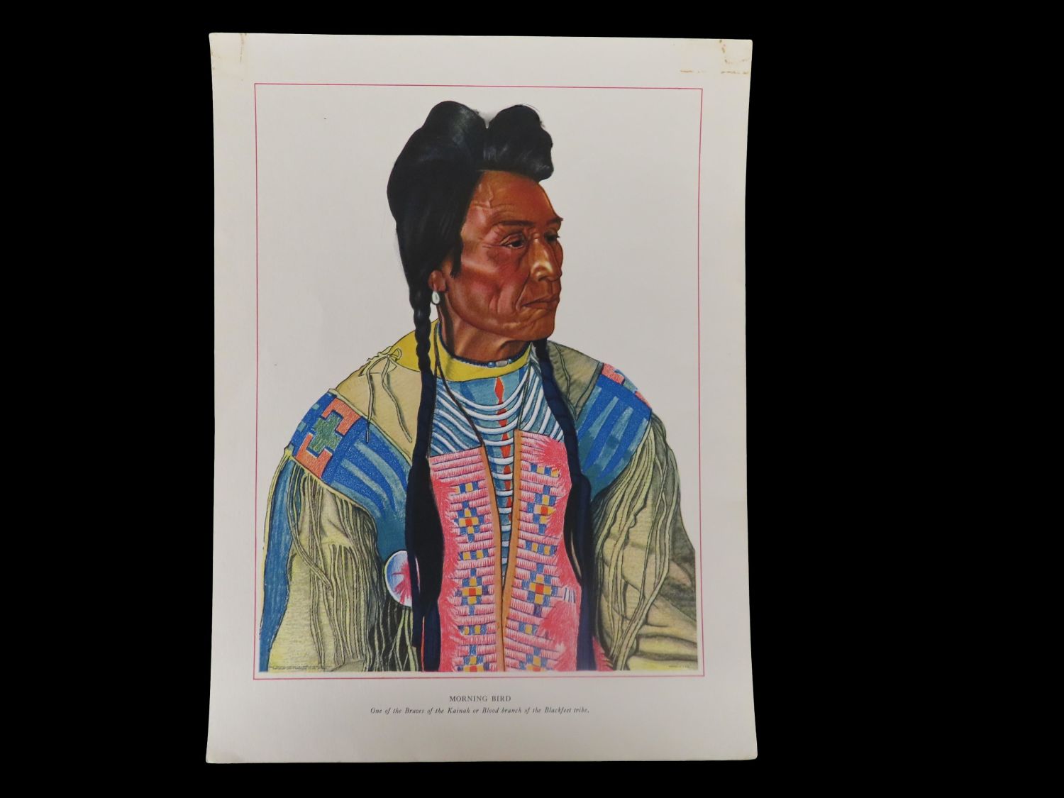“Morning Bird” – 9″ x 12″ by Winold Reiss – collection of Native American portraits (lithographs) Reiss immigrated to America in 1913 and was captivated by Native Americans. It was an interest and subject matter throughout his entire career. He was a success very early, lecturing before the Art Students League and even founding a publication, Modern Art Collector. He made over 250 paintings of Native Americans, especially the Blackfeet, publishing portfolios of his subjects.