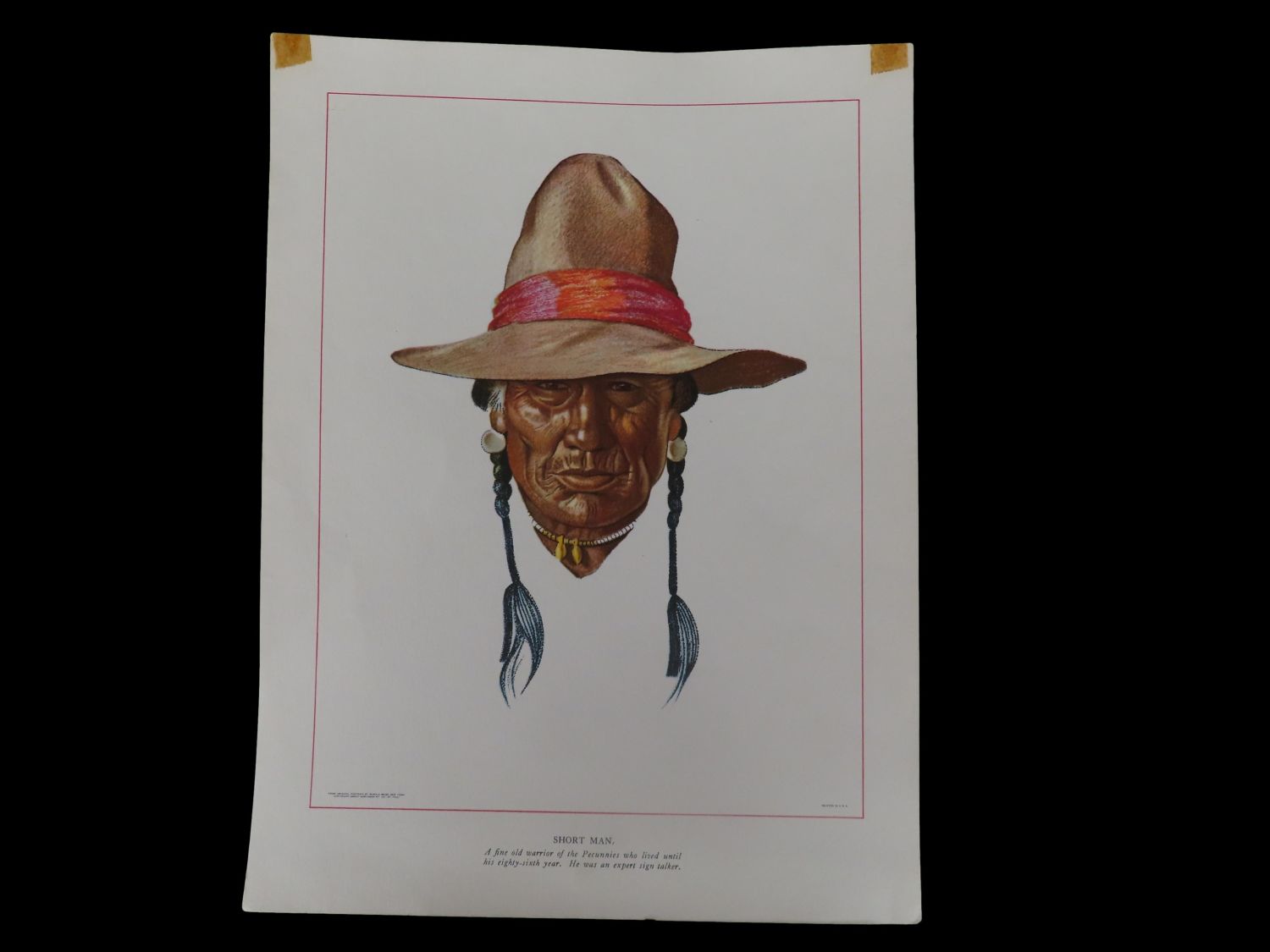“Short Man”- 9″ x 12″ by Winold Reiss – collection of Native American portraits (lithographs) Reiss immigrated to America in 1913 and was captivated by Native Americans. It was an interest and subject matter throughout his entire career. He was a success very early, lecturing before the Art Students League and even founding a publication, Modern Art Collector. He made over 250 paintings of Native Americans, especially the Blackfeet, publishing portfolios of his subjects.