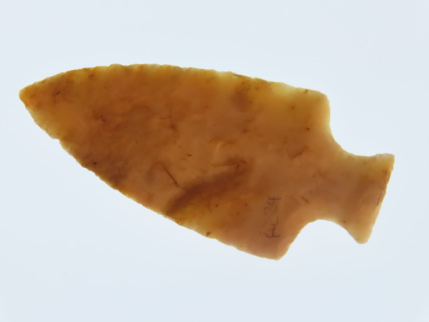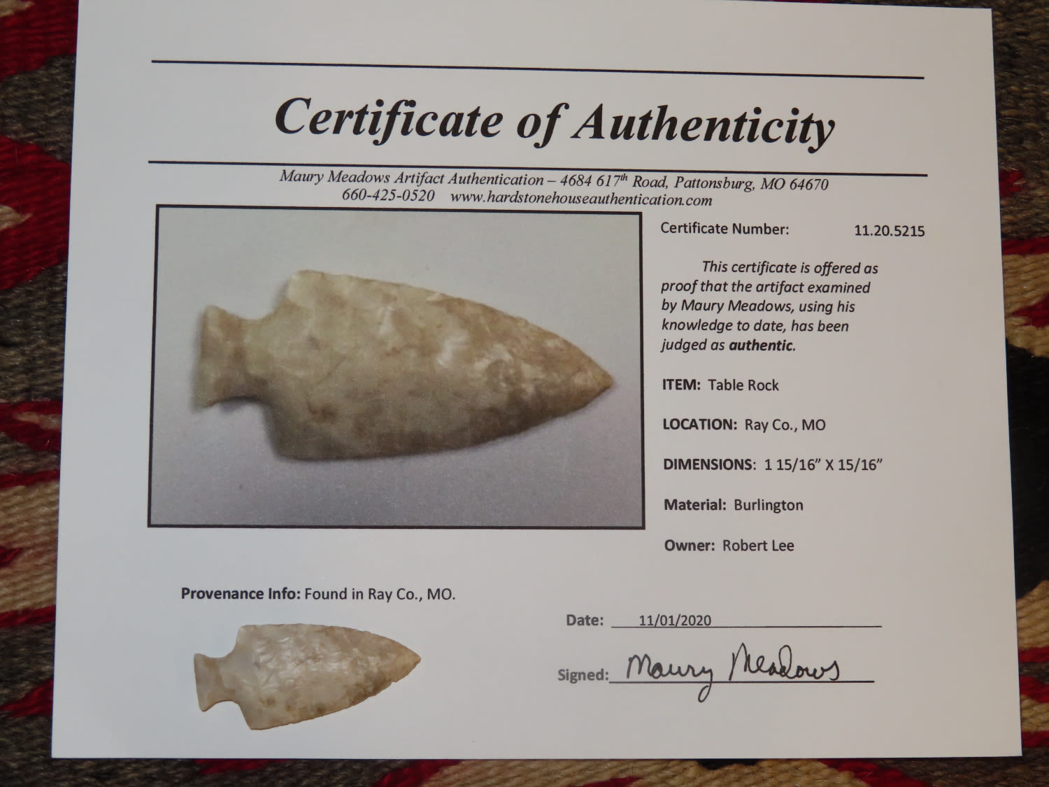 1 15/16″ Table Rock found in Ray County, Missouri. Meadows COA. Extremely fine and well made example, semi translucent