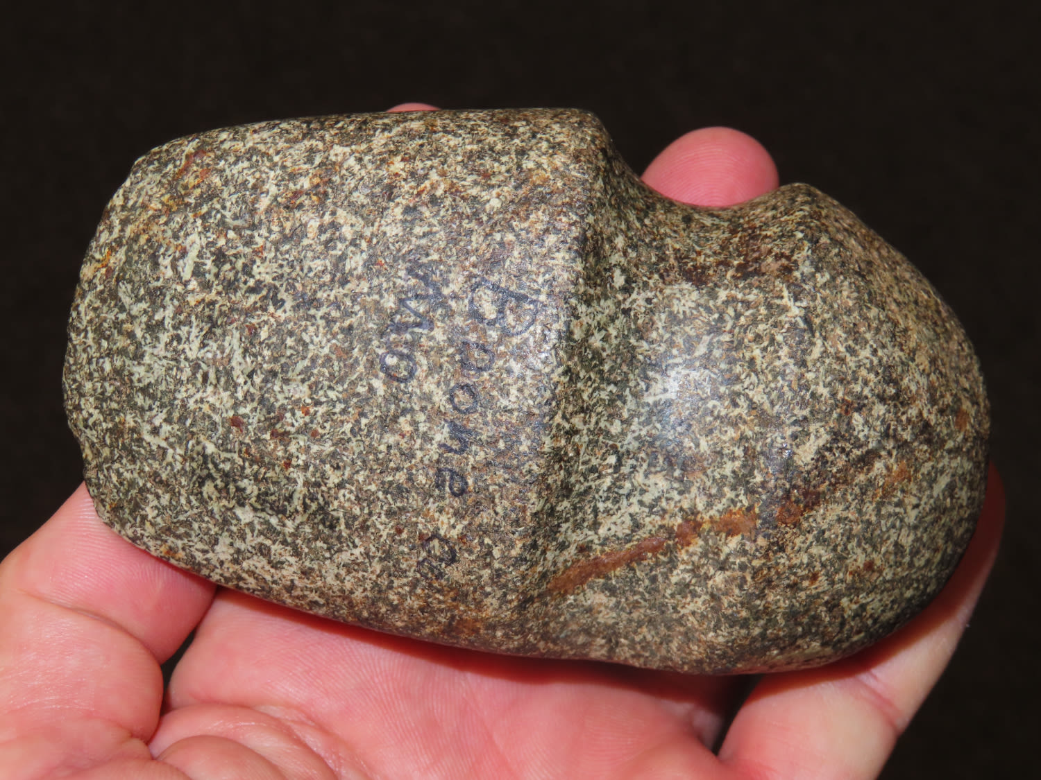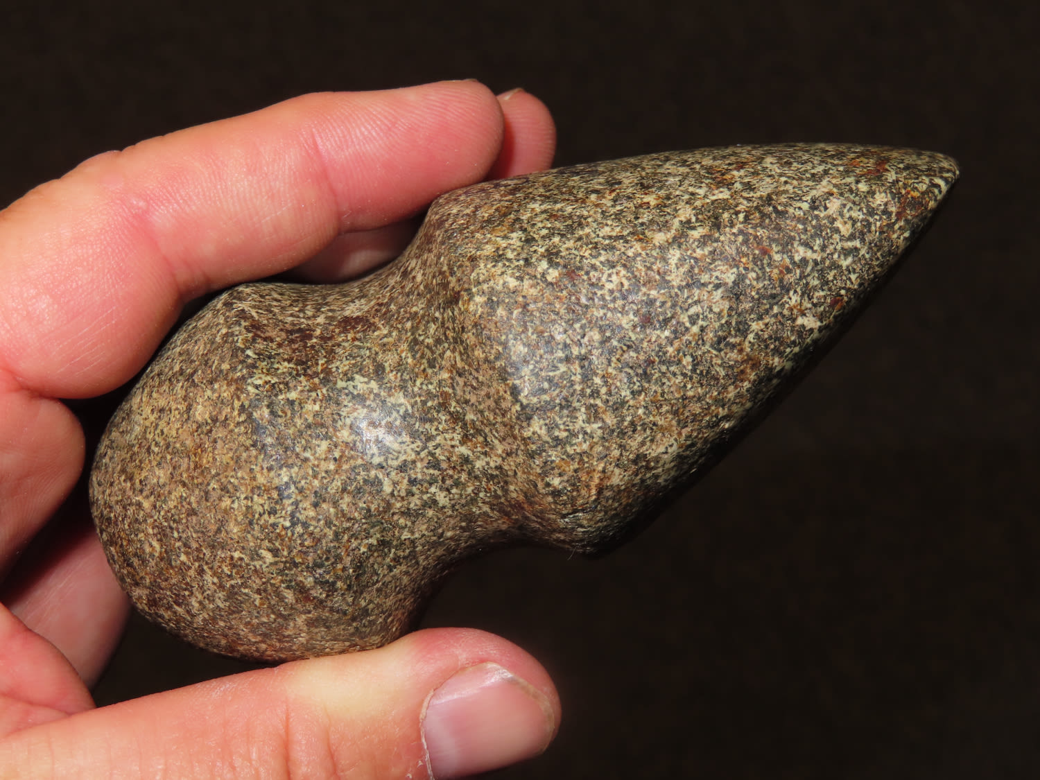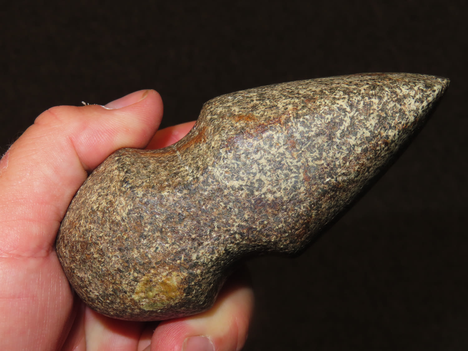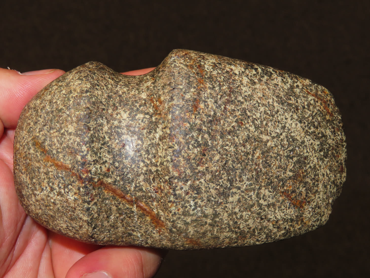 4 3/8″ quality 3/4 Groove Axe found in Boone County, Missouri, fine color and polish
