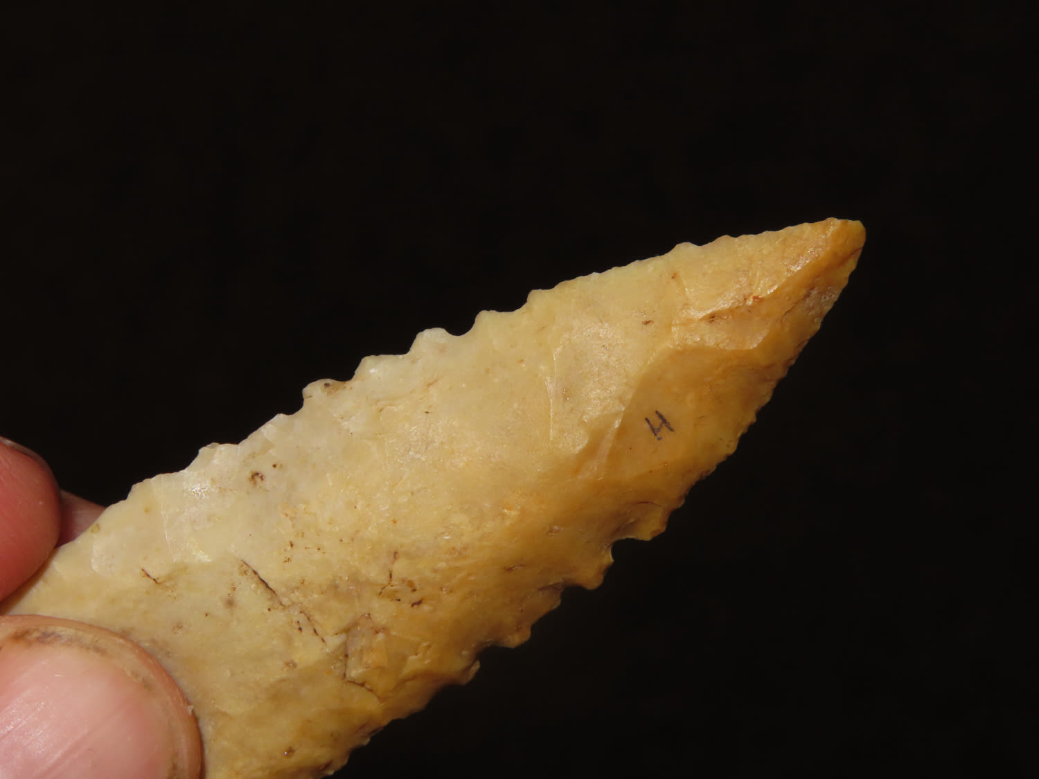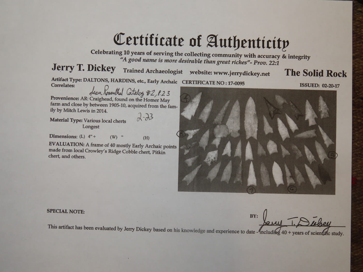 2 1/2″ Serrated Dalton, Dickey COA copy from a grouping he papered, found in Craighead County, Arkansas by Homer May between 1905-1910, ex Sean Rosenthal
