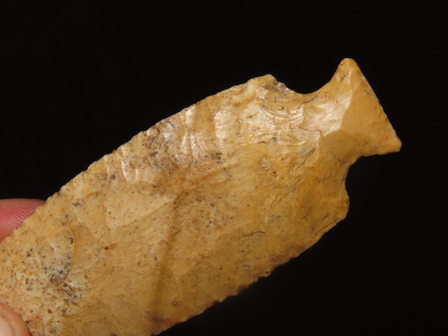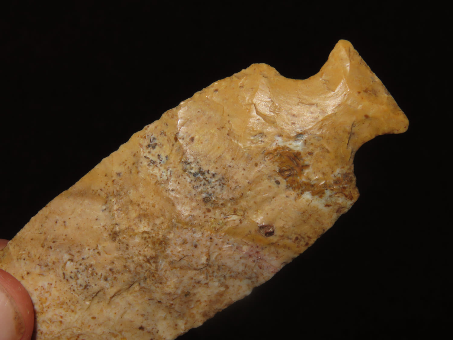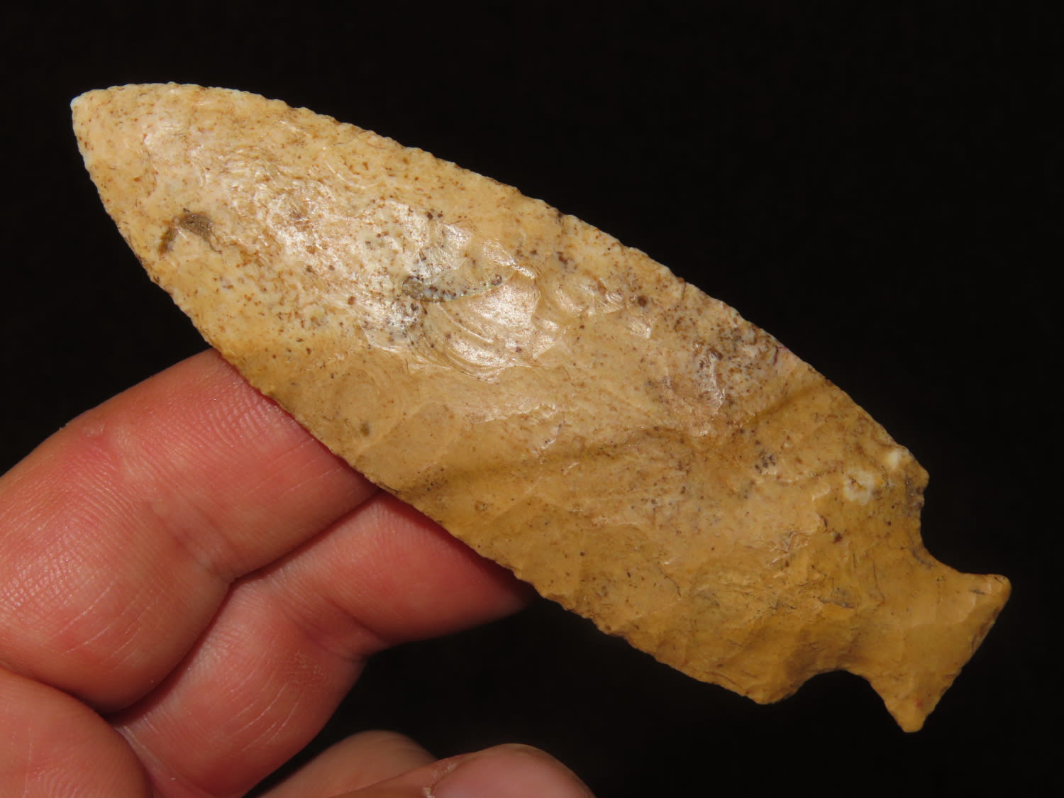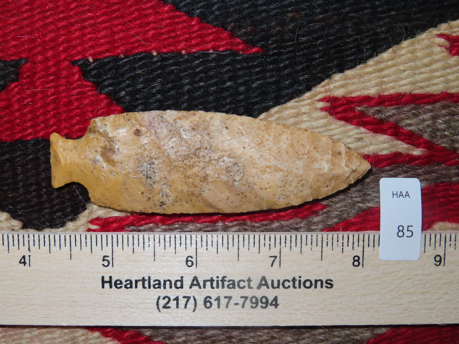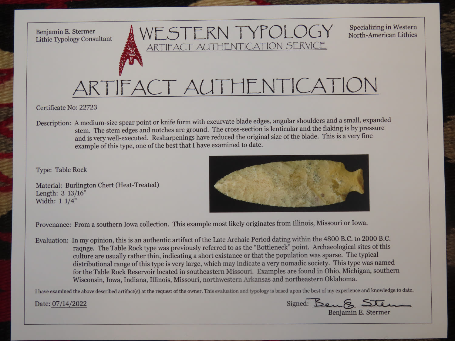 3 13/16″ Tablerock made of Colorful Burlington Chert, Stermer COA very fine and well made relic, ex Ralph Kempf, Southern Iowa
