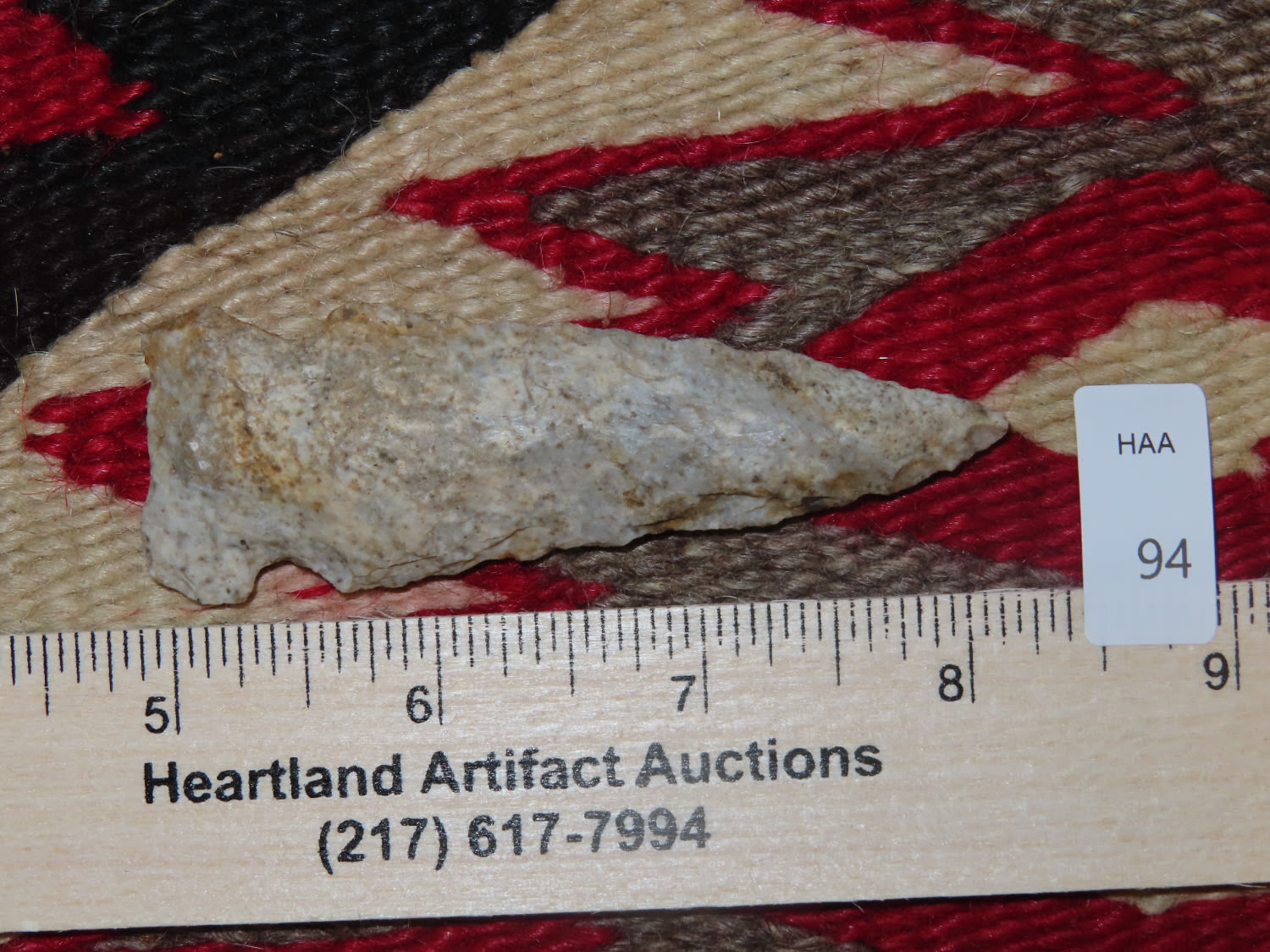 3 1/4″ Hemphill made of Creek Stained Burlington Chert found in Sullivan County Missouri, ex Steve McCabe