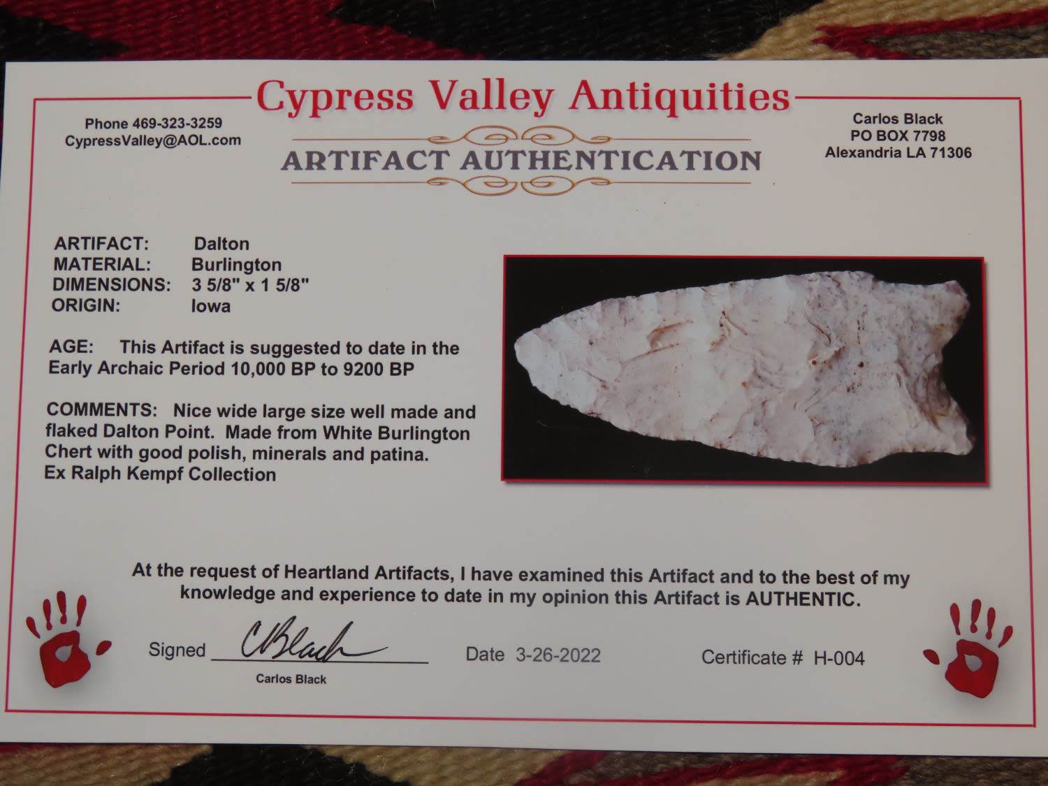 3 5/8″ Dalton, Carlos Black COA, found in Iowa, ex Ralph Kempe