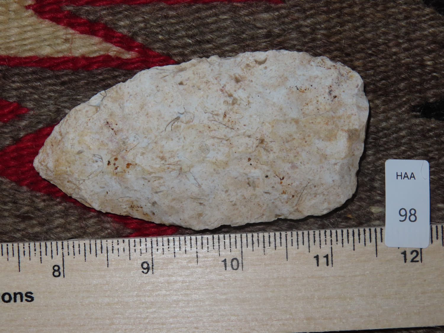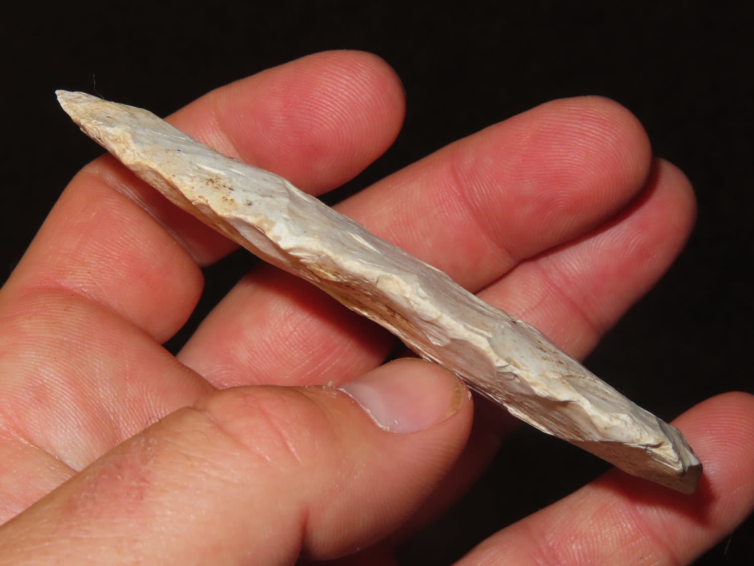 3 3/4″ Early Archaic Blade, made of Creek Stained Burlington Chert found in Sullivan County Missouri, ex Steve McCabe