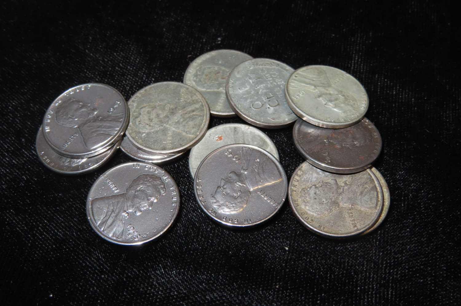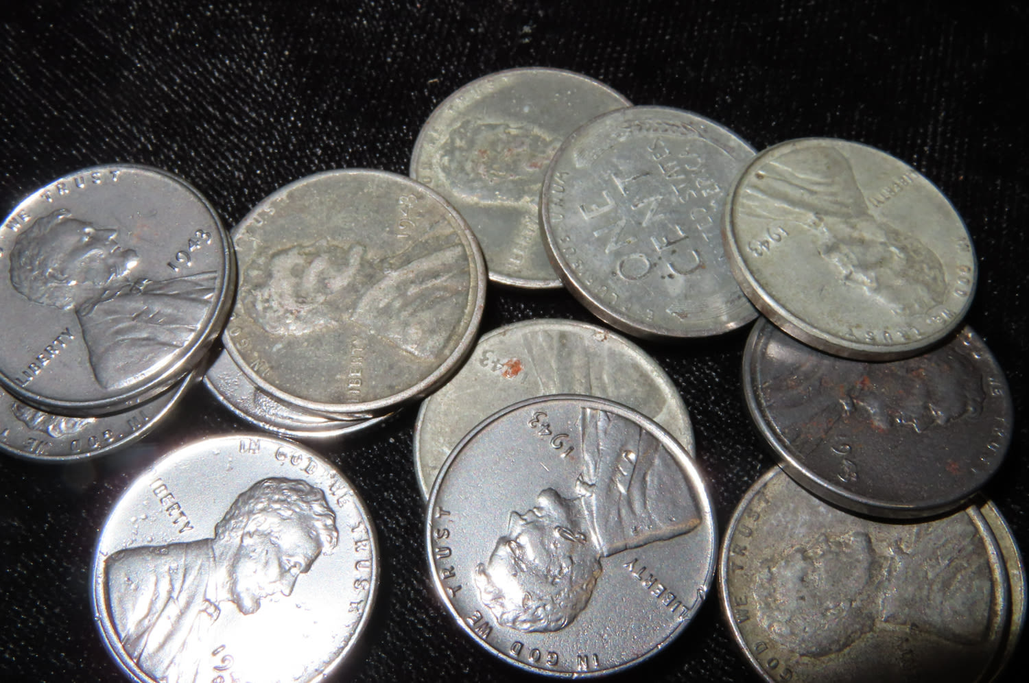 LOT OF 10 WWII ERA STEEL PENNY, WHEAT PENNIES, LINCON CENT, 1943 P-D-S