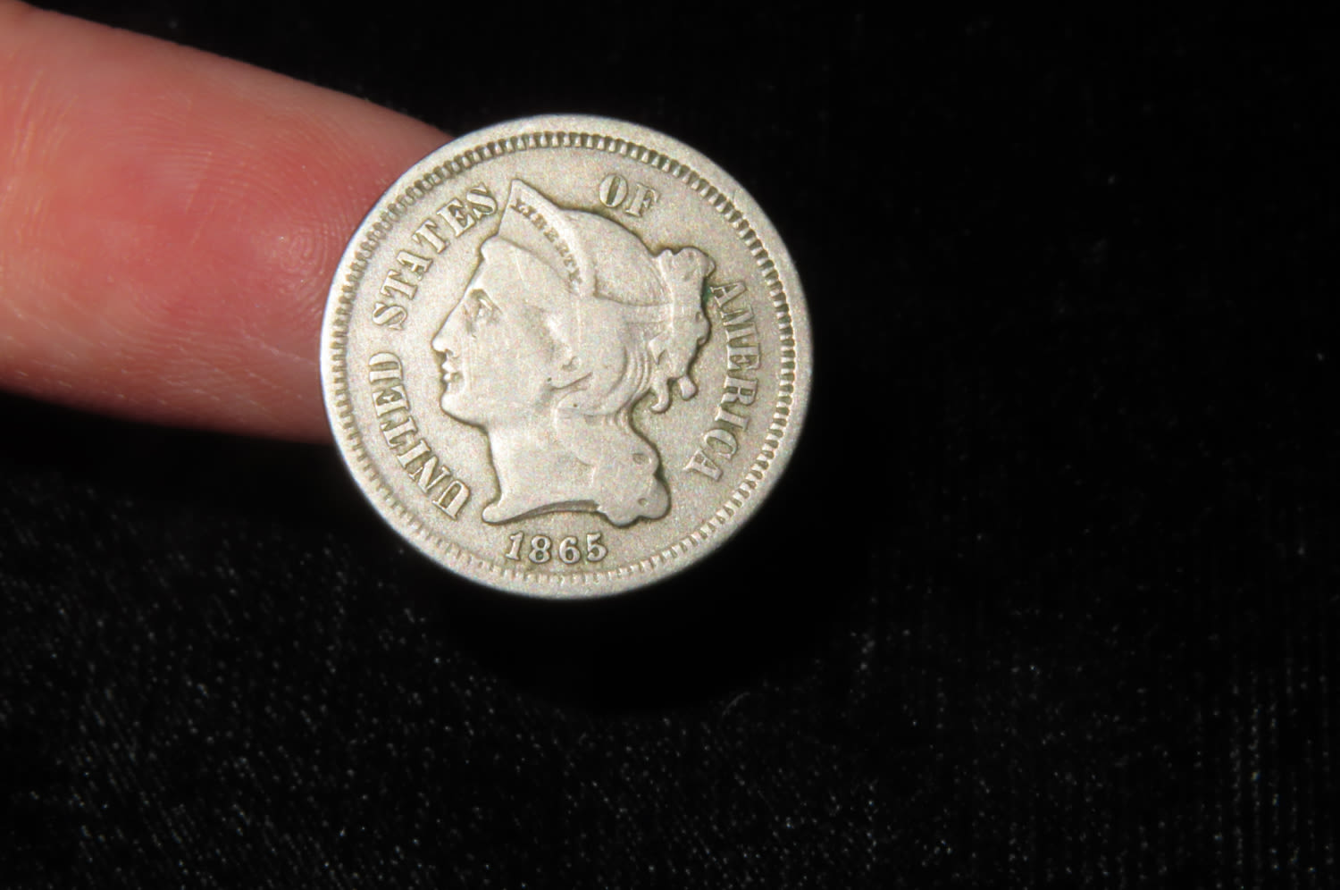 1865 THREE CENT NICKEL, EARLY US COIN, 3 CENT PIECE