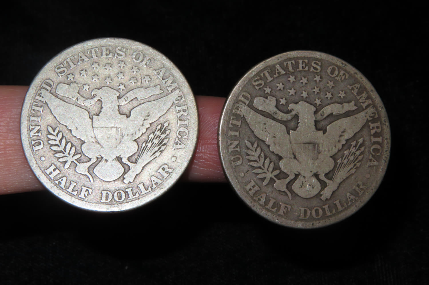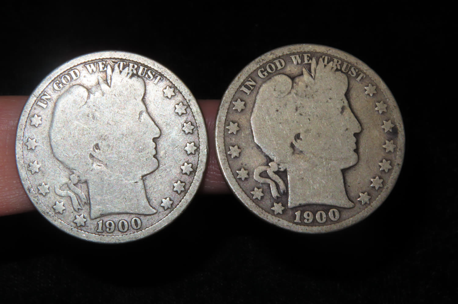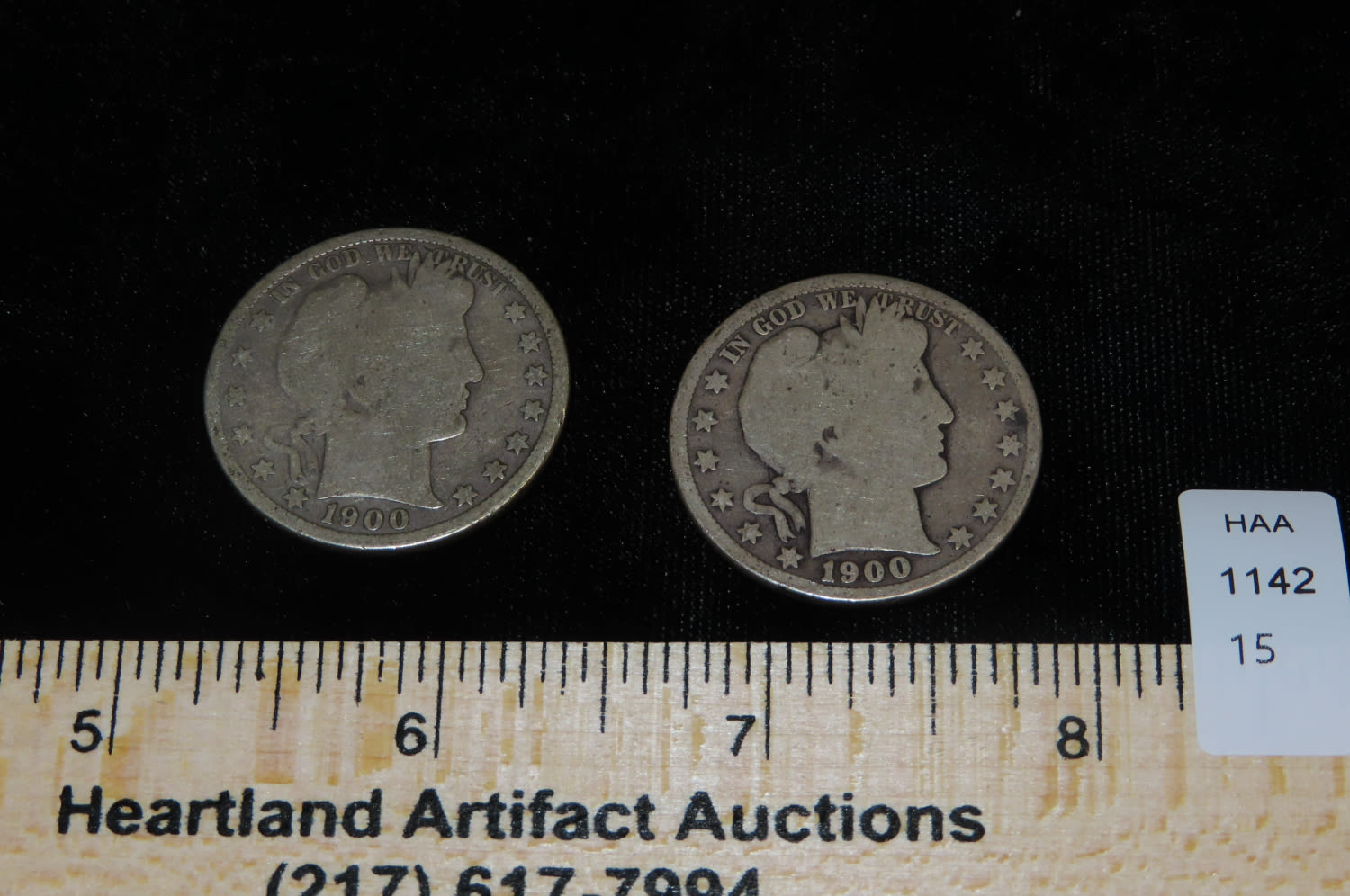 PAIR OF 1900 SILVER BARBER HALF DOLLARS, 1 OUNCE OF SILVER, EARLY US COINS