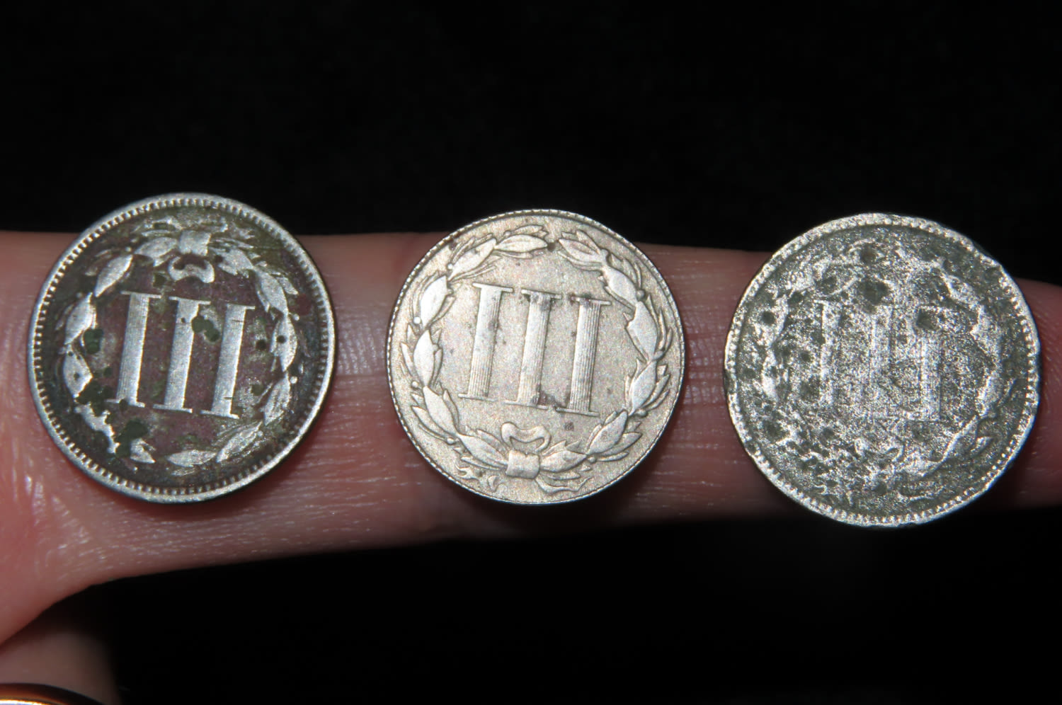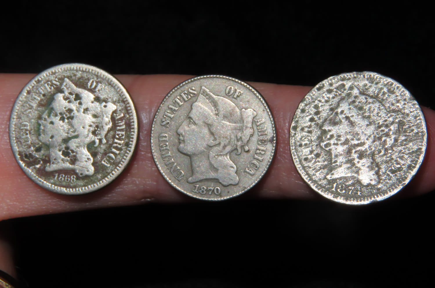 LOT OF 3 EARLY THREE CENT NICKELS, 3 CENT US COIN