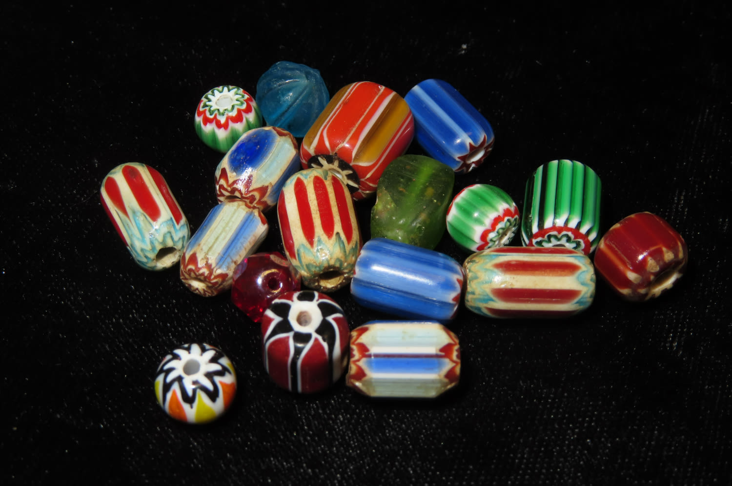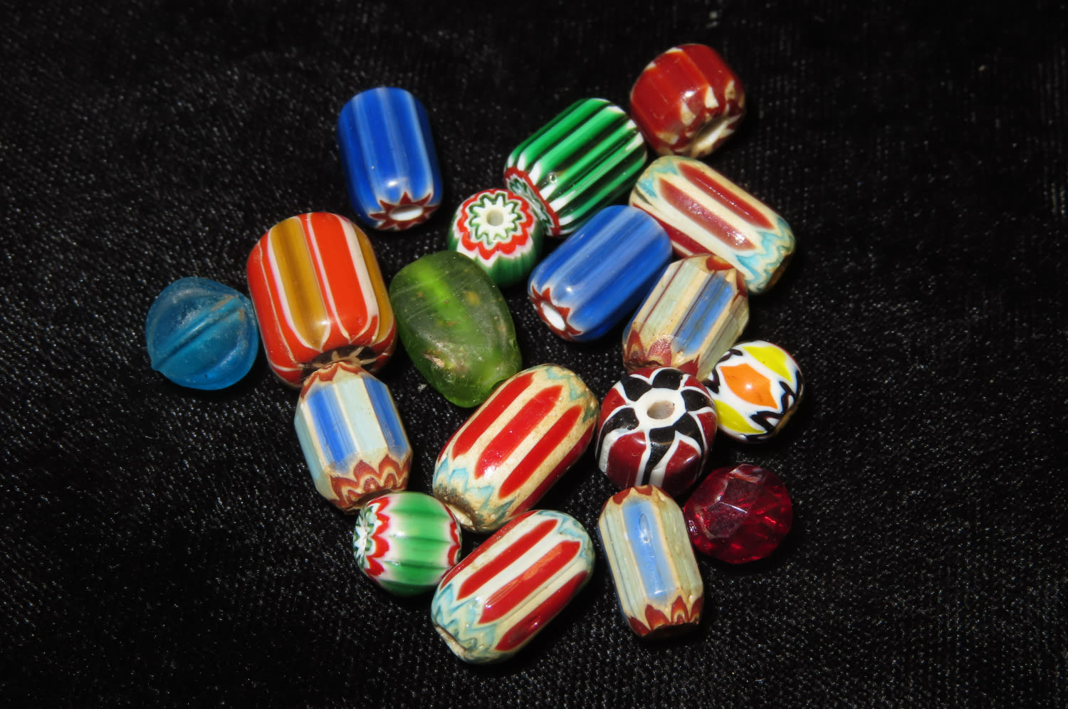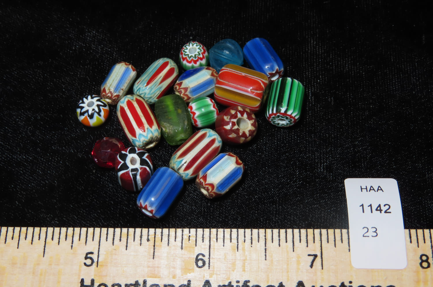 LOT OF EARLY HISTORIC TRADE BEADS, COLORFUL EXAMPLES, FROM NORTHERN ALABAMA
