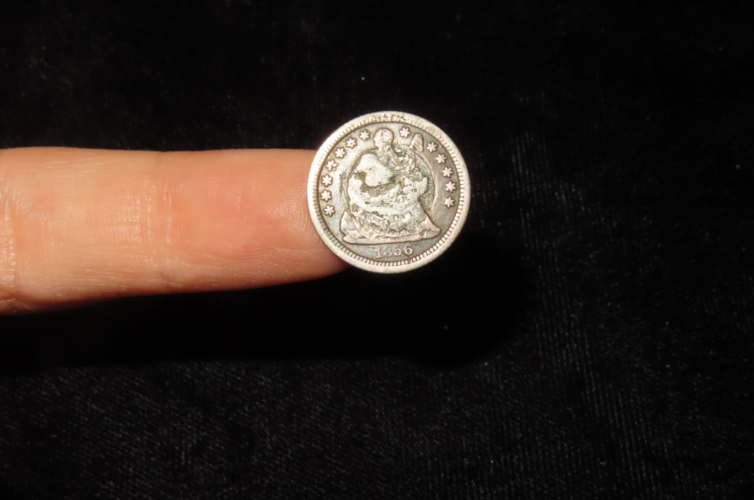 1856 DATED SILVER HALF DIME ENGRAVED LOVE TOKEN, NICE DESING