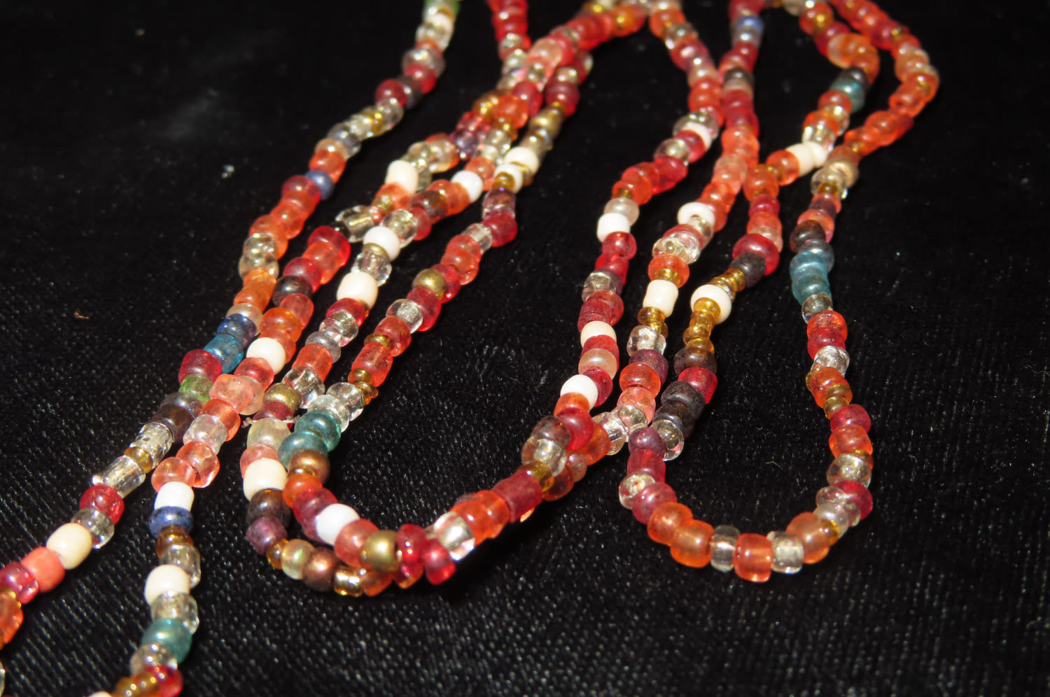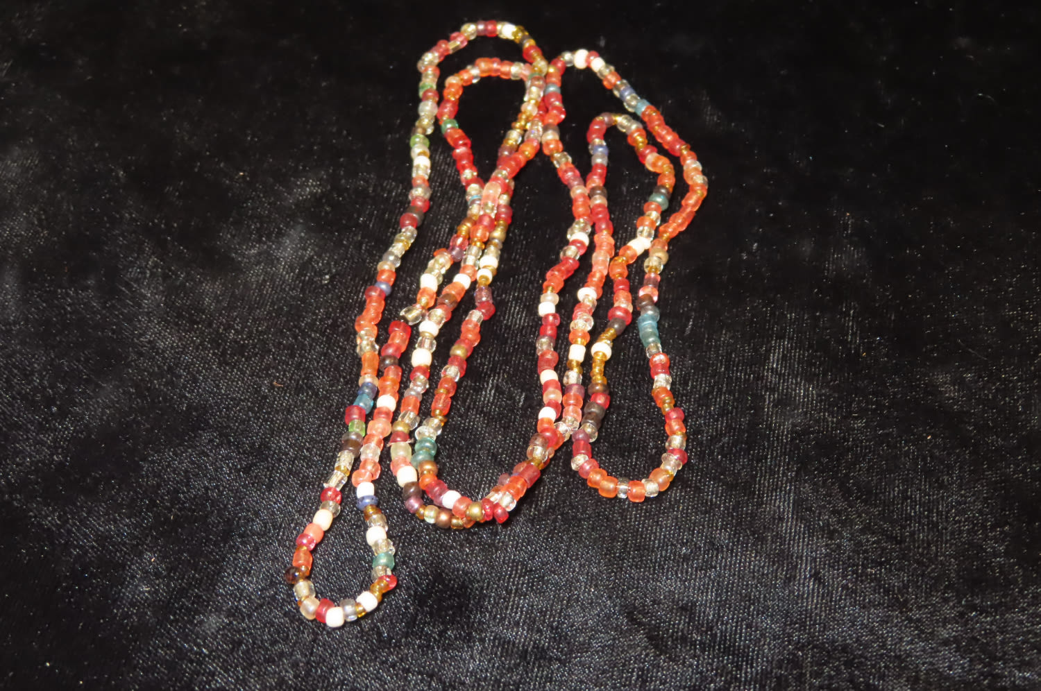 NICE 34″ LONG STRAND OF COLORFUL EARLY GLASS TRADE BEADS