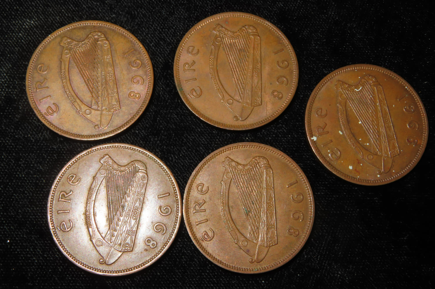 LOT OF 5 FOREIGN COINS FROM THE 1960’S, LARGE SIZE COINS