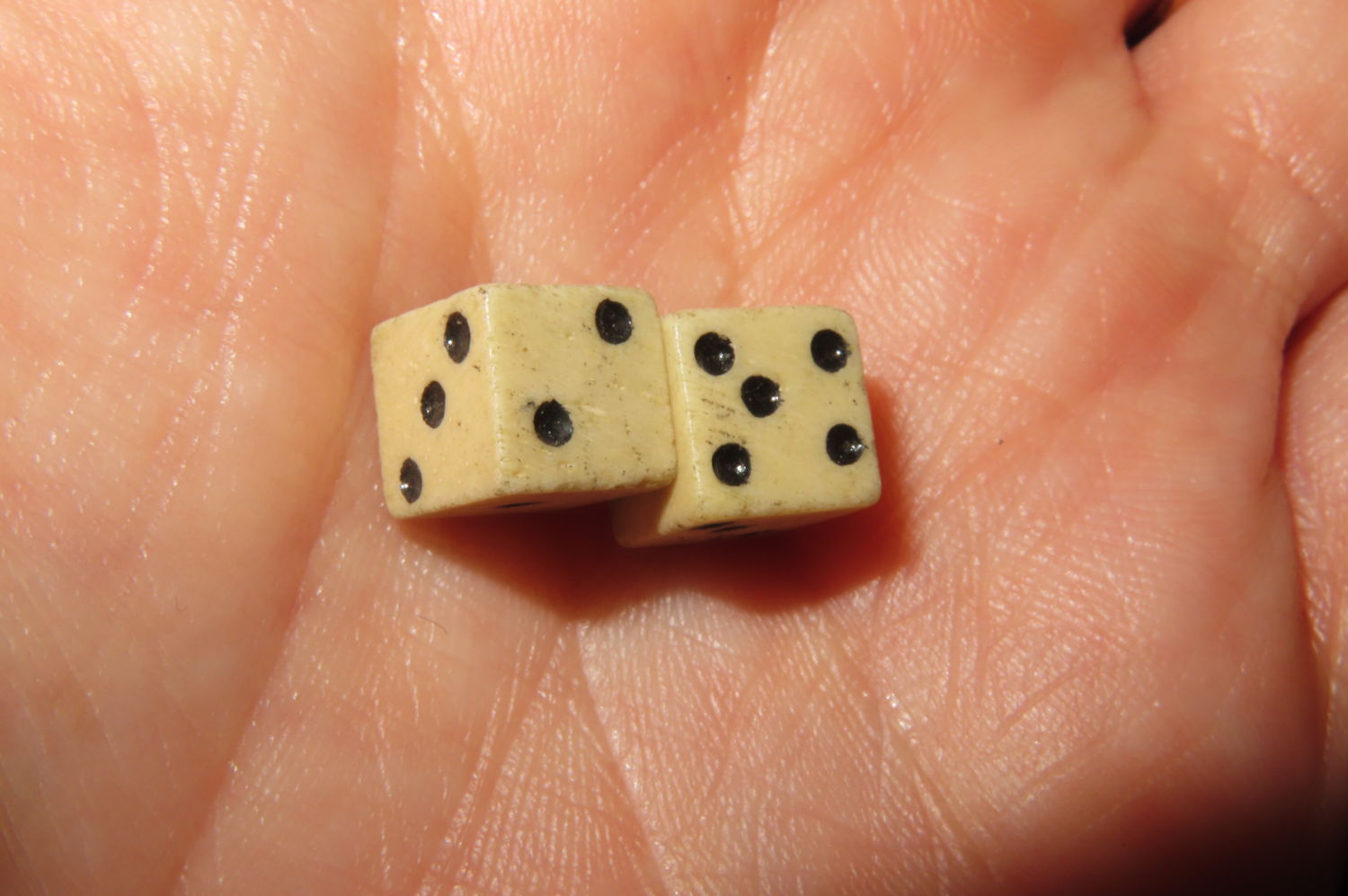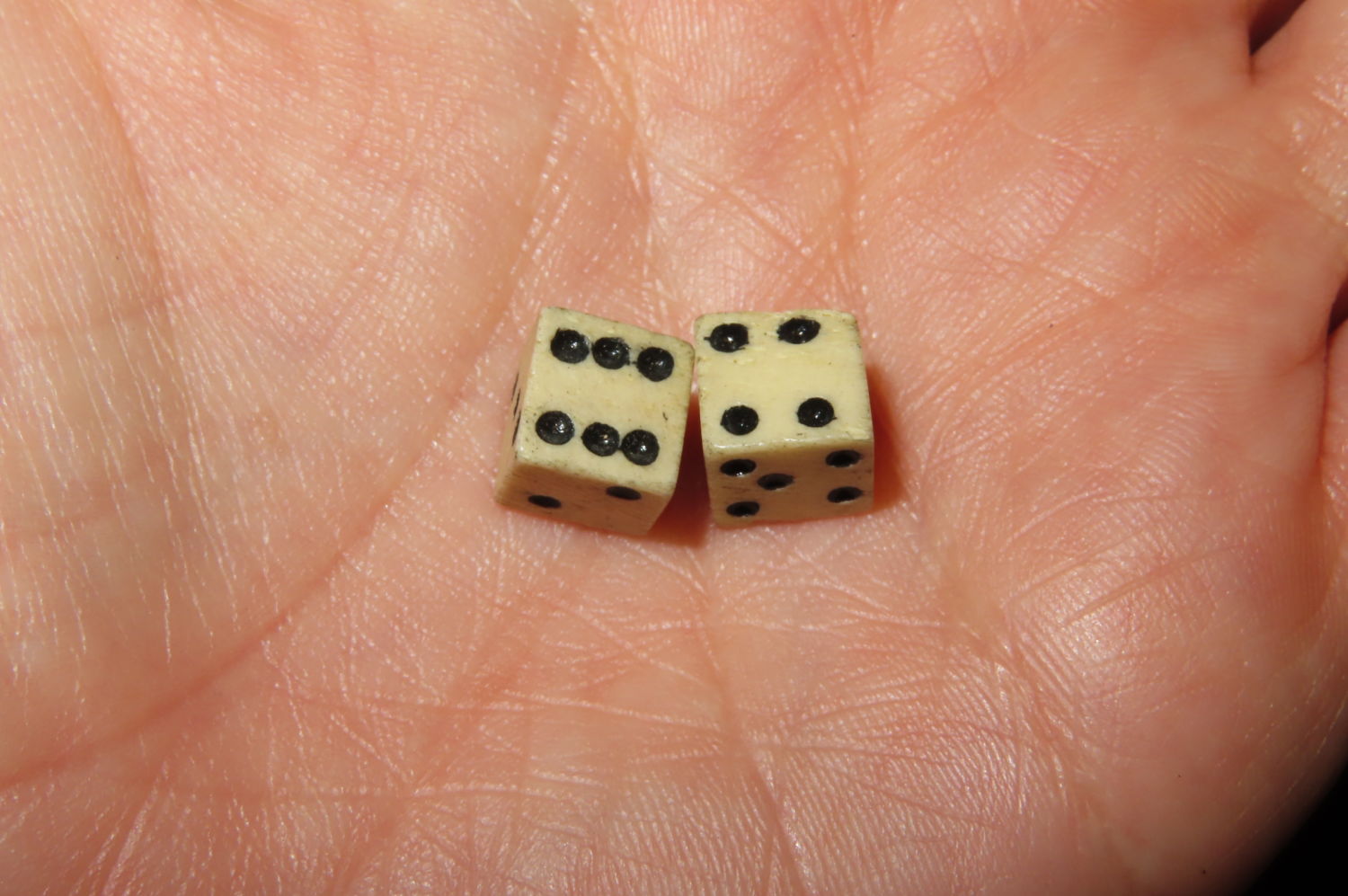 PAIR OF CIVIL WAR ERA BONE DICE, MATCHED SET