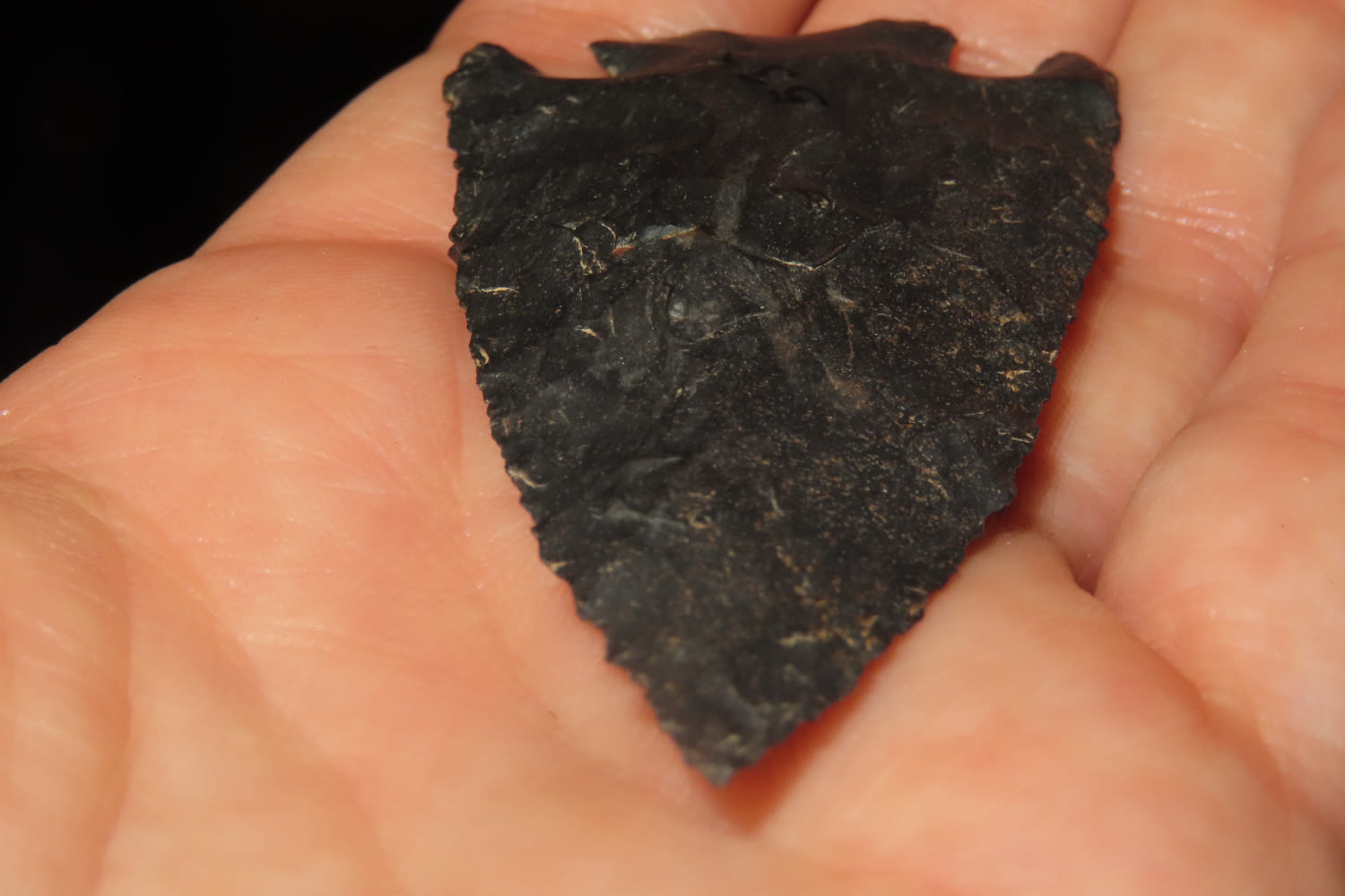 2 5/8″ Kirk Corner Notch found in Arkansas EX. Sam Wasion Collection Authentic Native American Artifact