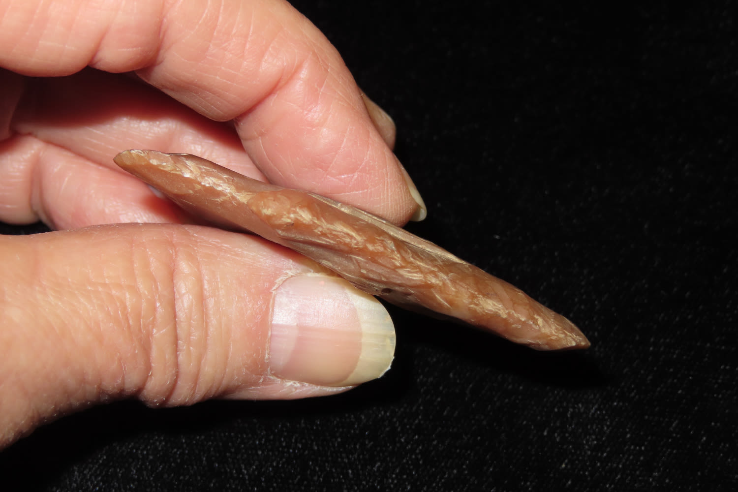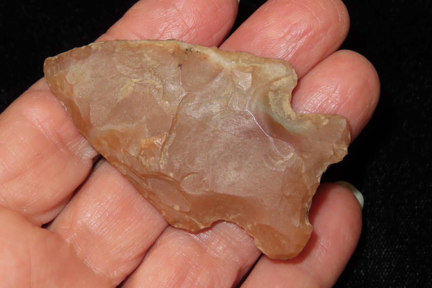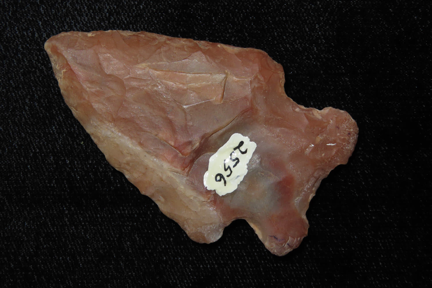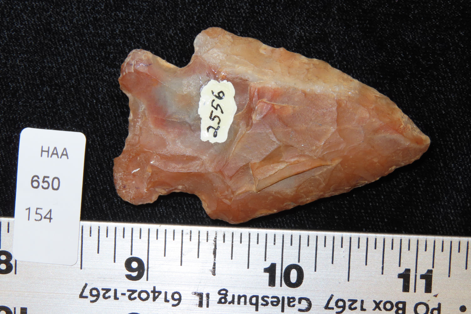 3 3/8″ Side notch made of colorful agate purchased in 1958 for .25 cents, Ex Robert Hruska Collection, Milwaukee, Wisconsin EX. Sam Wasion Collection Authentic Native American Artifact