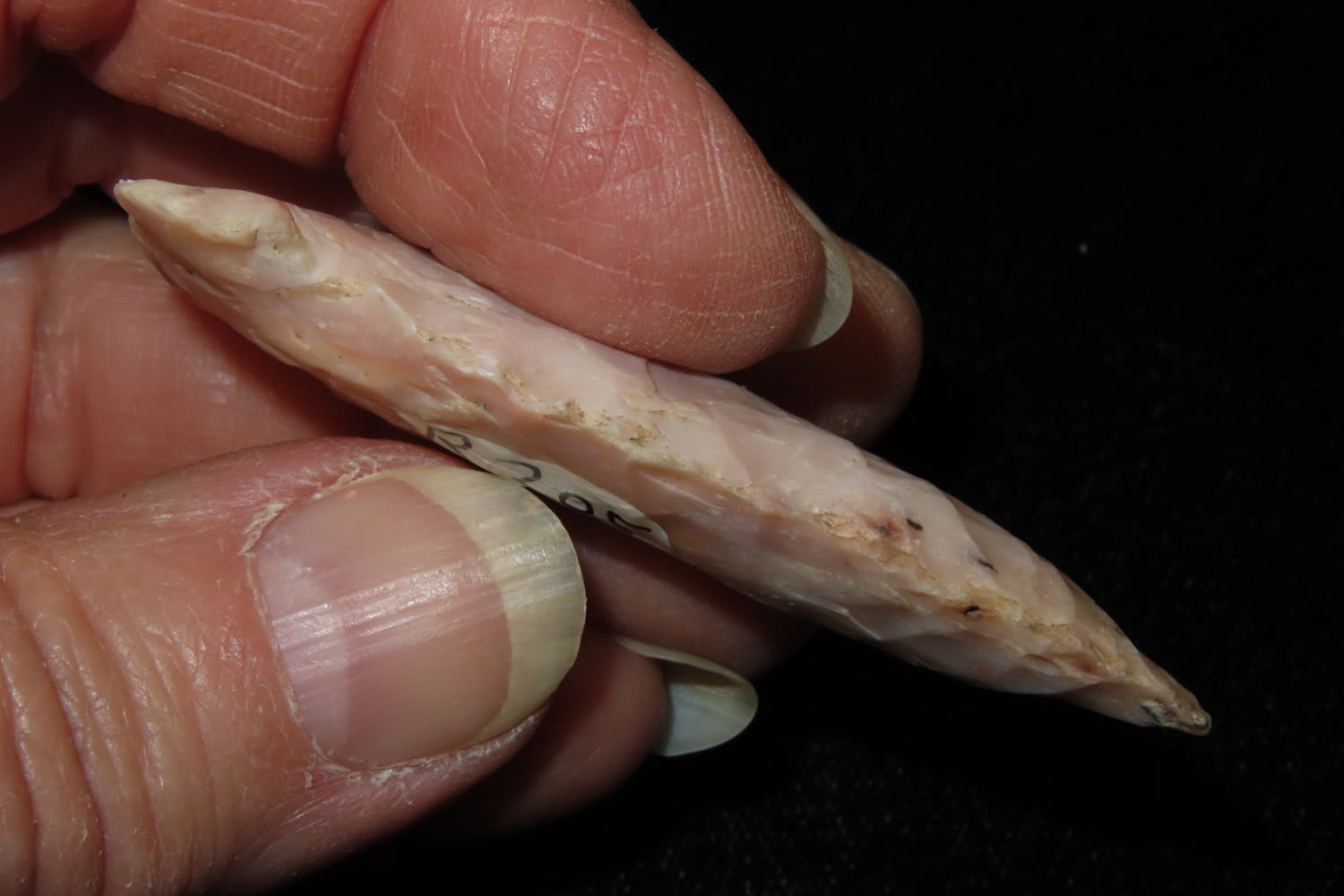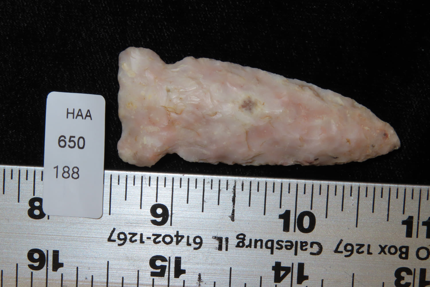 3 1/4″ Side Notch personal find, Ex Robert Hruska Collection, Milwaukee, Wisconsin EX. Sam Wasion Collection Authentic Native American Artifact