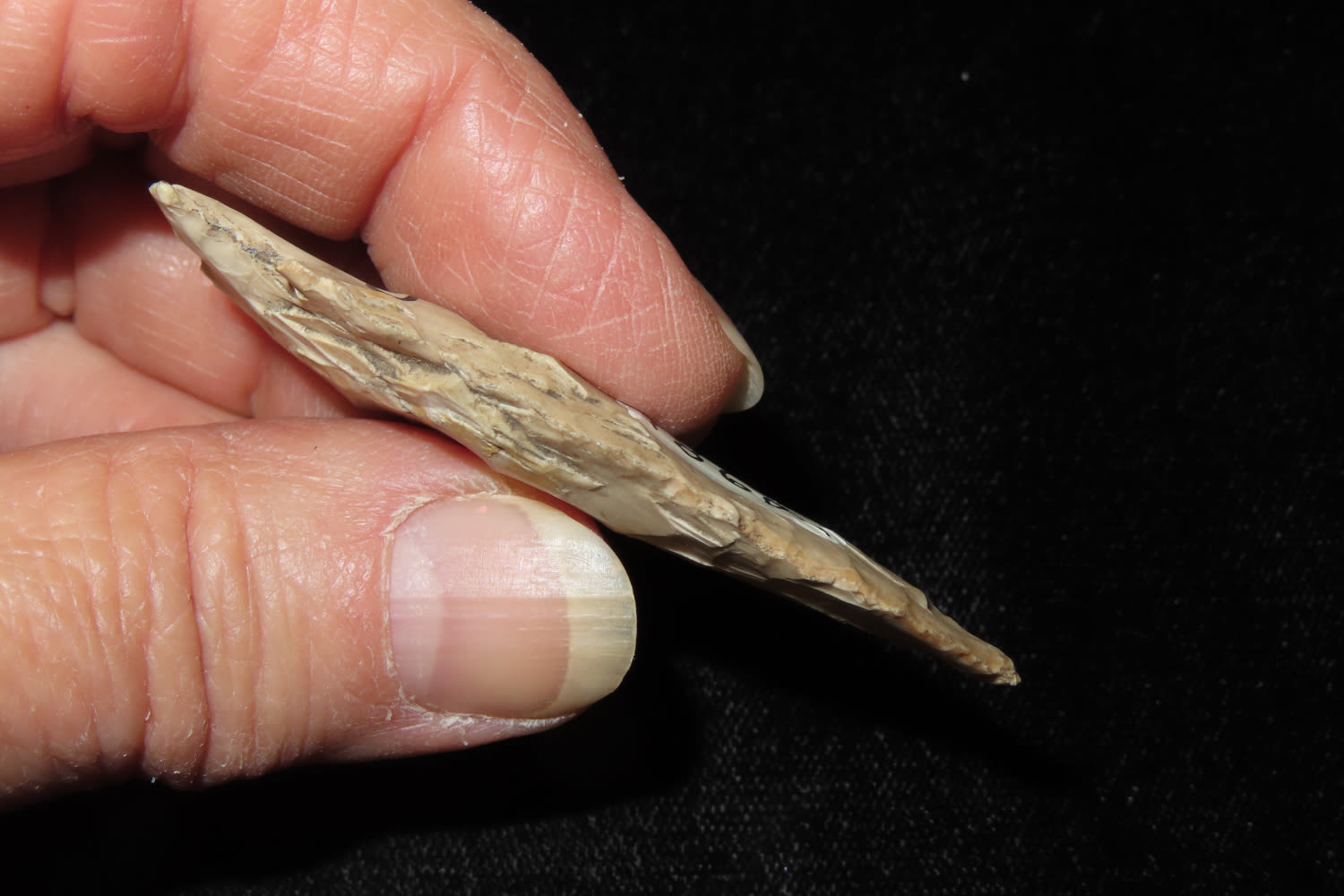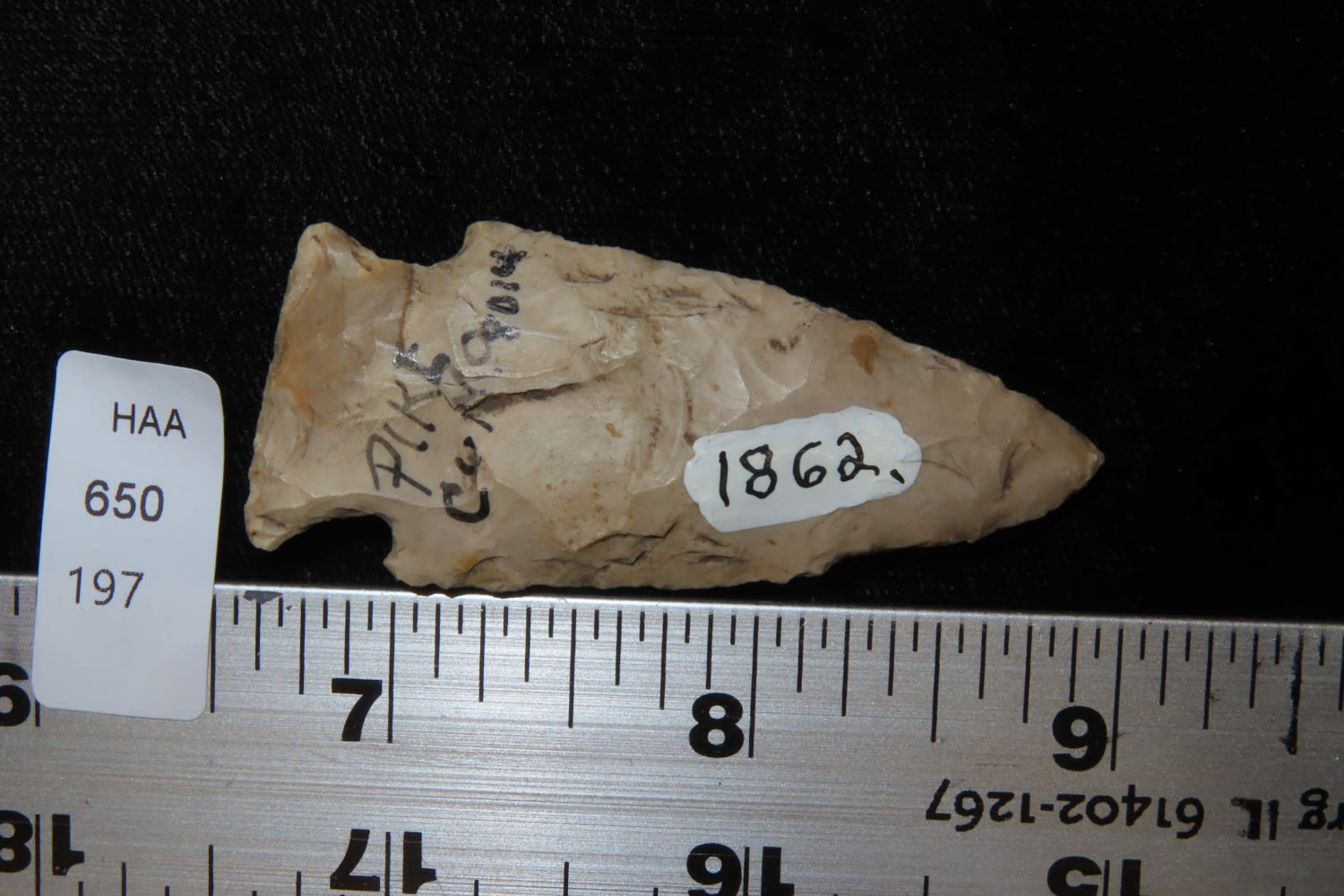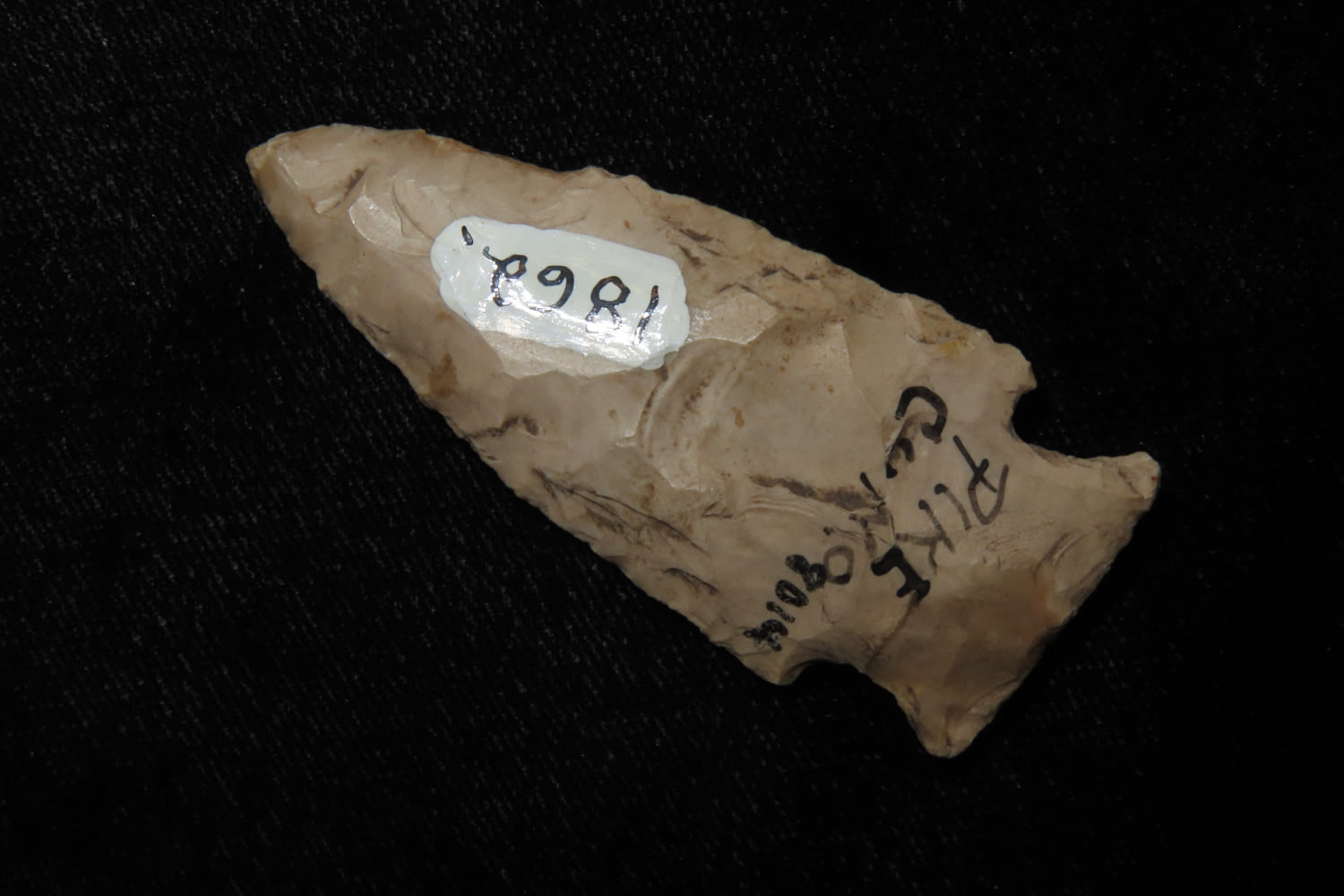 3 1/4″ Corner Notch, found in Pike Co. Missourie, aquired 1964 .30 cents, Ex Robert Hruska Collection, Milwaukee, Wisconsin EX. Sam Wasion Collection Authentic Native American Artifact