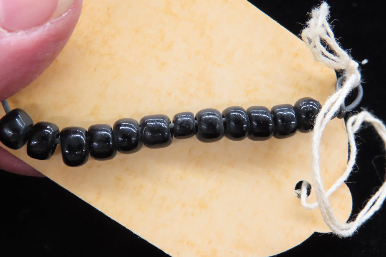 3 1/2" Strand of Black Glass Trade Beads Ex Robert Hruska Collection, Milwaukee, Wisconsin EX. Sam Wasion Collection Authentic Native American Artifact