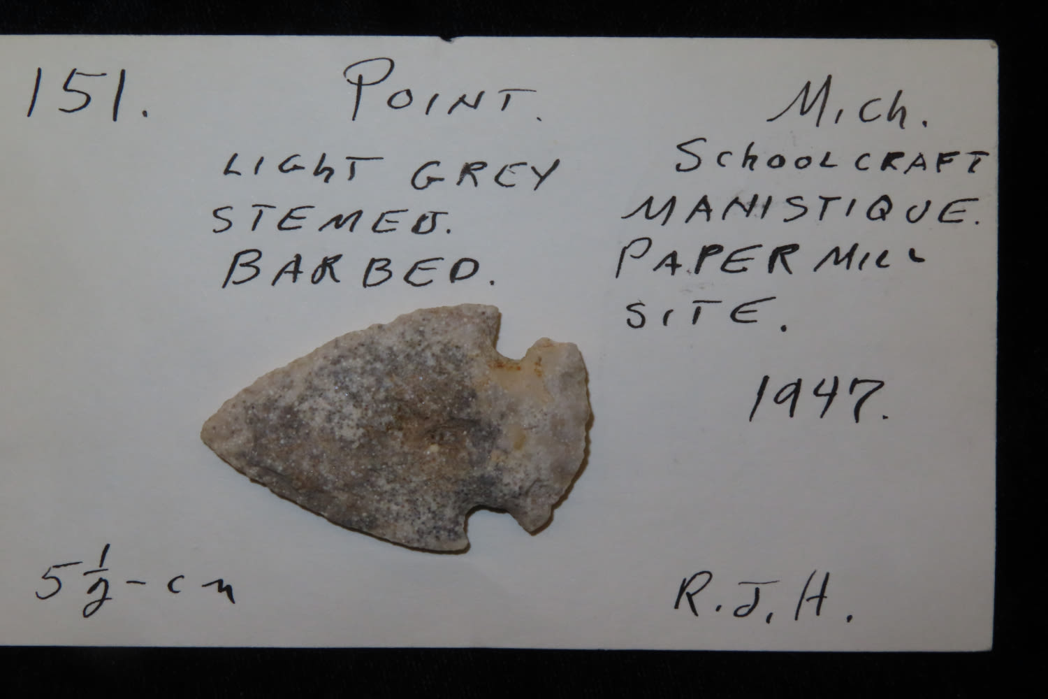 1.3/4" Hopewell, Mich, 1947, Paper Mill Site, Ex Robert Hruska Collection, Milwaukee, Wisconsin EX. Sam Wasion Collection Authentic Native American Artifact