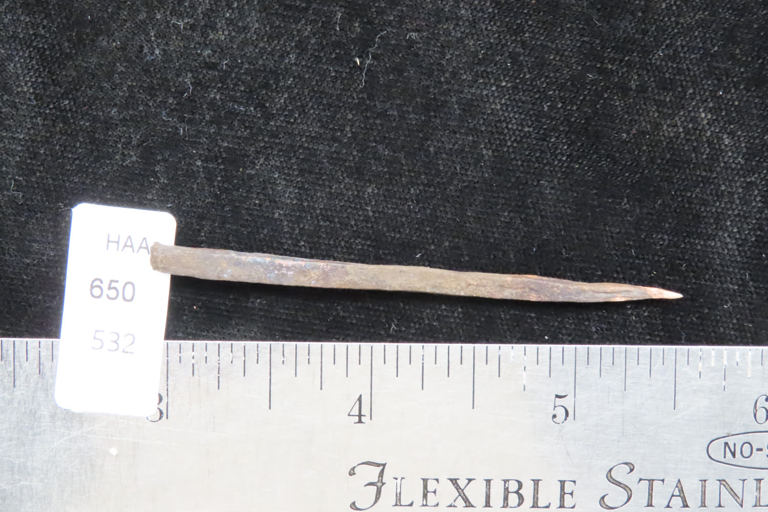 2.1/2″ Copper Awl, Ex Robert Hruska Collection, Milwaukee, Wisconsin EX. Sam Wasion Collection Authentic Native American Artifact