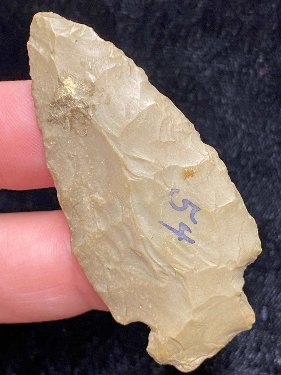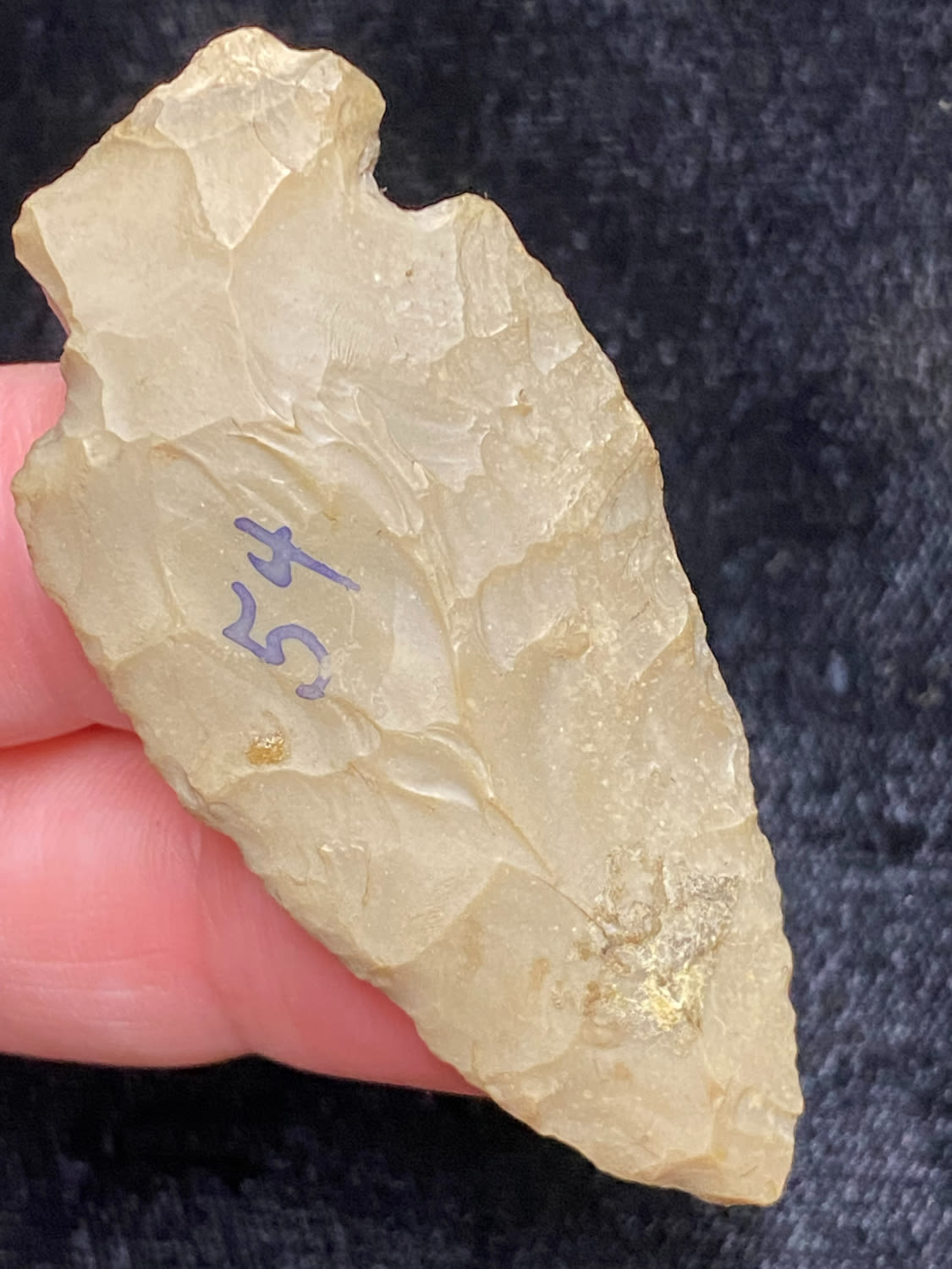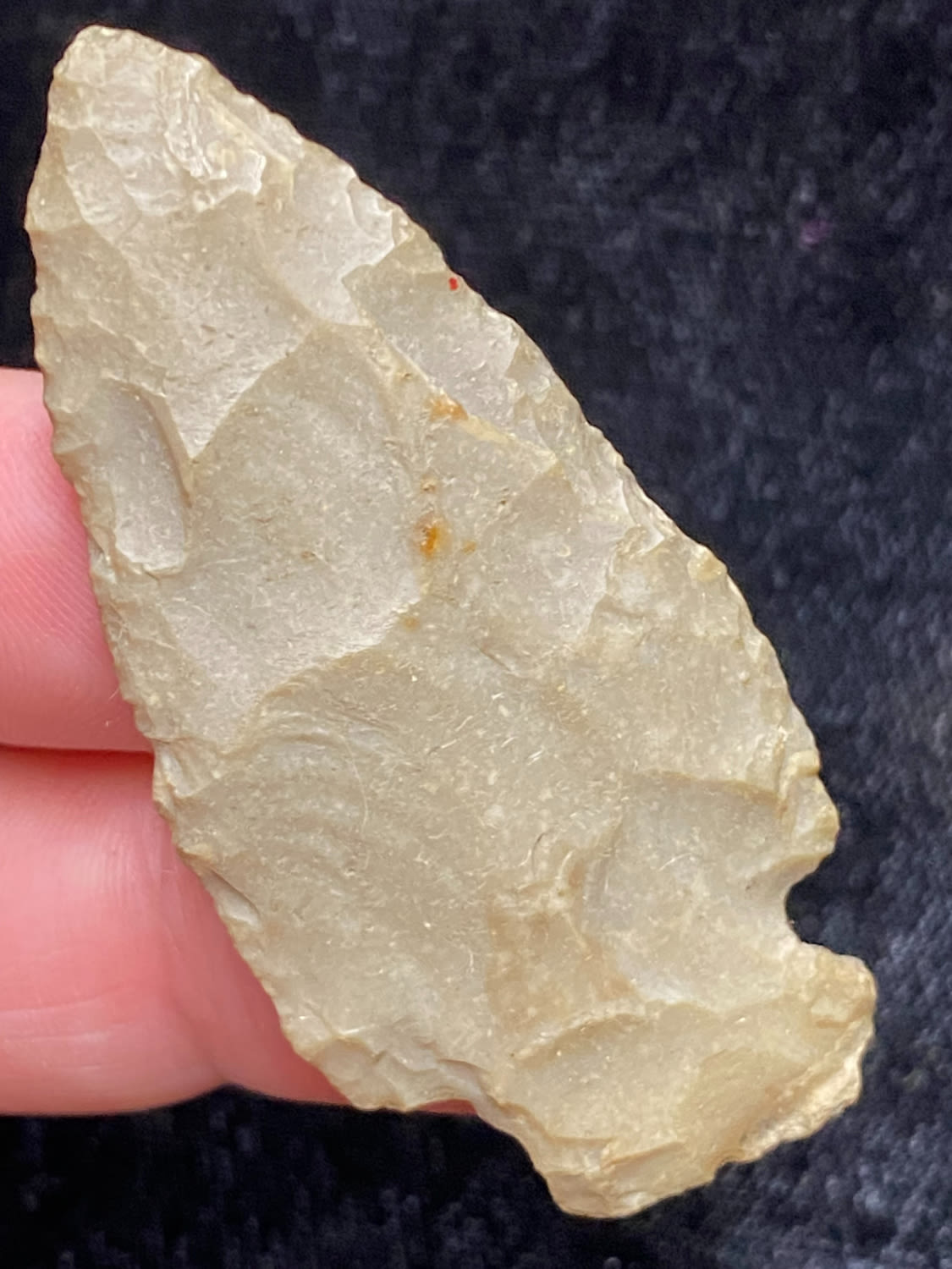 2 1/4″ Corner Notch, found by B. Tappen at Riverside Cemetary Site, Meno Co, Michigan, 1945, Ex. Sam Wasion Collection