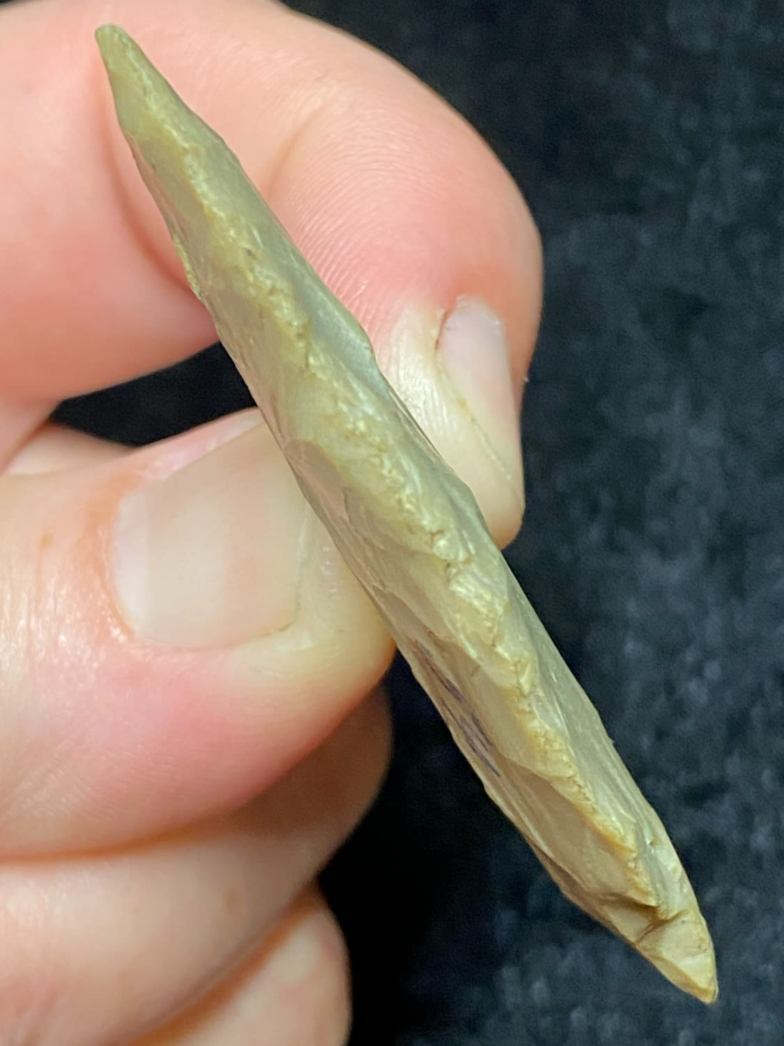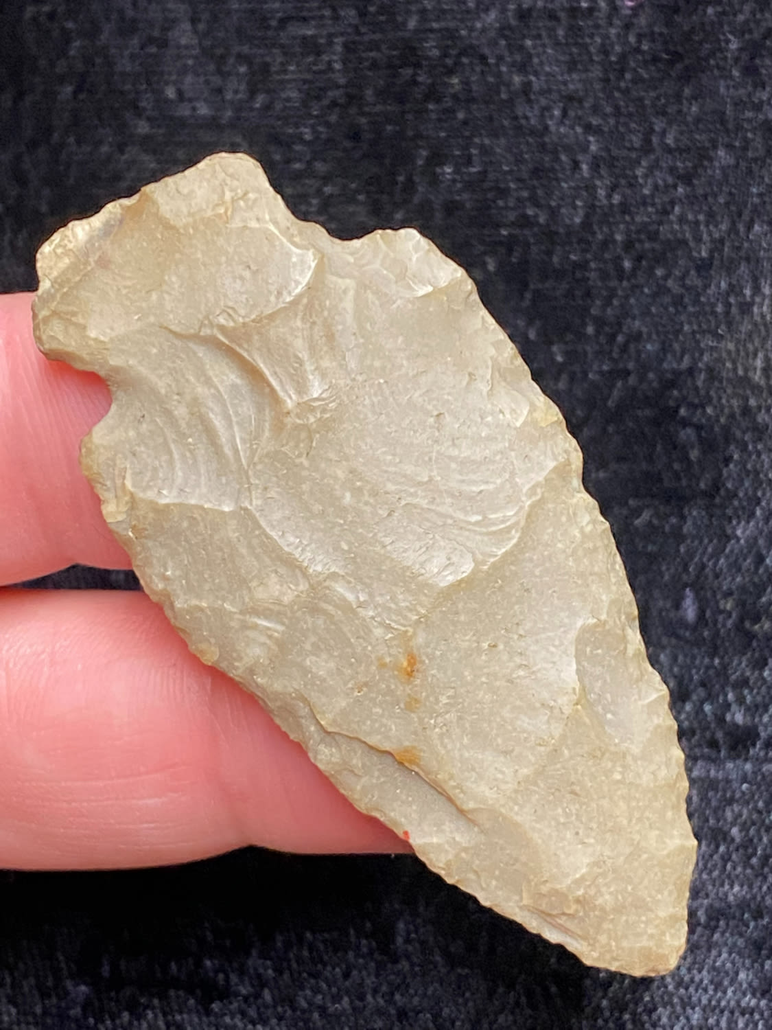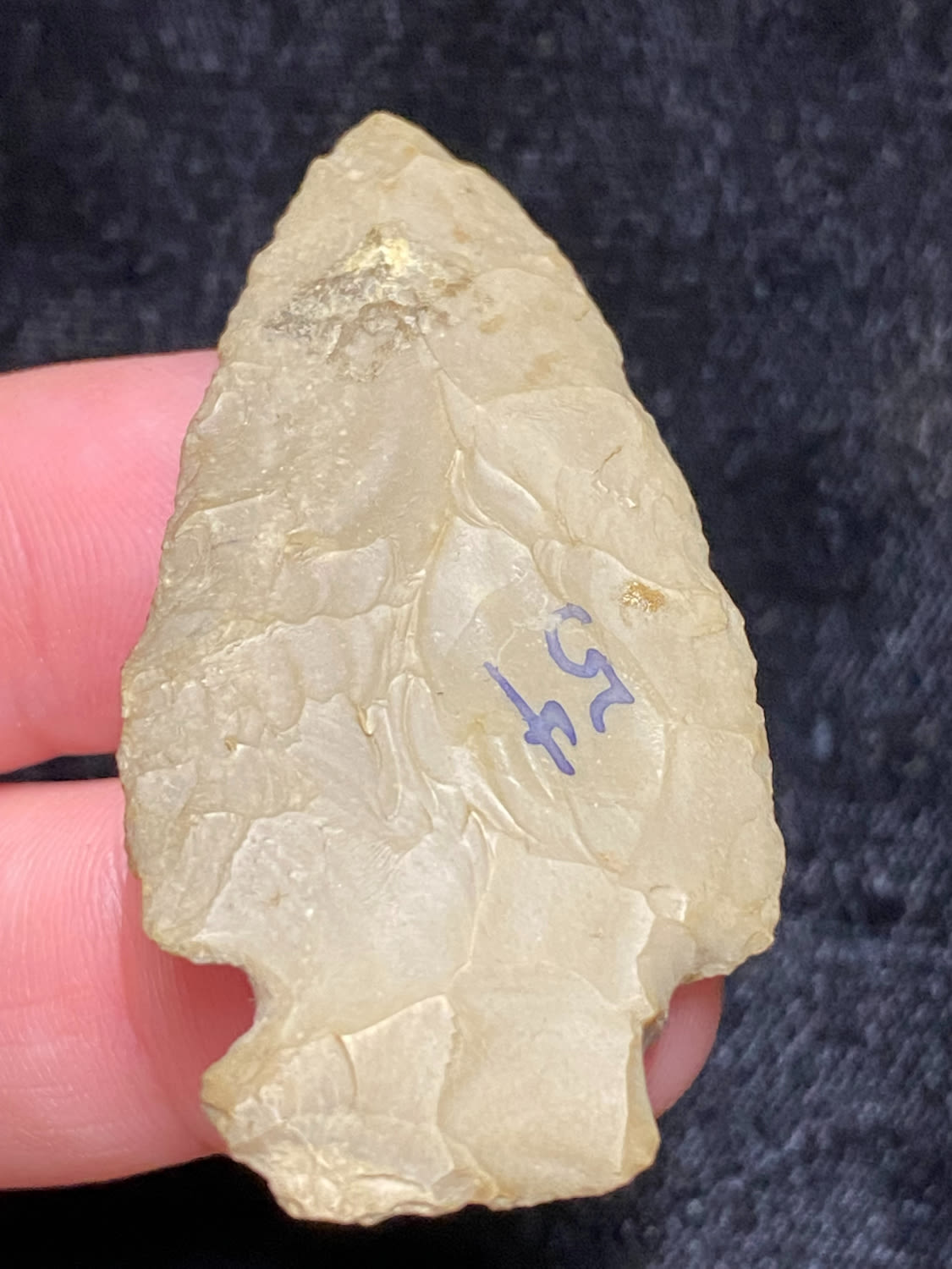2 1/4″ Corner Notch, found by B. Tappen at Riverside Cemetary Site, Meno Co, Michigan, 1945, Ex. Sam Wasion Collection