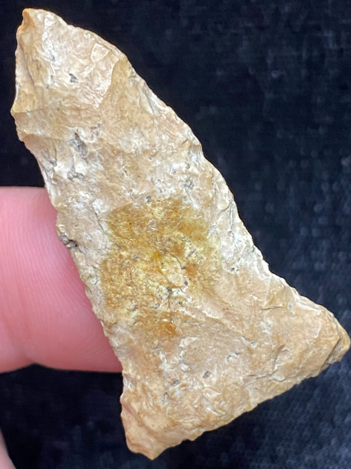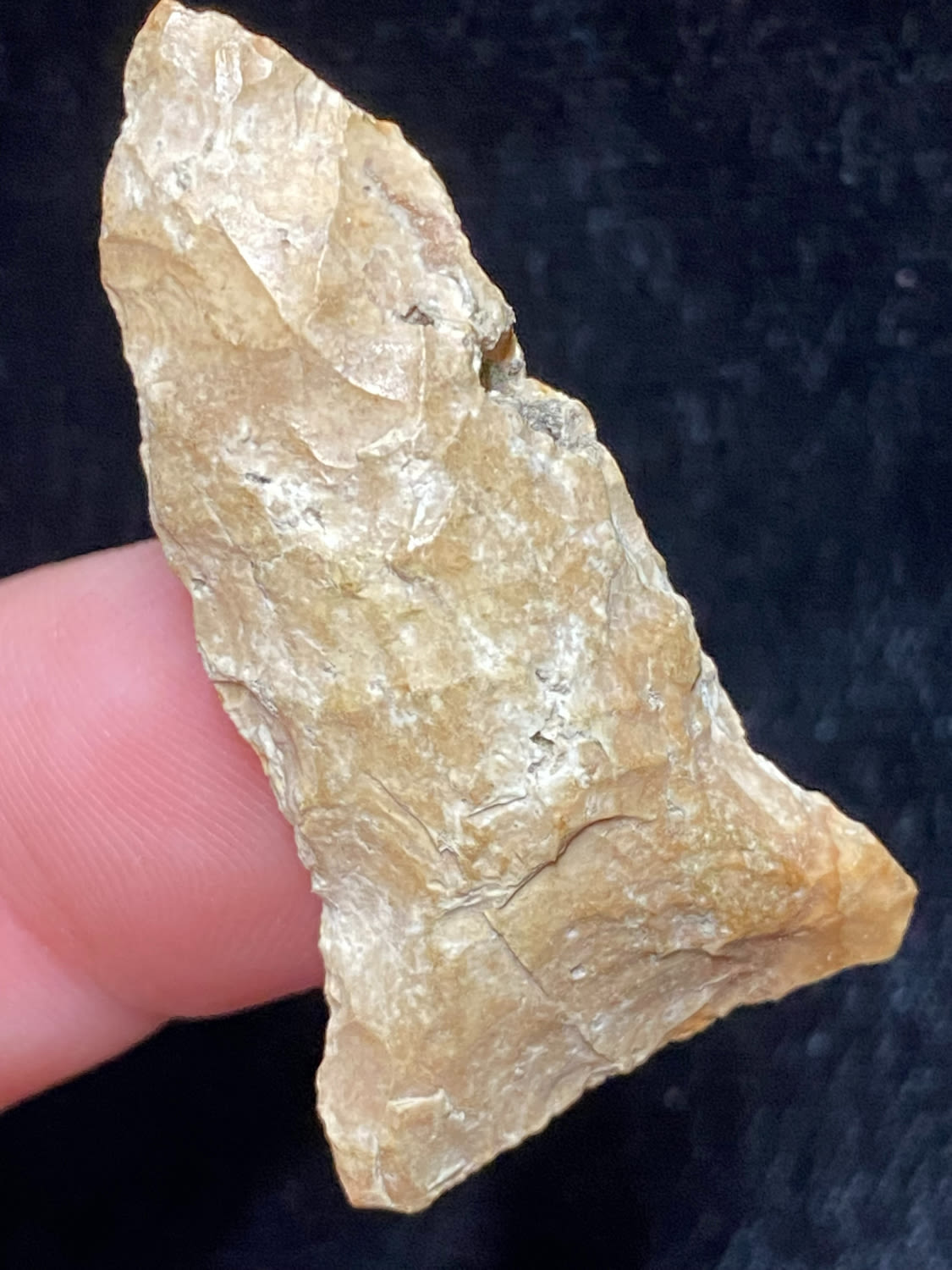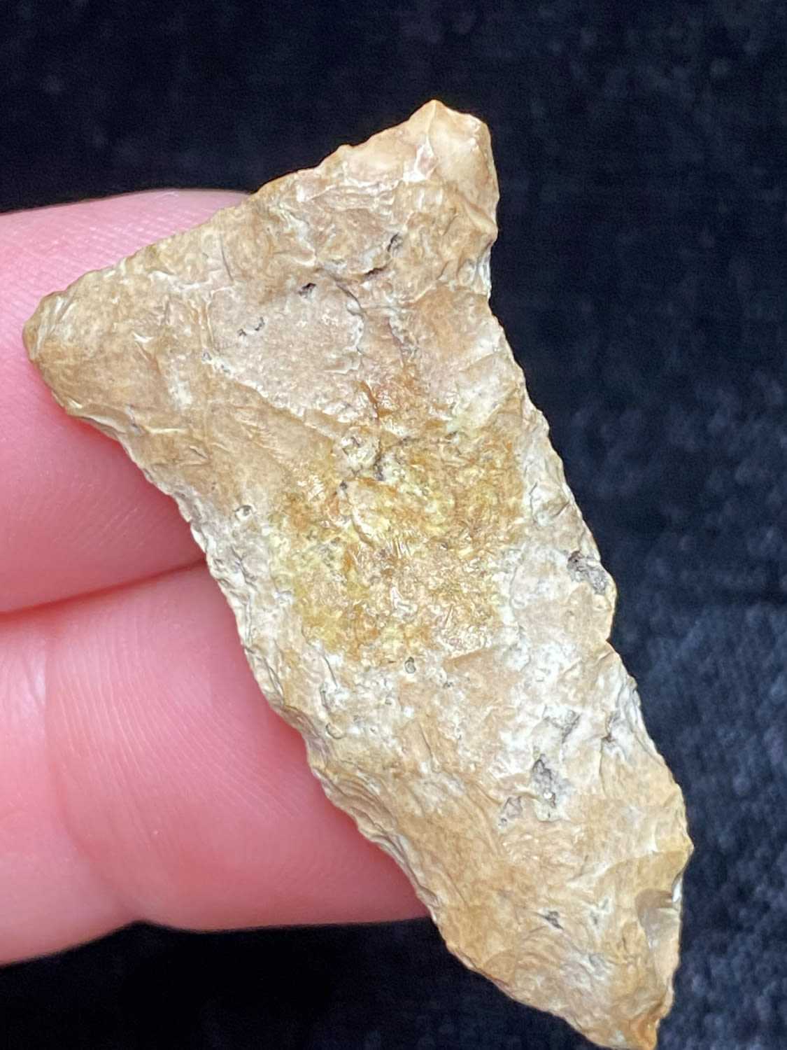 1 5/8″ Rice Shallow Side Notch, Excellent Speciman, Interesting inclusion, possibly fossil or quartz, Ex. Sam Wasion Collection