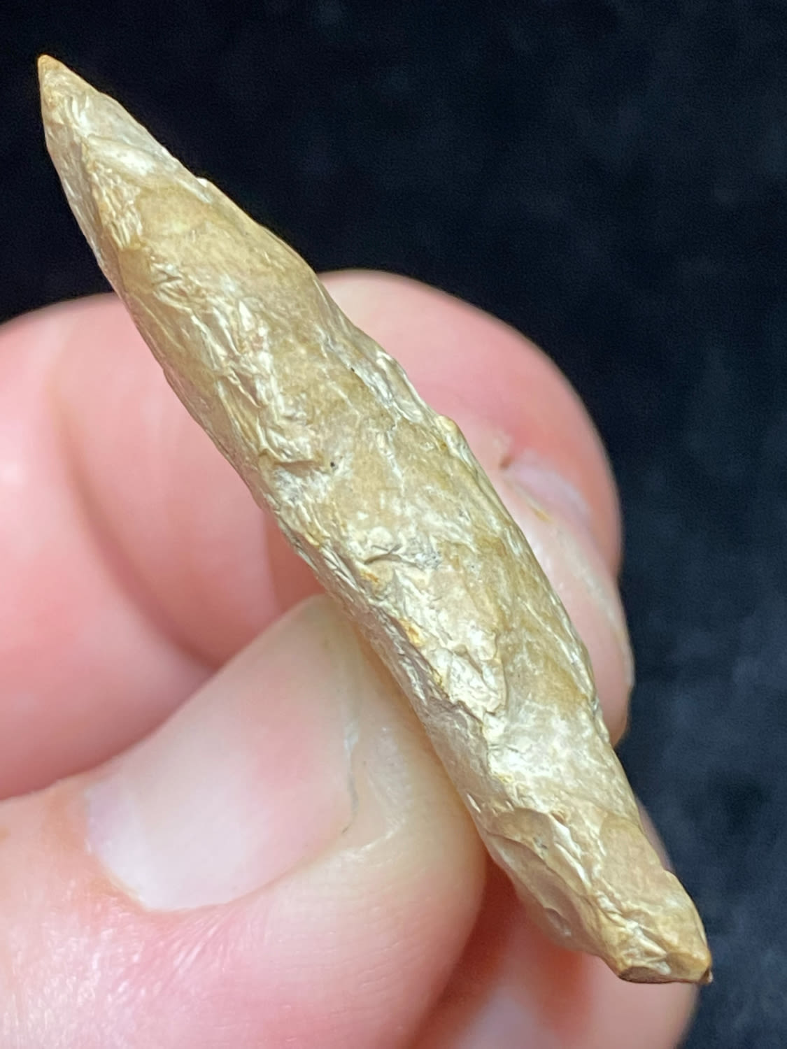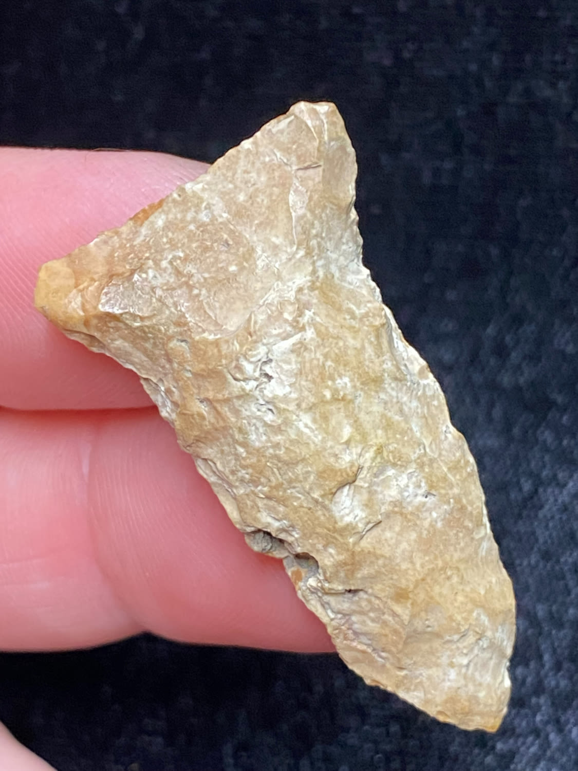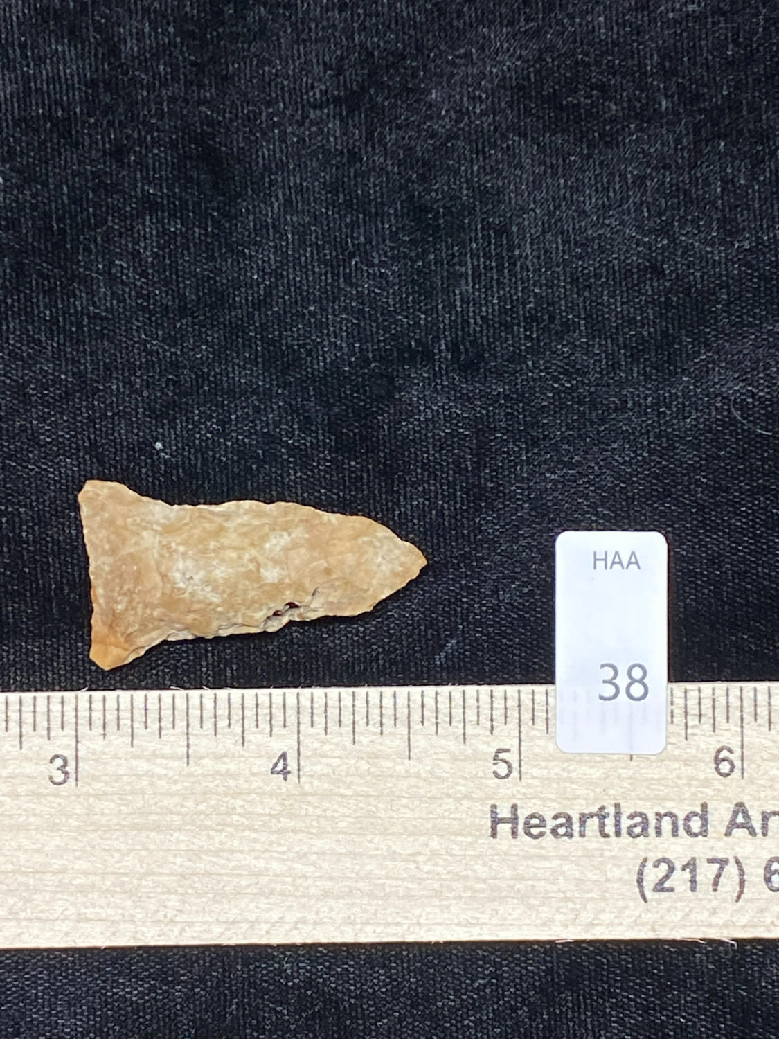 1 5/8″ Rice Shallow Side Notch, Excellent Speciman, Interesting inclusion, possibly fossil or quartz, Ex. Sam Wasion Collection