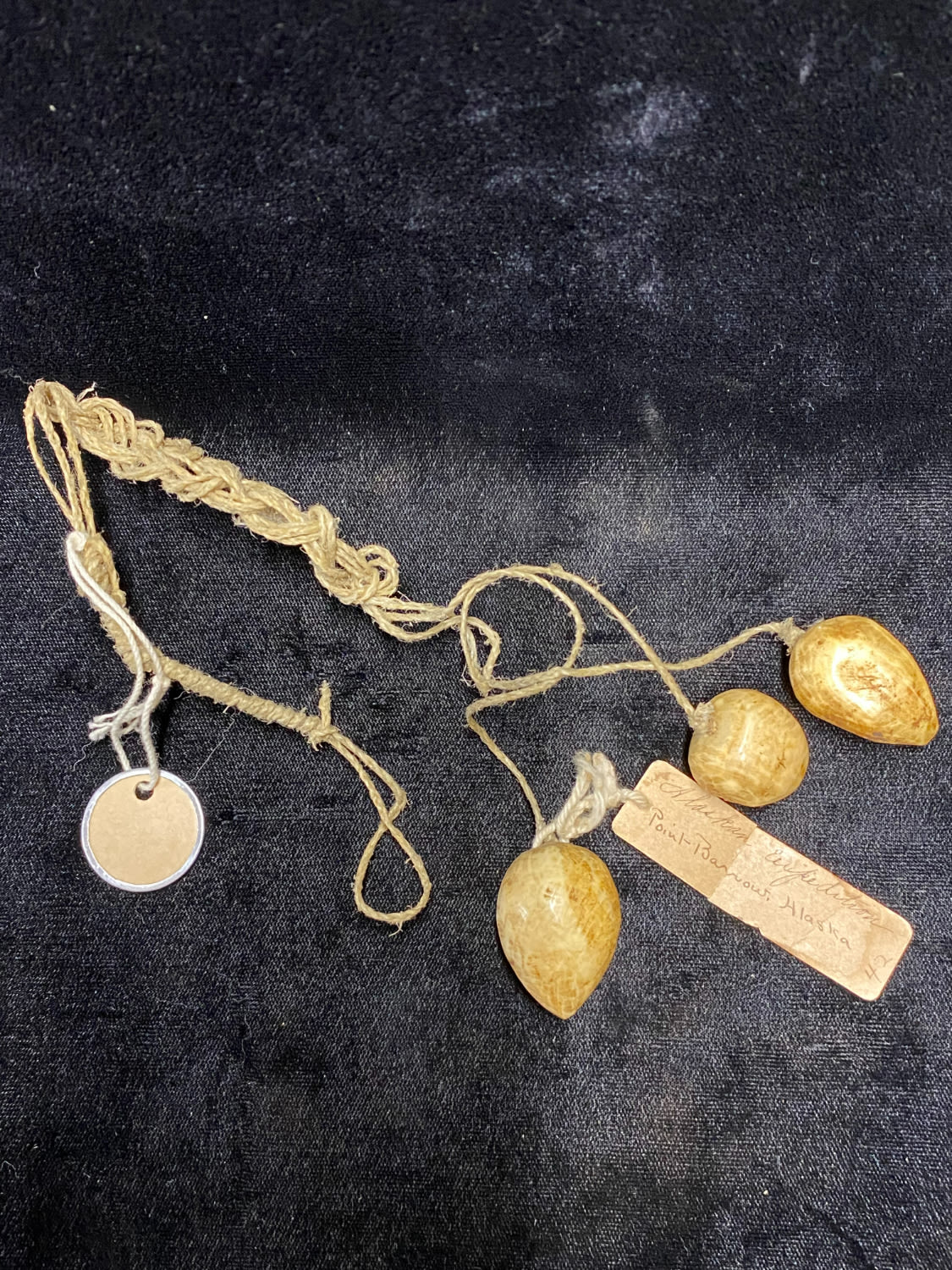 In the past hunters used bolas to bring down flying ducks and geese. The weights fanned out as they flew through the air, and with the slightest touch wrapped themselves around a bird. Bola strings were made of sinew, and the weights were usually walrus ivory or bone.