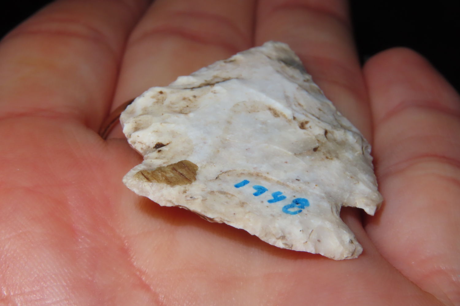 1 3/8″ Nice Athentic Arrowhead. EX: Steve Manos Collection from Illinois / Missouri