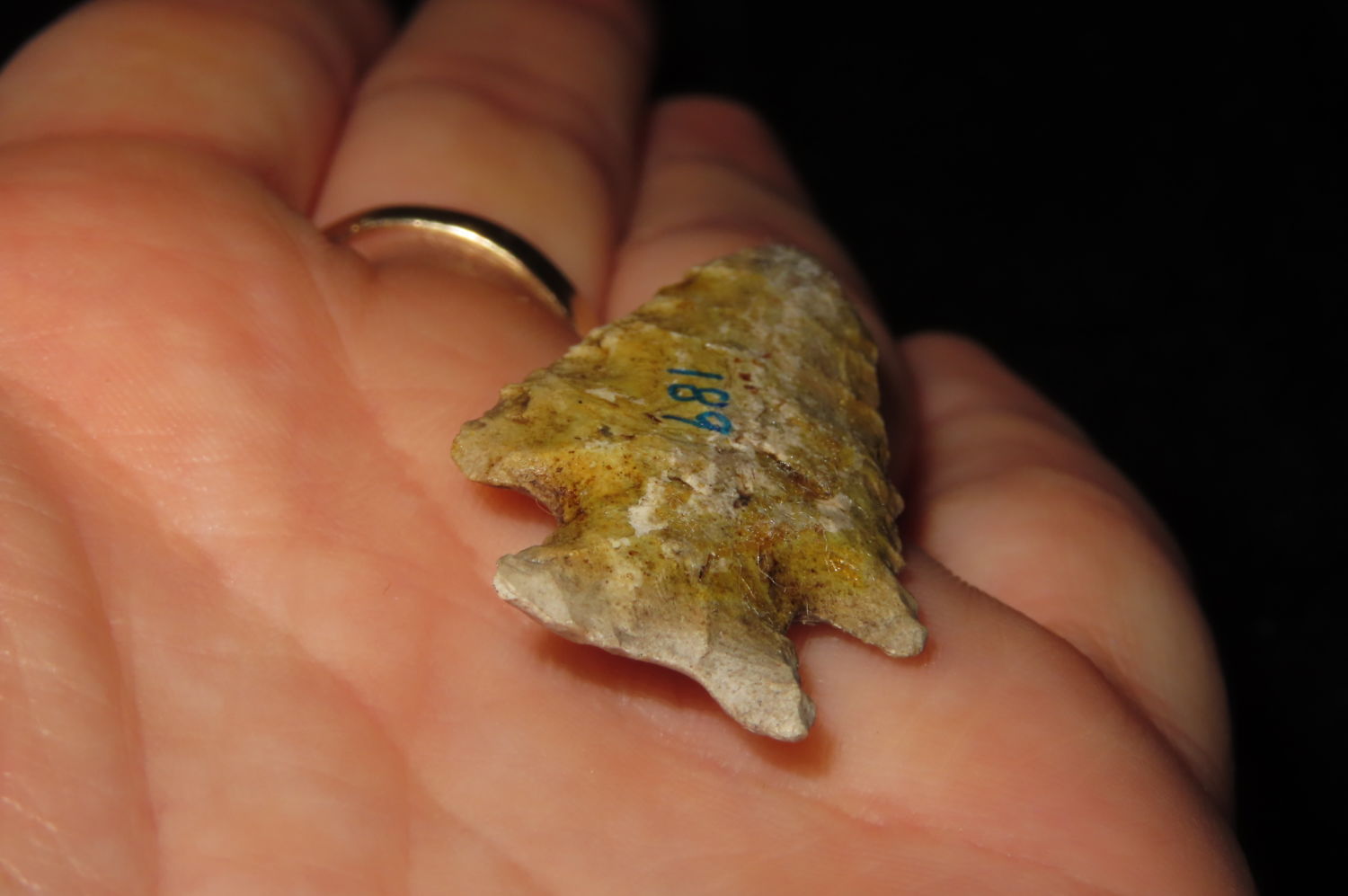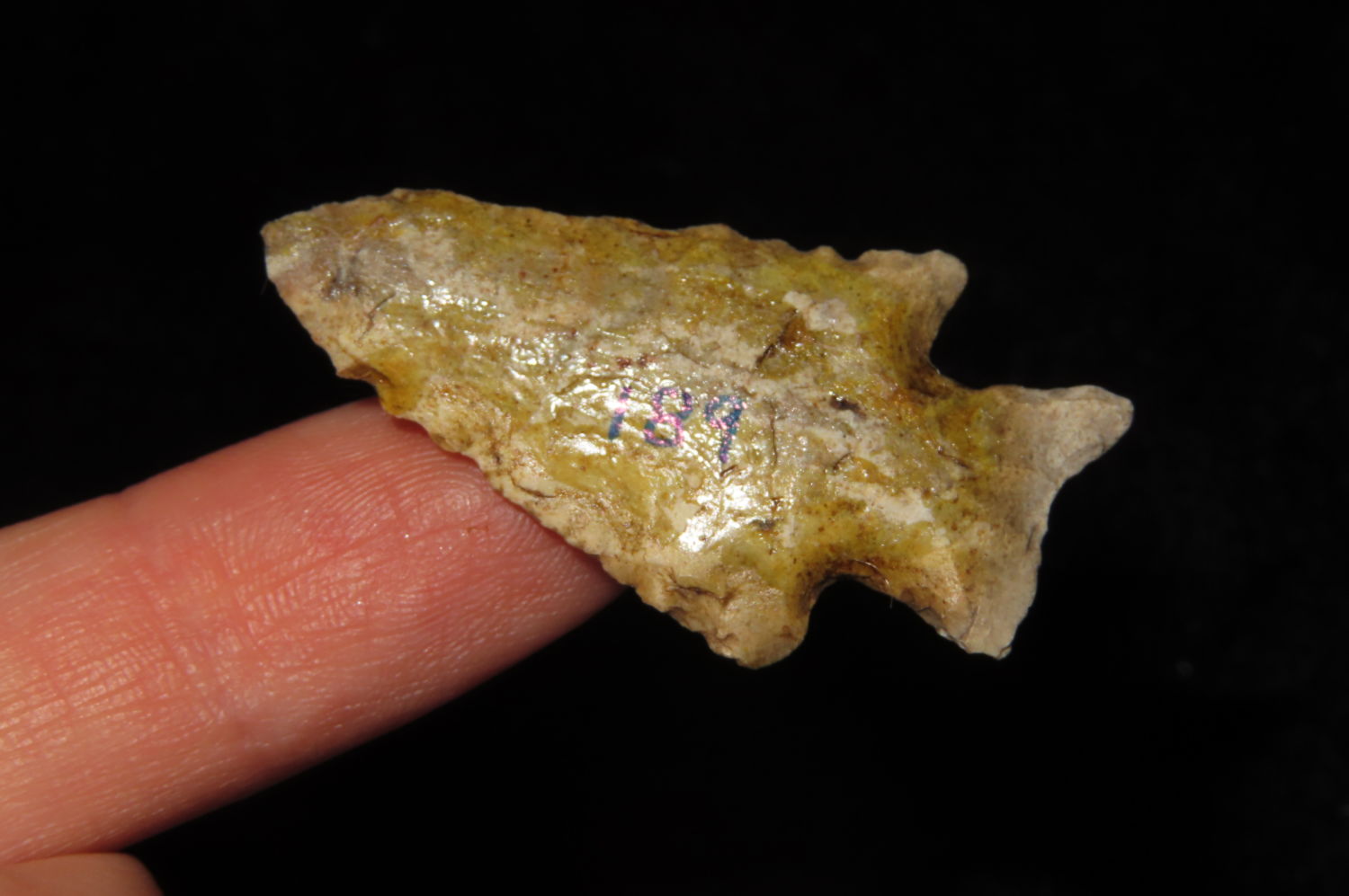 1 1/2″ Nice Athentic Arrowhead. EX: Steve Manos Collection from Illinois / Missouri