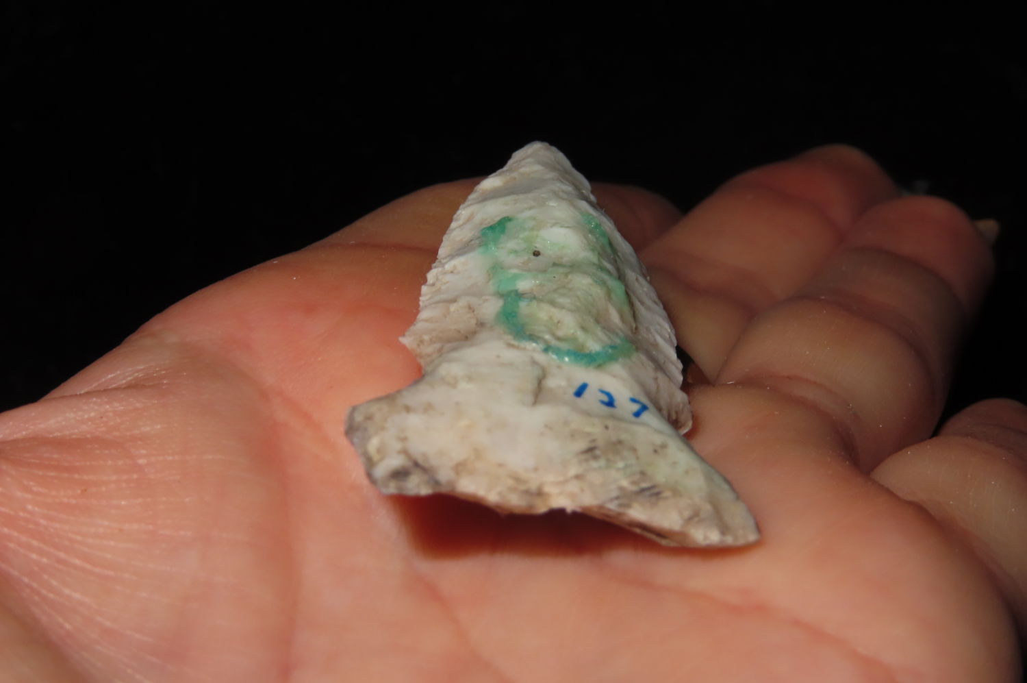 2 1/2″ Nice Athentic Arrowhead. EX: Steve Manos Collection from Illinois / Missouri