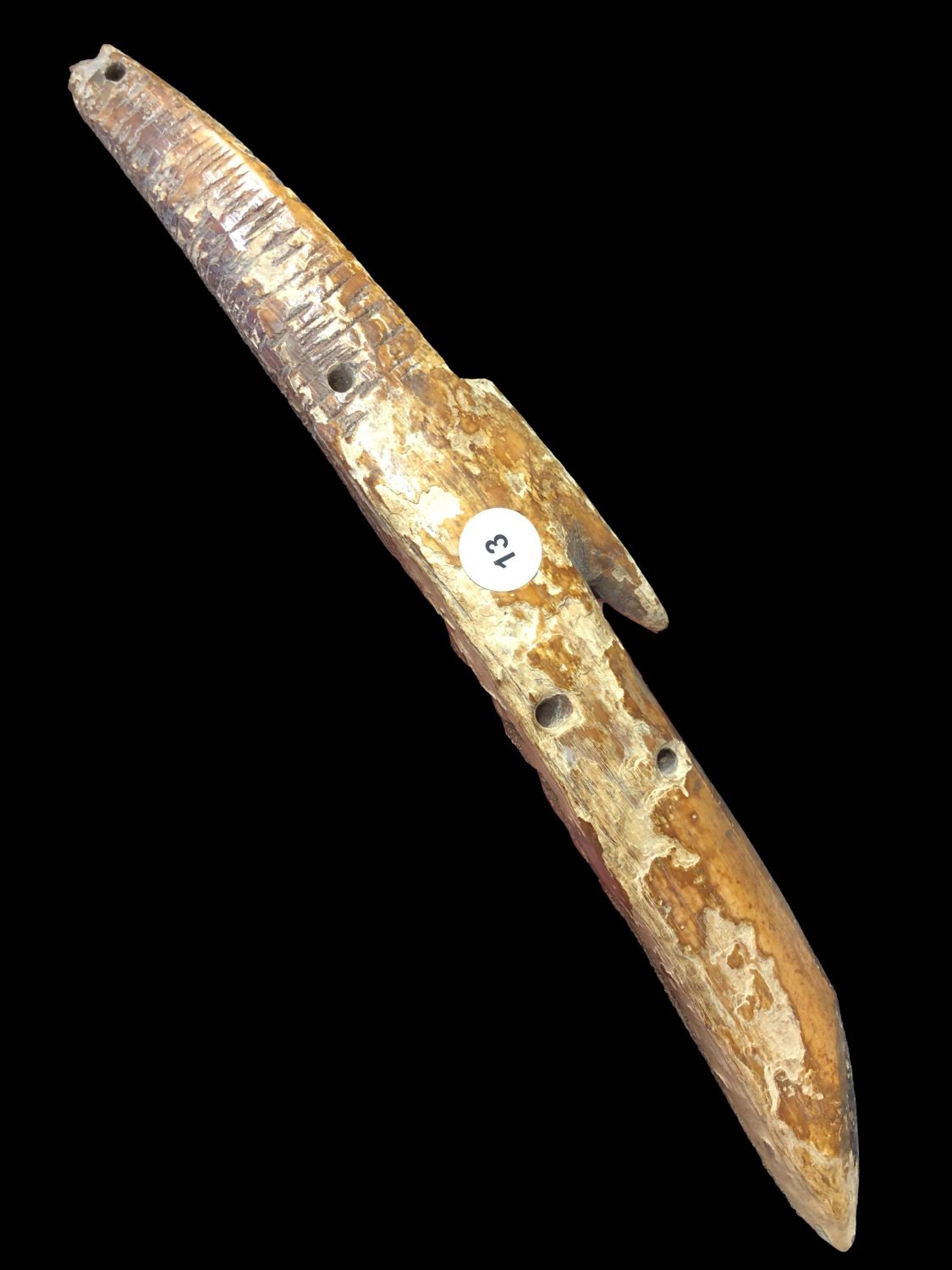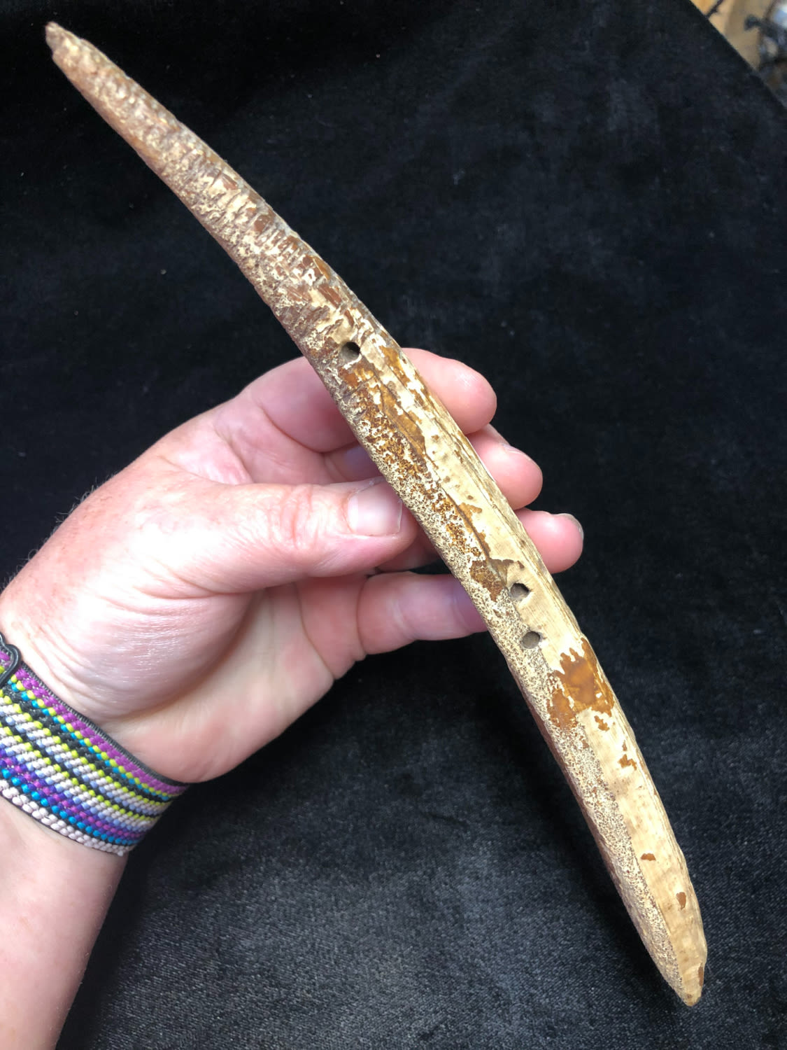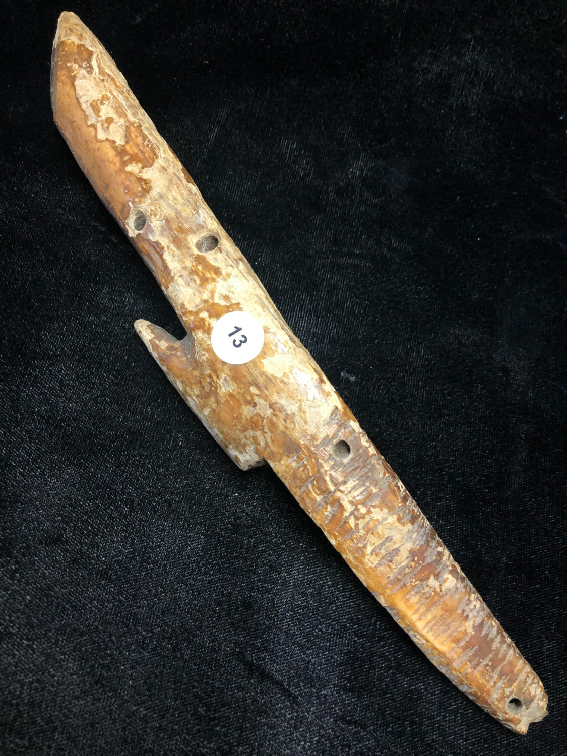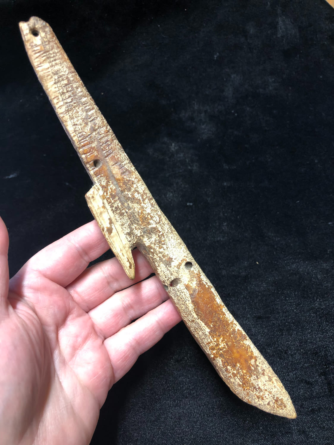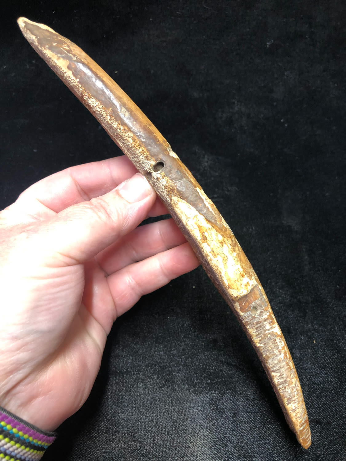 9 1/2″ Rare- Tallied Alaskan Inuit Dog Sled Bracket made of Walrus Bone- St Lawrence Island Alaska