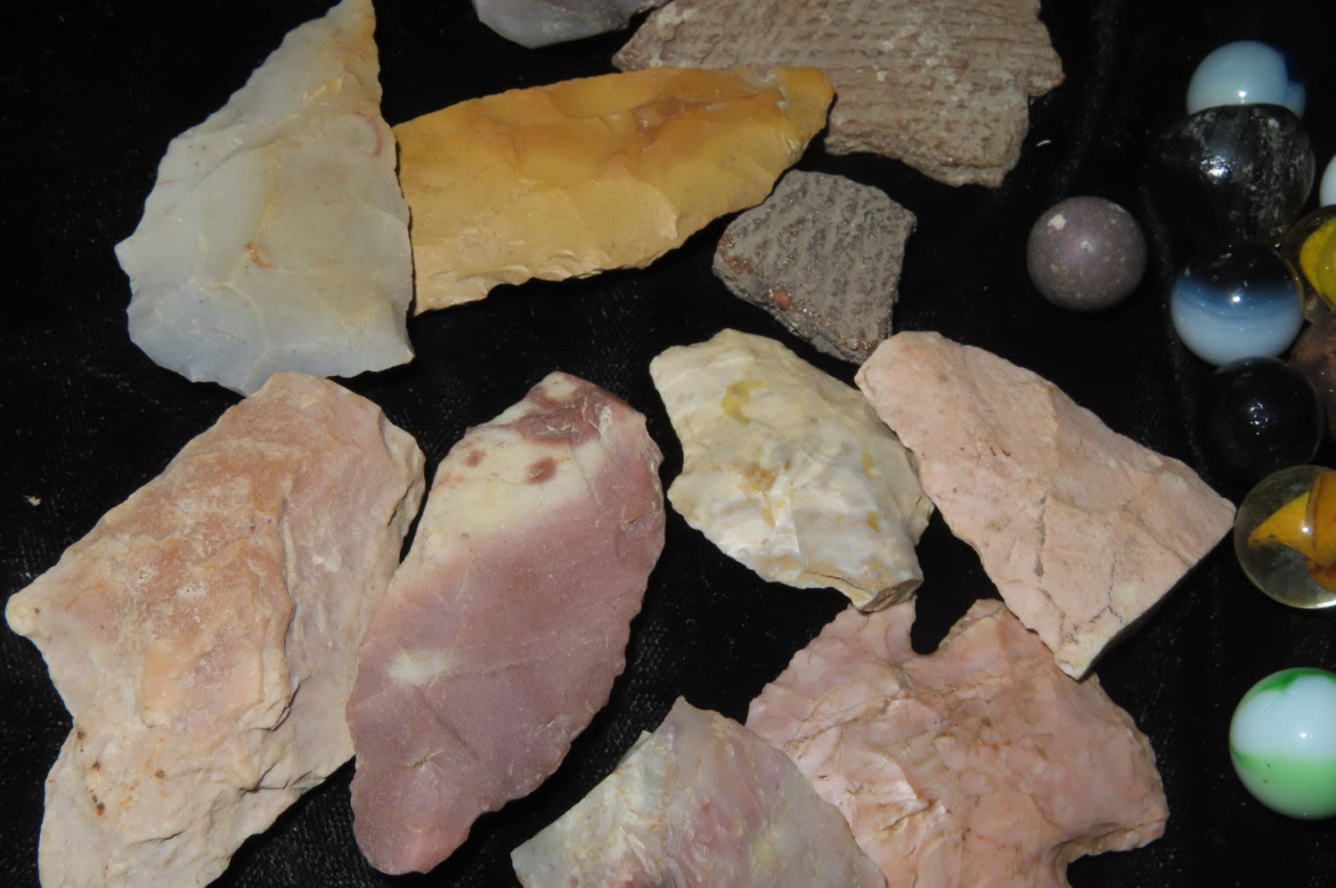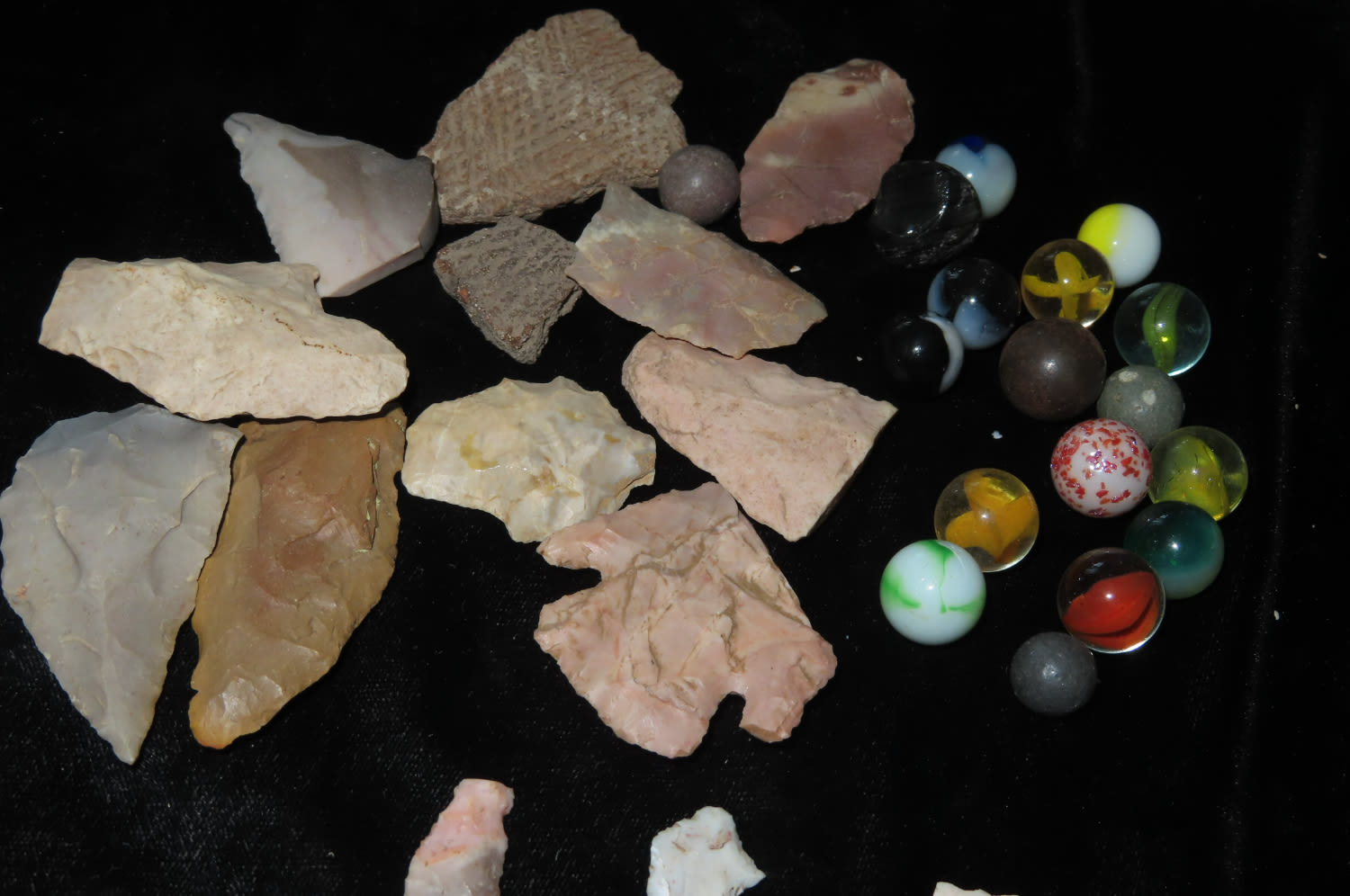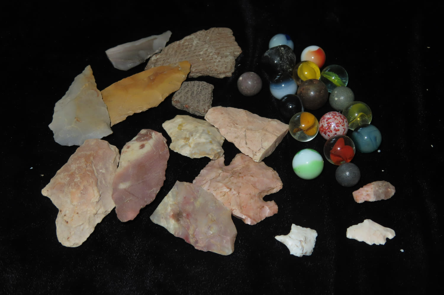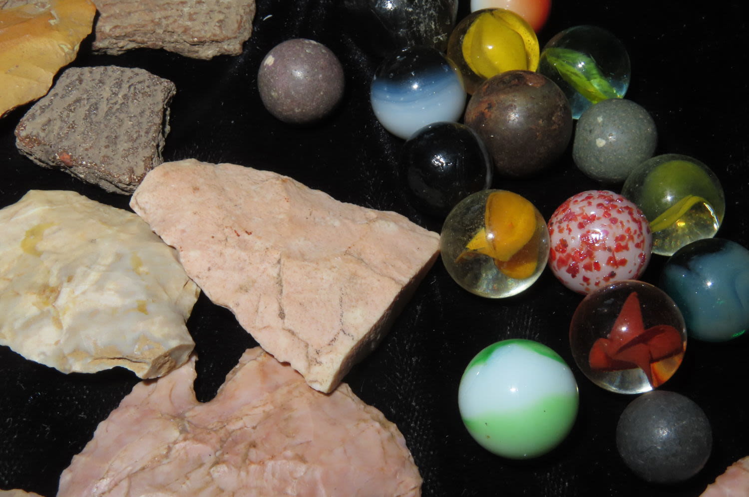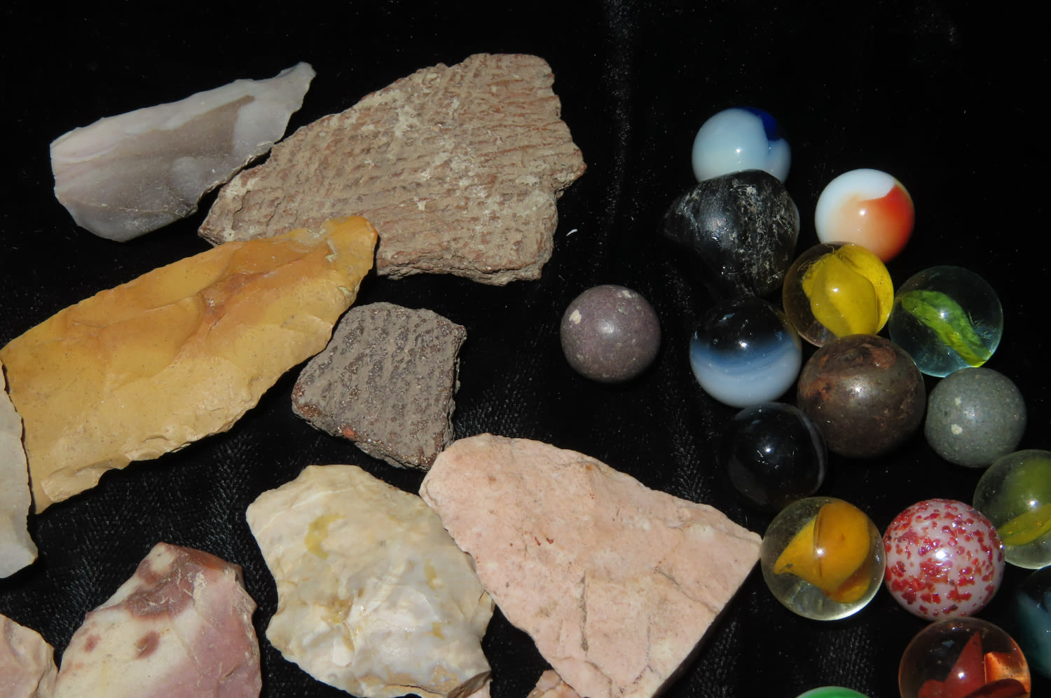 Mixed lot of points and Marbles and pottery